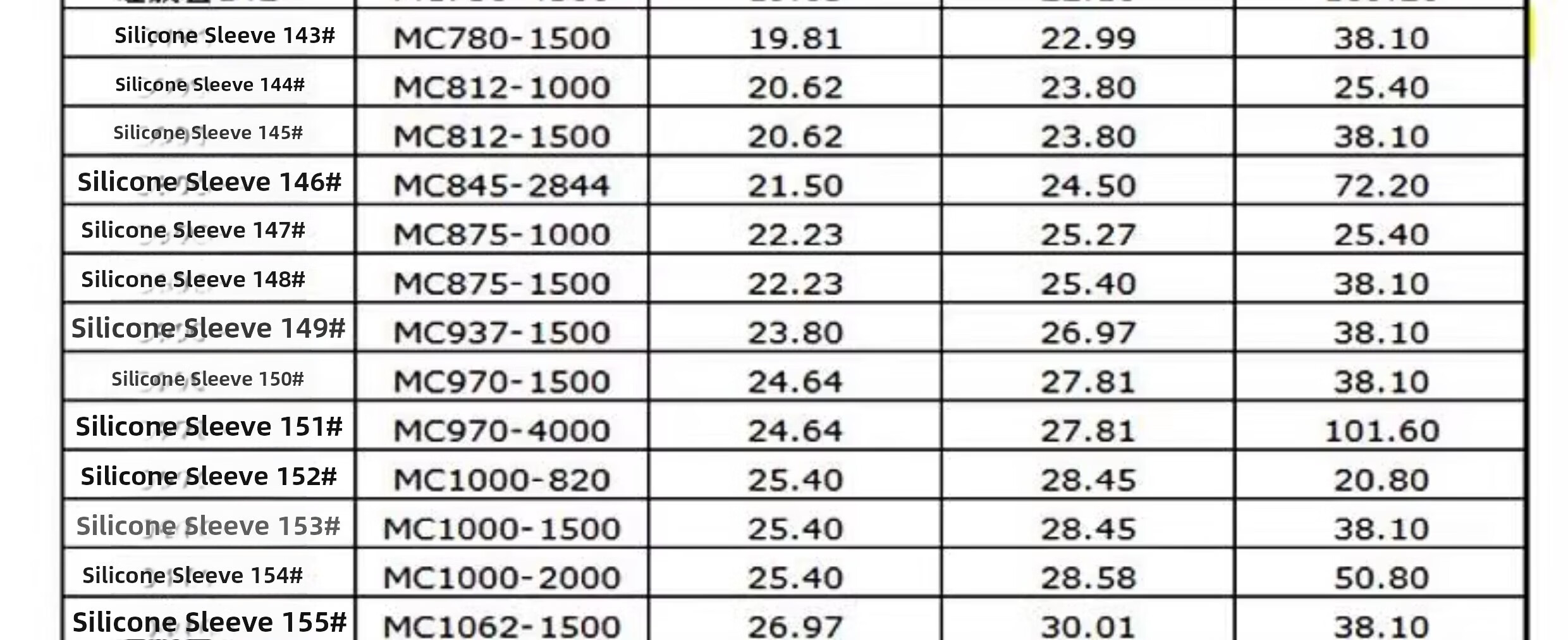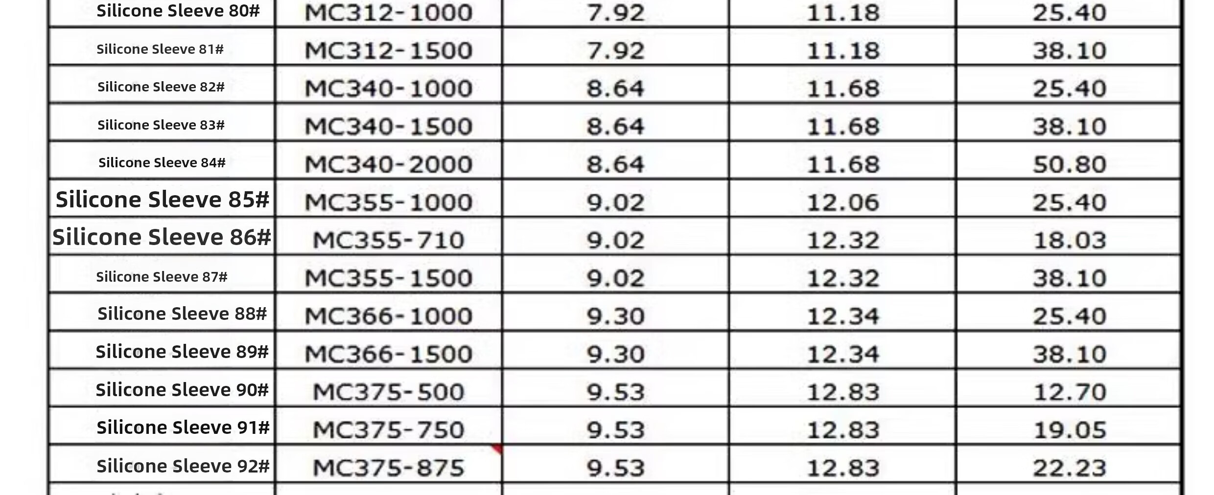 76.2 81.3 86.4 91.5 96.5 101.6 106.7 112 117 122 127 132 137 142