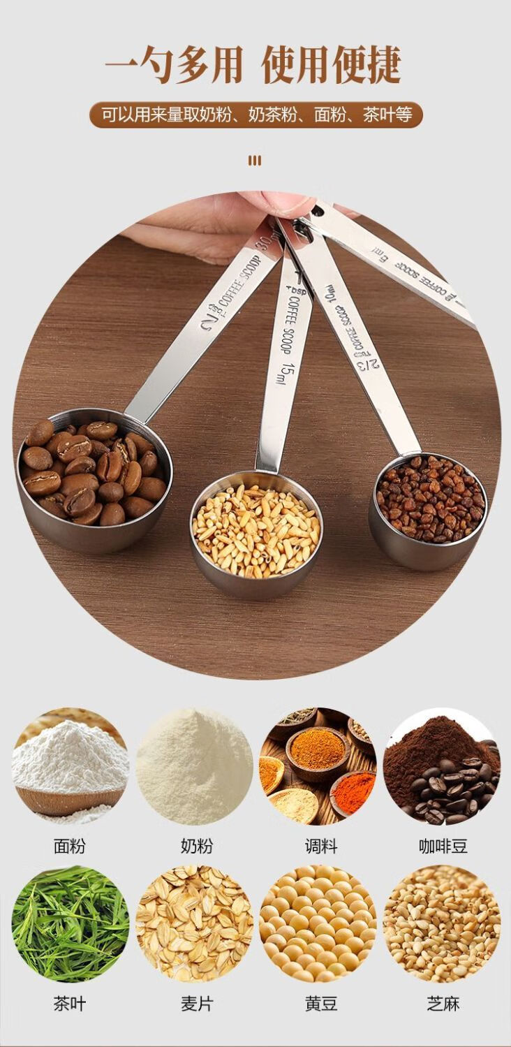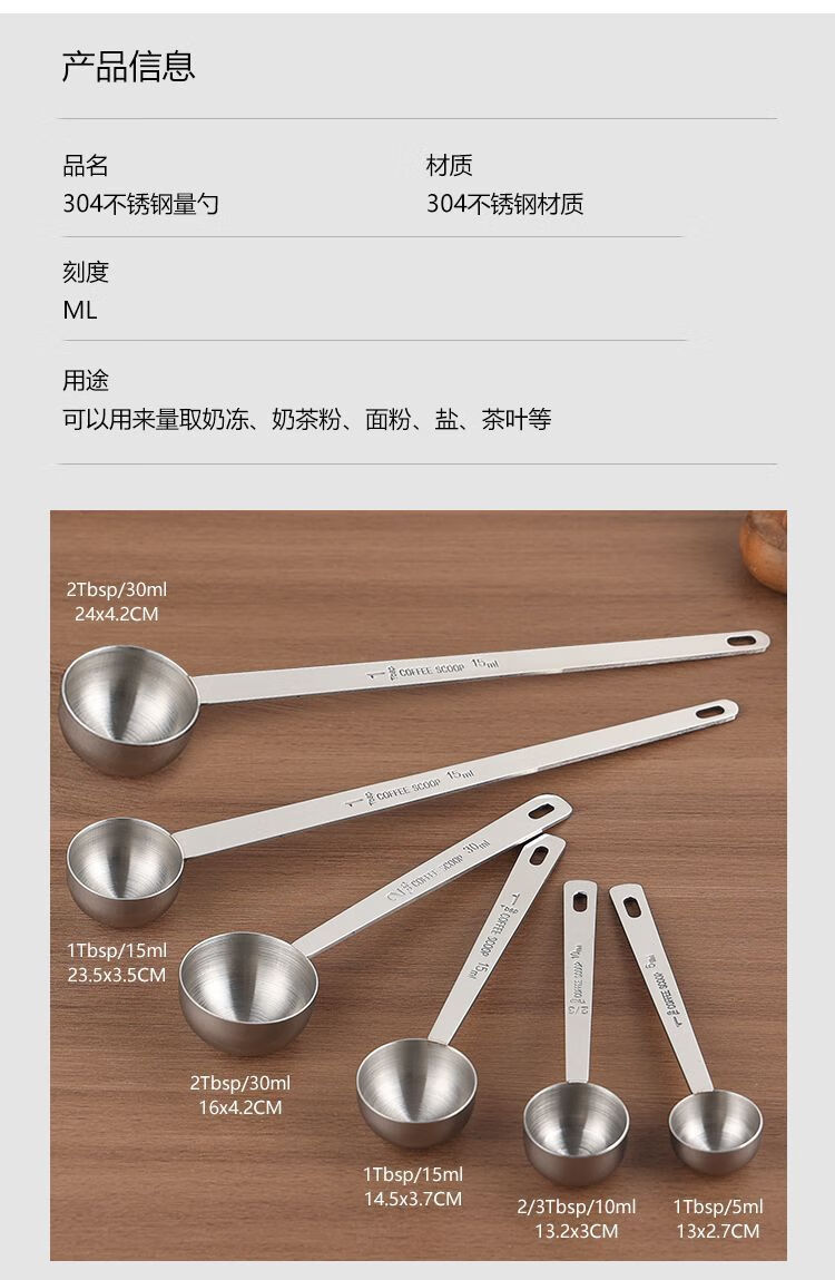 Vinoa 304 stainless steel measuring spoon seasoning spoon precise quantitative spoon commercial milk powder spoon coffee powder spoon freeze-dried salt 5g gram spoon thickened 304 measuring spoon steel color-10g/ml