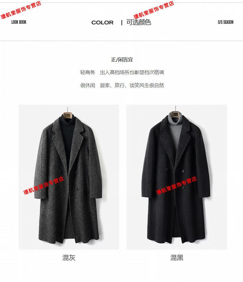Playboy Autumn and Winter double-sided wool coat men's medium-length youth slim non-wool woolen double-breasted windbreaker over-the-knee coat, mixed gray L 130-155Jin Jin equals 0.5kg. Card code is shot to small