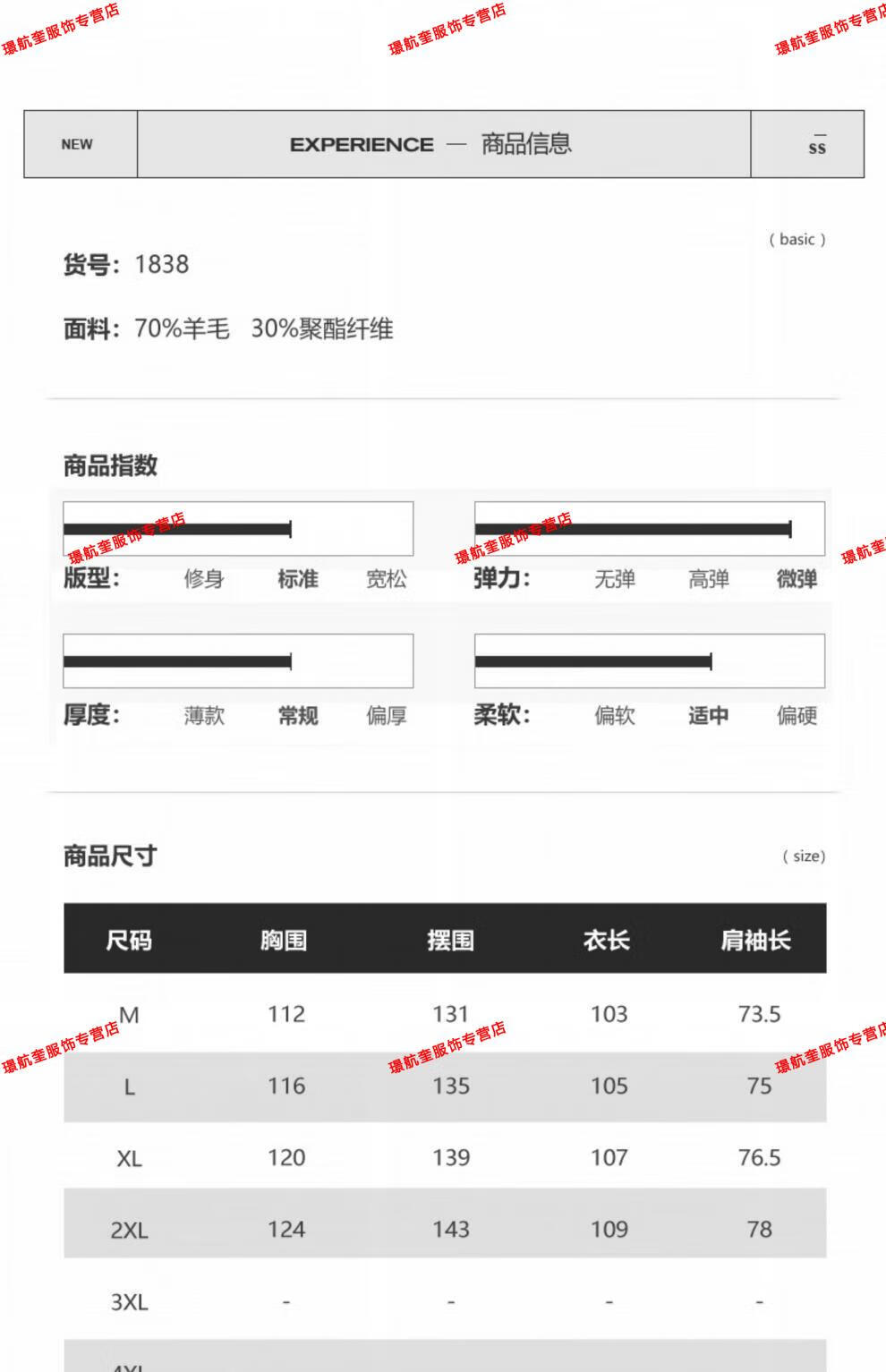 China (cm) 165 / 88-90 170 / 96-98 175 / 108-110 180 / 118-122 185 / 126-130