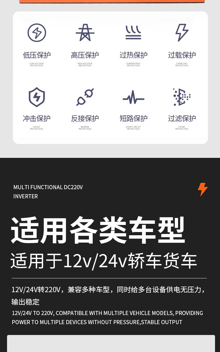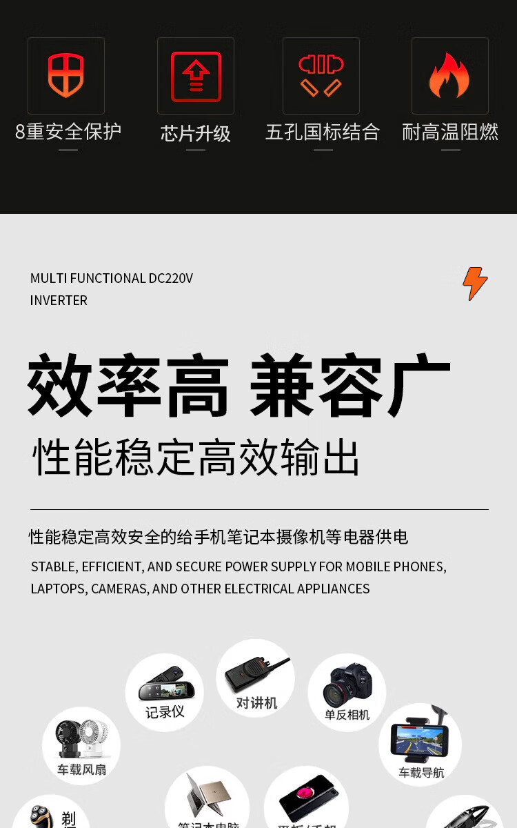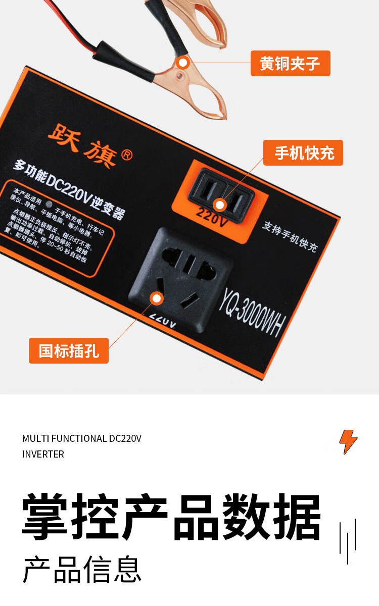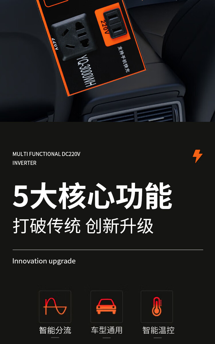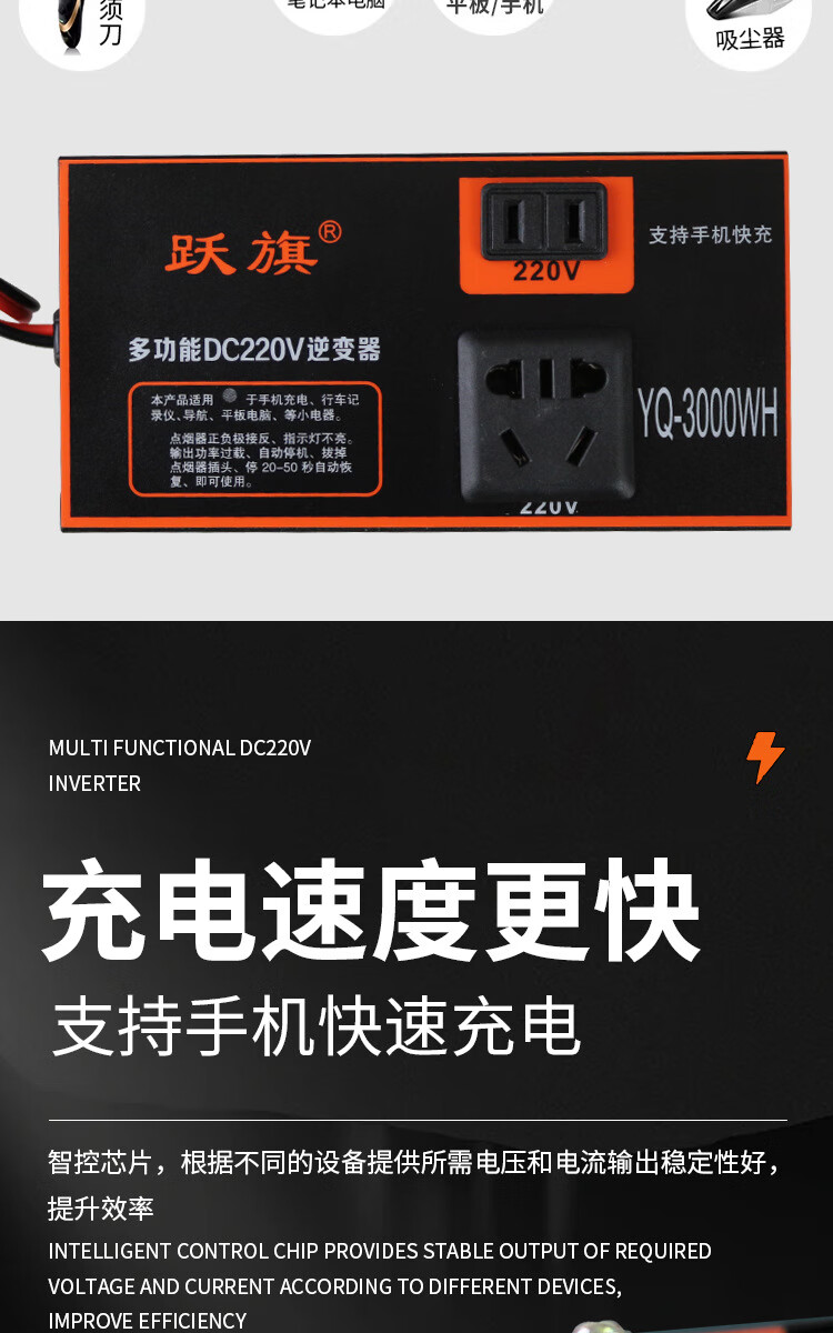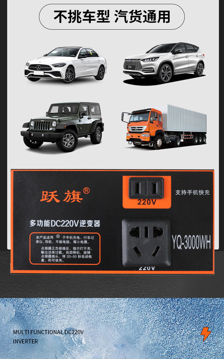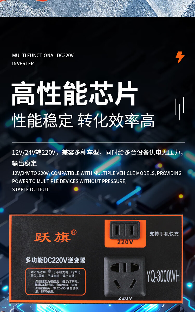 Car inverter 12v24v to 220v power converter booster car truck universal mobile phone charger YQ-3000WH smart inverter