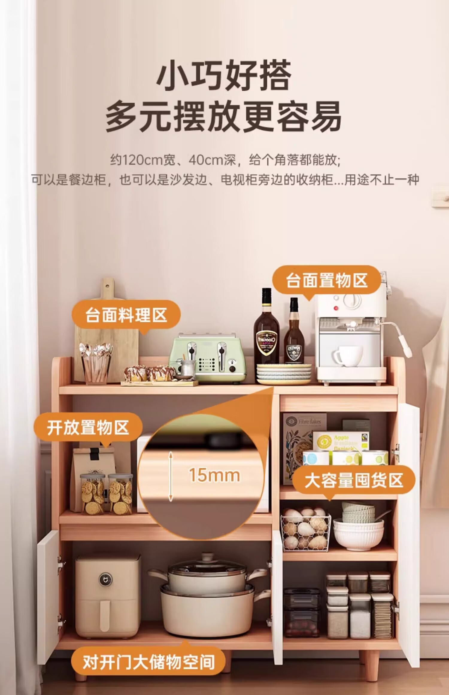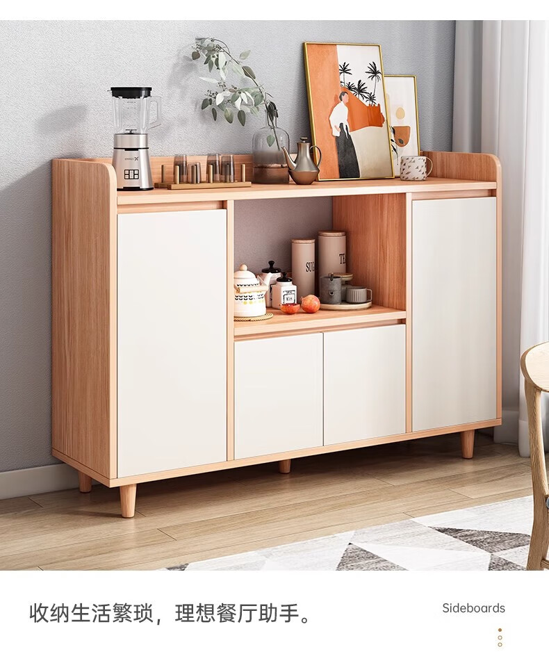 Solid wood sideboard storage cabinet household dining table low cabinet widening living room wall integrated storage storage cabinet tea cabinet solid wood ecological board log color 60cm