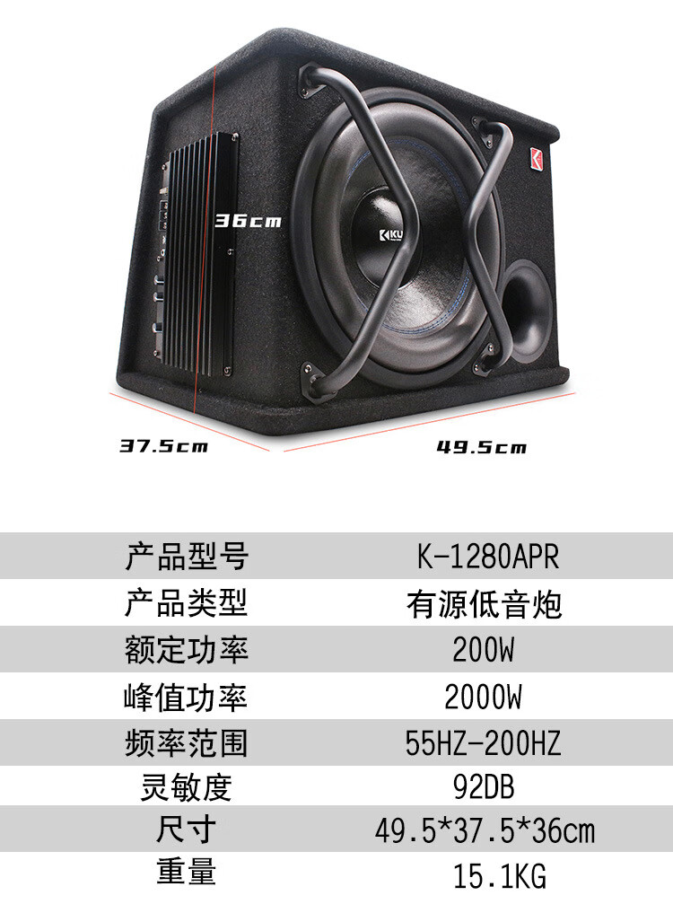 High-power car 12V speaker modified car audio active trapezoidal overweight 12-inch subwoofer 12-inch active subwoofer