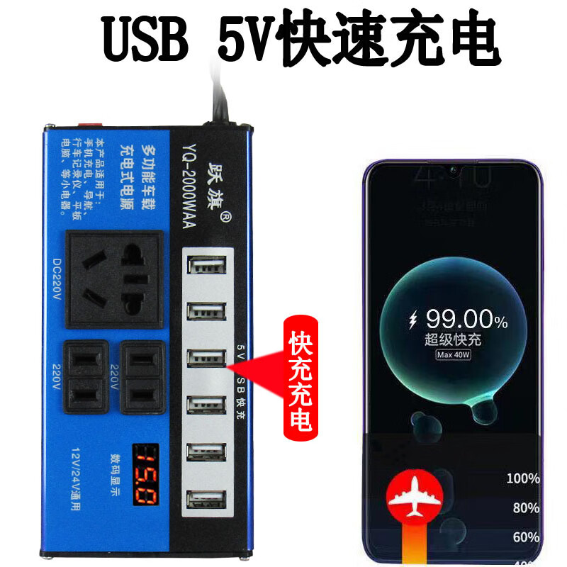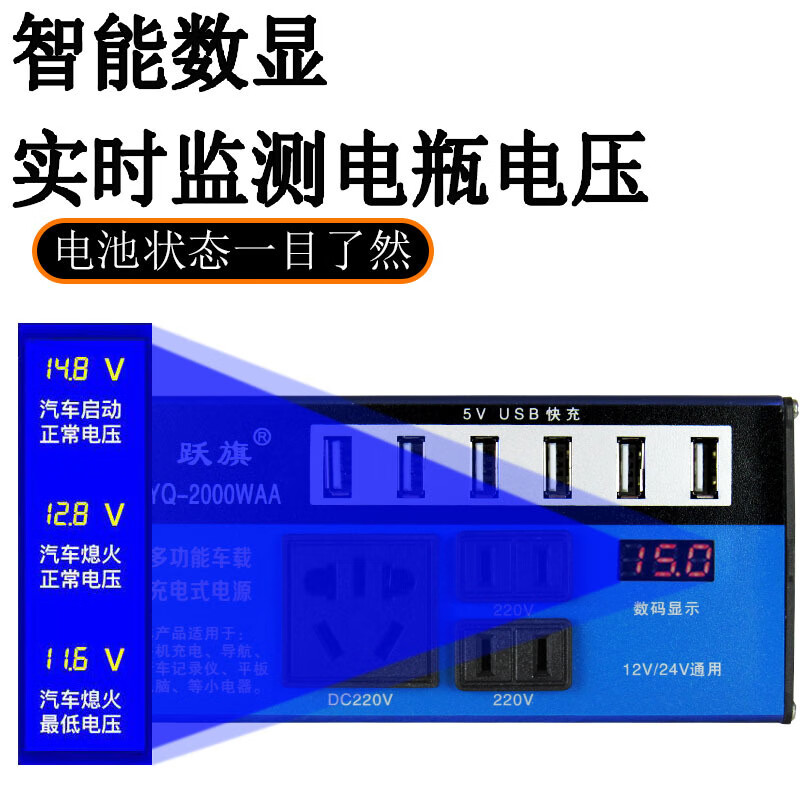Car and truck 12V/24V to 220V multifunctional car inverter converter mobile phone socket charger multifunctional inverter 2000WAA