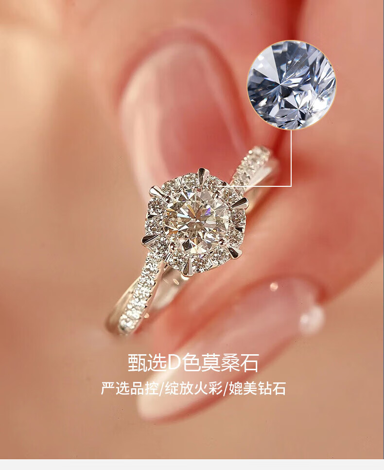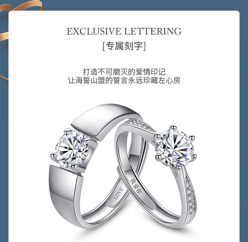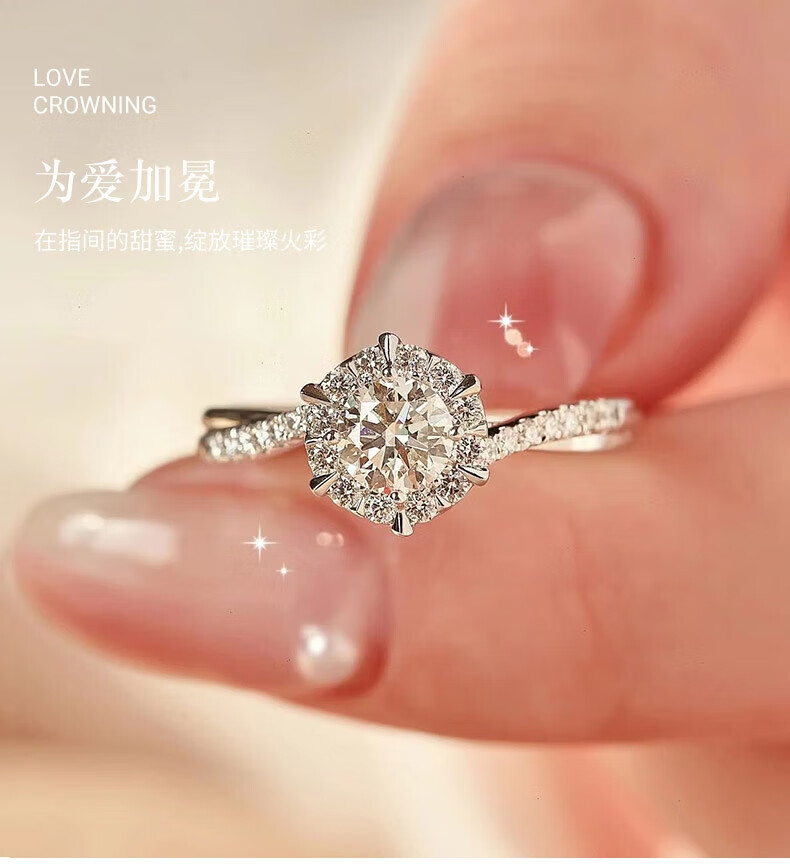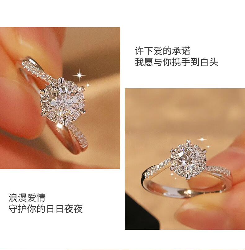 Pt950 platinum D color moissanite diamond ring couple rings can be engraved for birthdays, 520 Valentine's Day gifts for girlfriends, men's rings to crown love - light luxury style