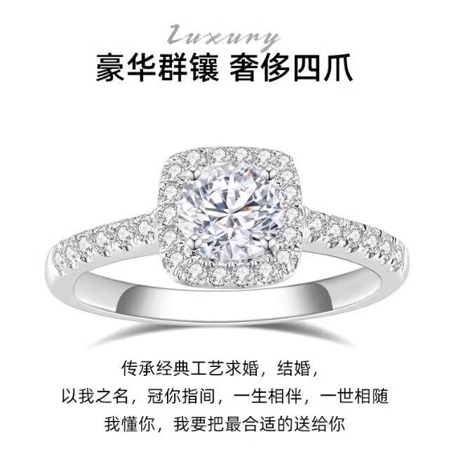I Do platinum PT950 diamond ring for women classic square package 1 carat cultivated diamond proposal engagement wedding ring for girlfriend classic square package 1 carat diamond size 10