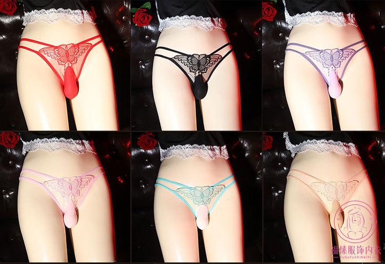 Minting Men's Sexy Butterfly Briefs with JJ Set Low Waist Sexy Mesh Pouch Thong Large Size Pink L Closed Style 110-135Jin Jin is equal to 0.5kg