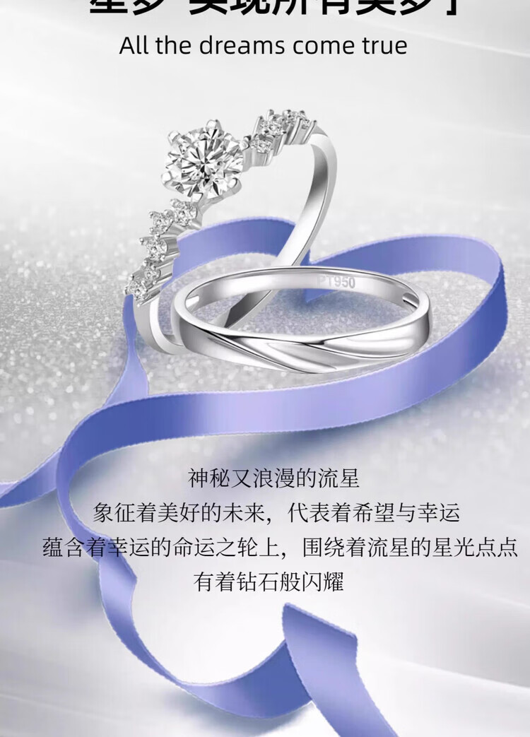 I Do platinum PT950 diamond ring Xingmeng 1 carat diamond proposal engagement wedding ring as a birthday gift for girlfriend and wife Xingmeng-1 carat diamond size 12