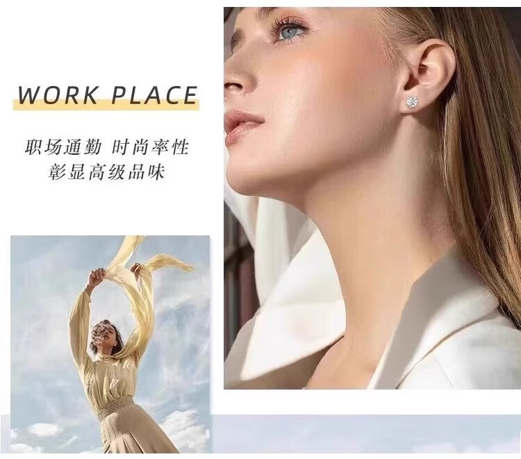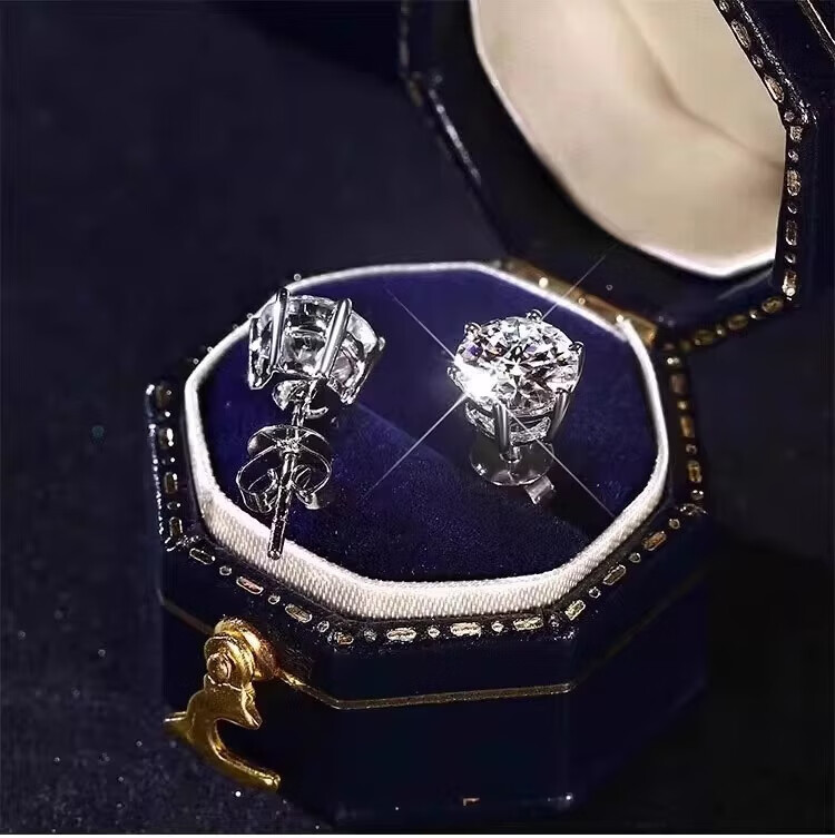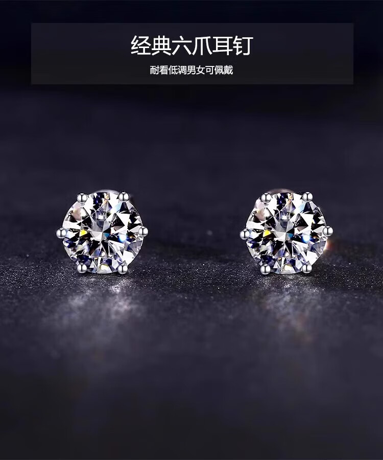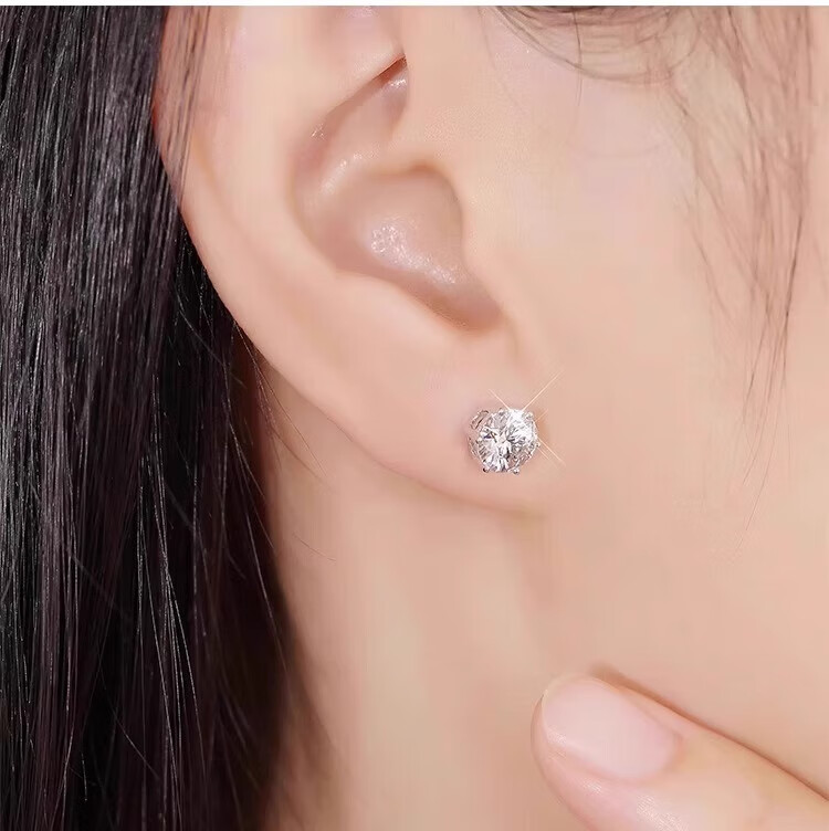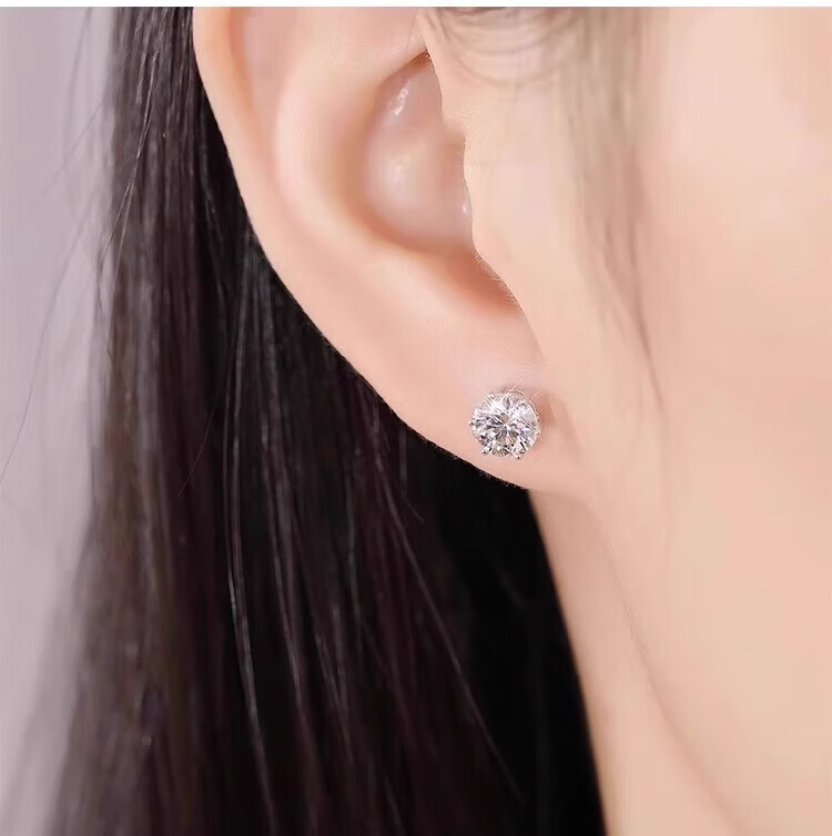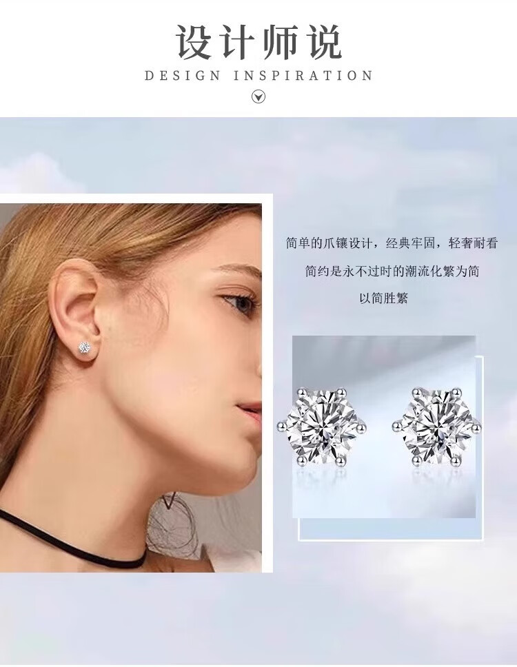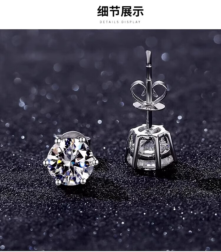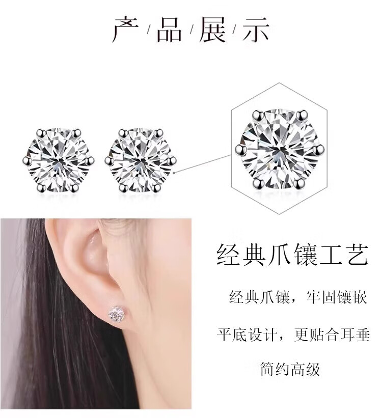 I Do platinum PT950 earrings classic six prongs 50 cents 1 carat cultivated diamond earrings Valentine's Day gift for men and women 50 cents diamond pair