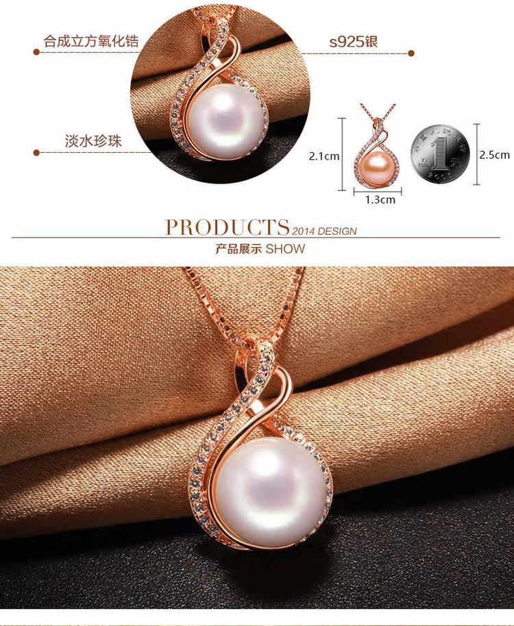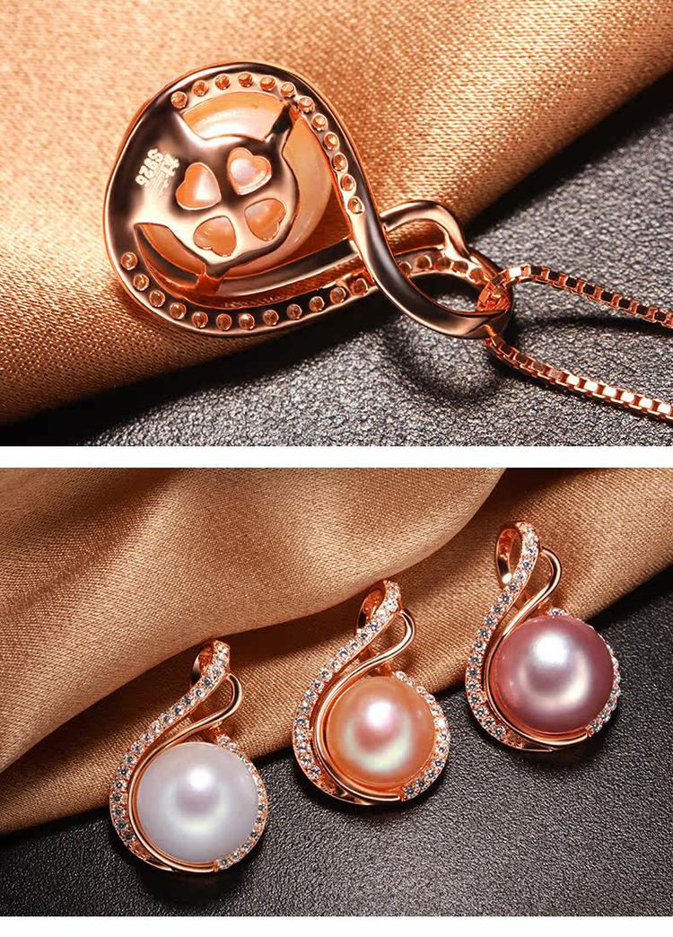 Hanzhu Rose Gold Freshwater Pearl Pendant Necklace with Earrings as a Gift for My Girlfriend’s Mom Dark Orange Pink