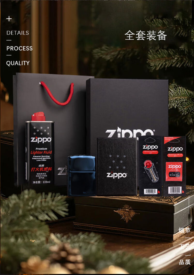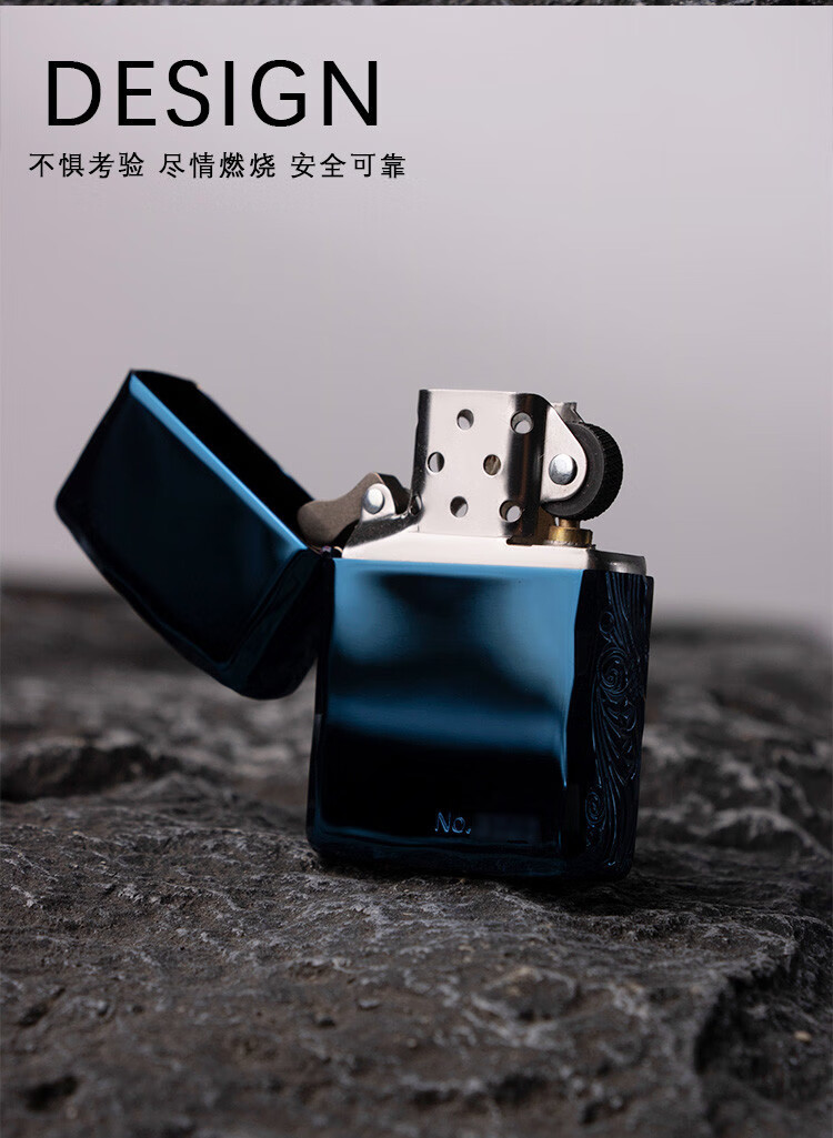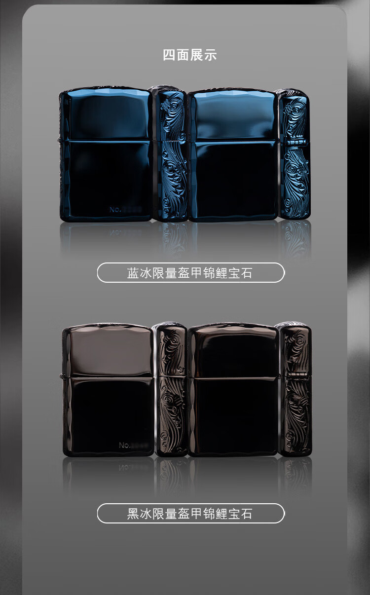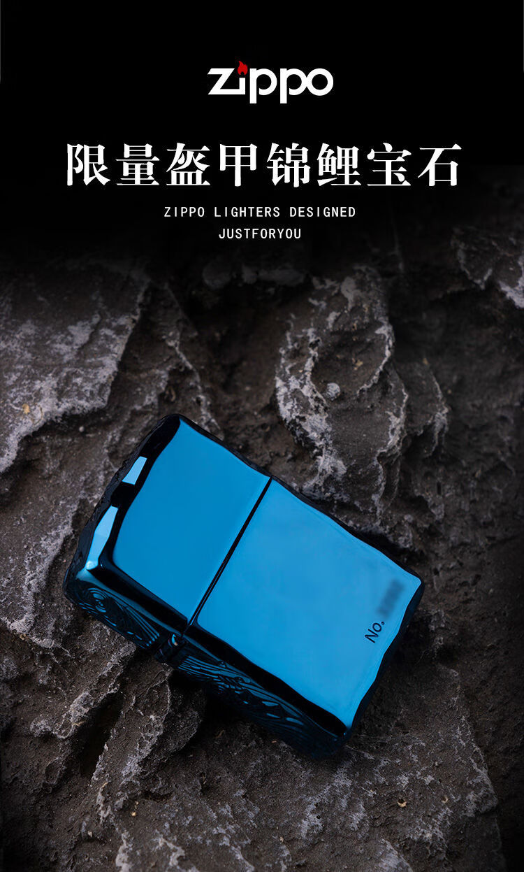 ZIPPO lighter imported from Japan, genuine ZIPPO kerosene windproof limited edition armor, engraved koi gem, blue koi, ready stock, quick delivery, oil stone gift box set
