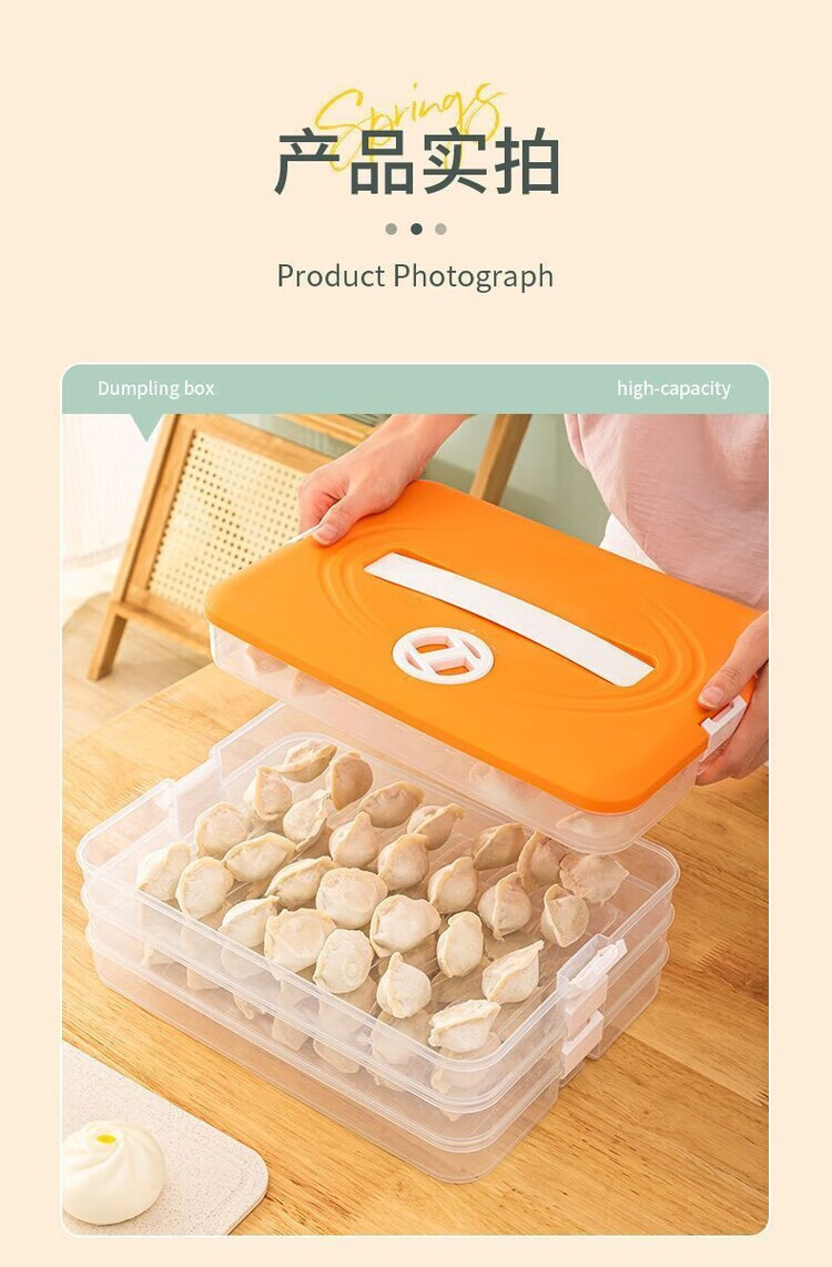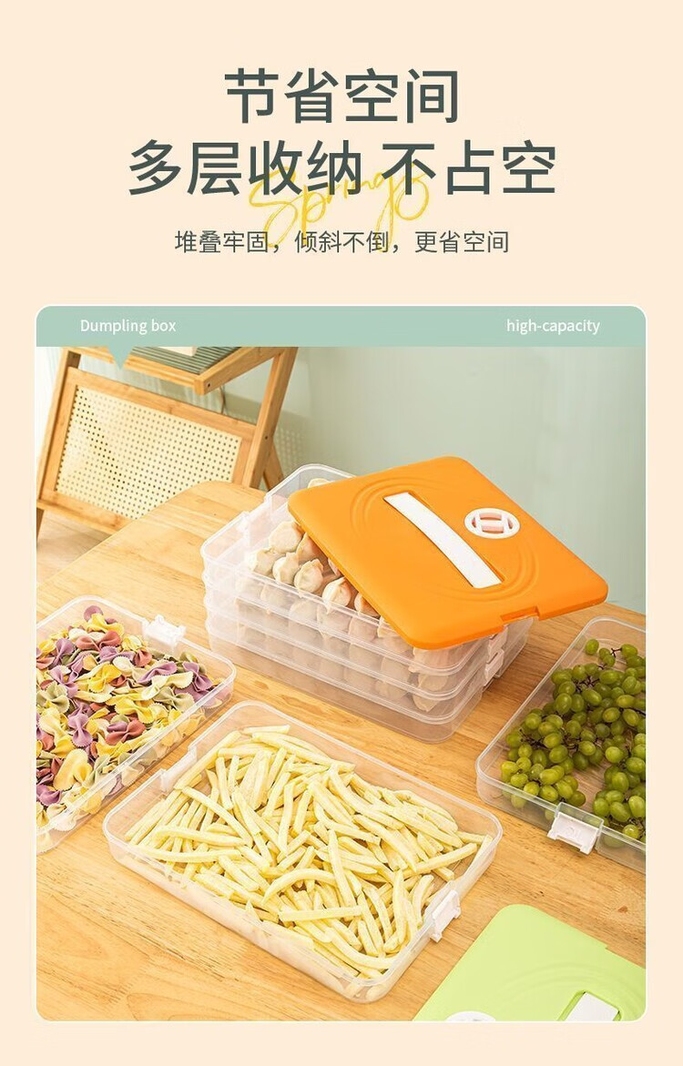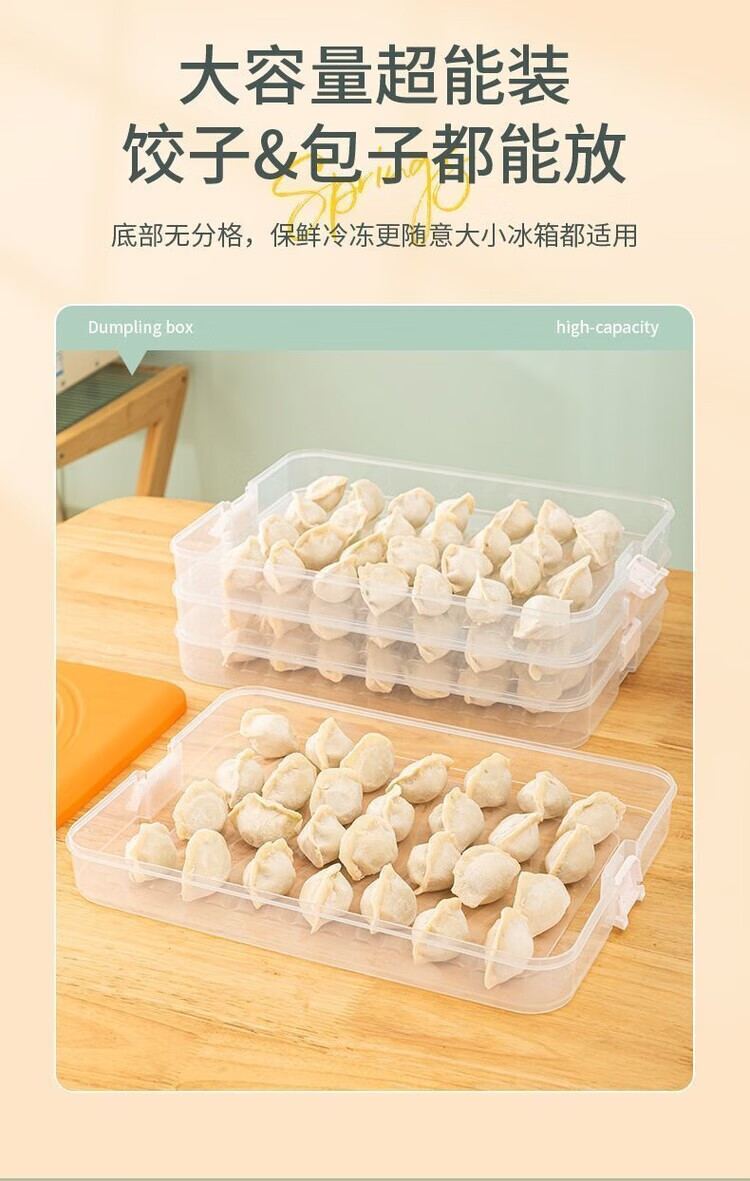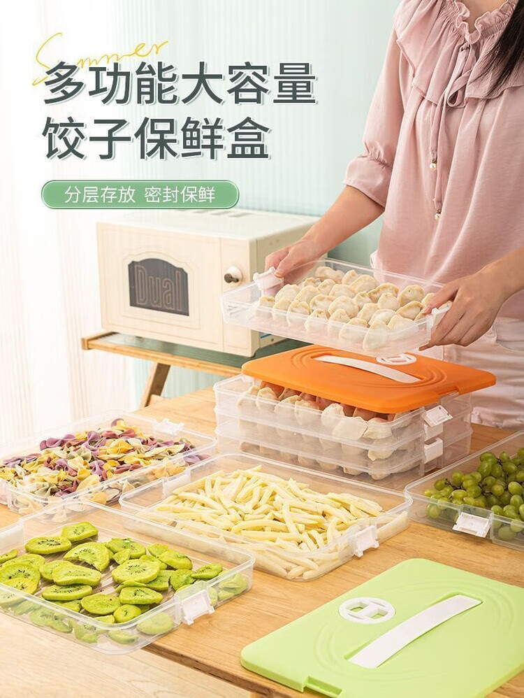 Meikejie dumpling box thickened non-stick refrigerator storage box household quick-frozen chaos frozen crisper multi-layer with lid cream white no odor - pp material default four layers and one lid 240 pieces packed 59 pieces per day