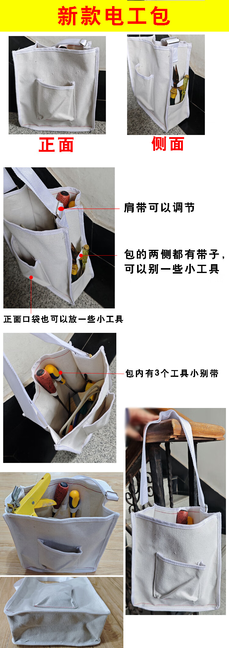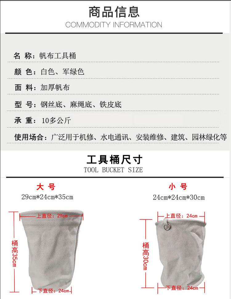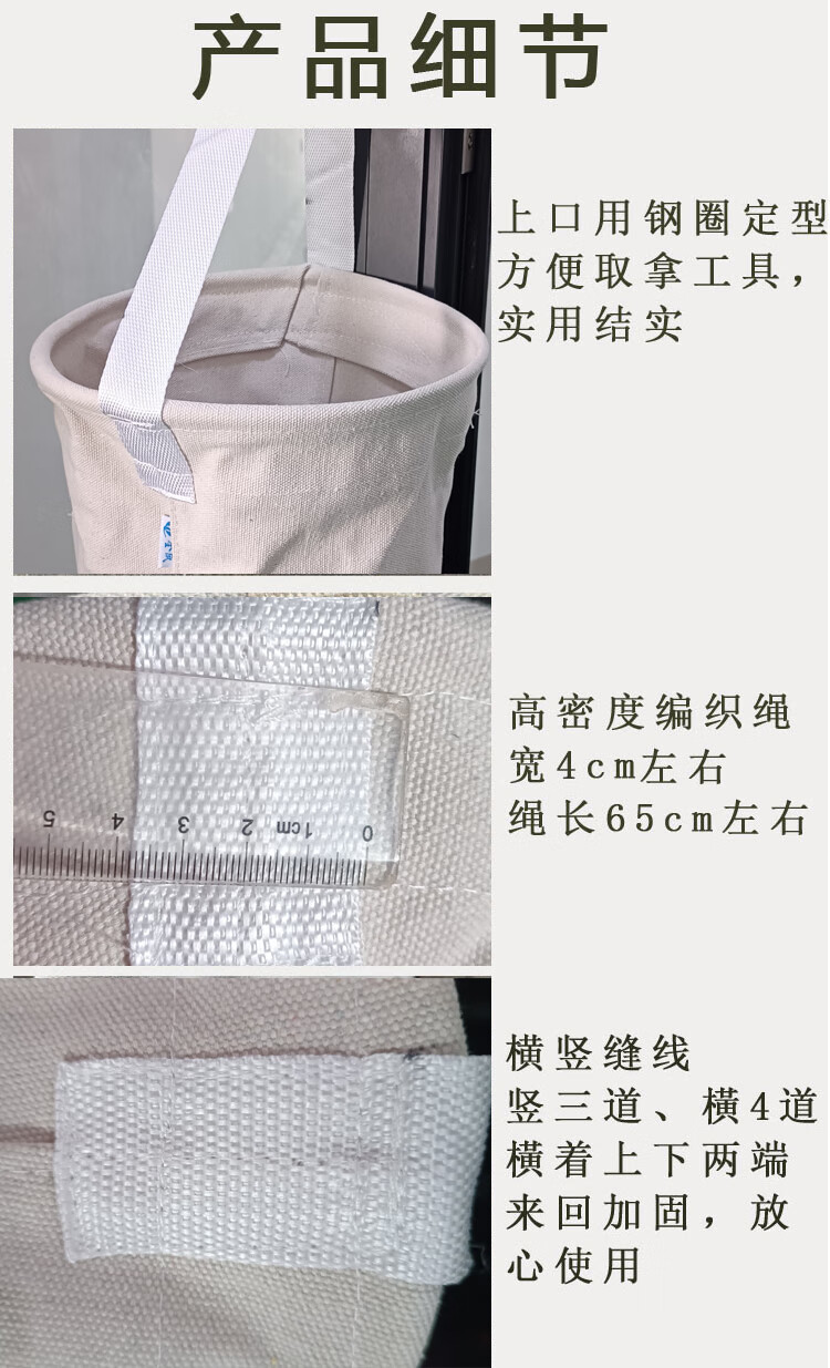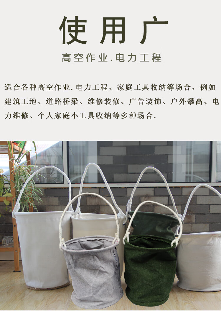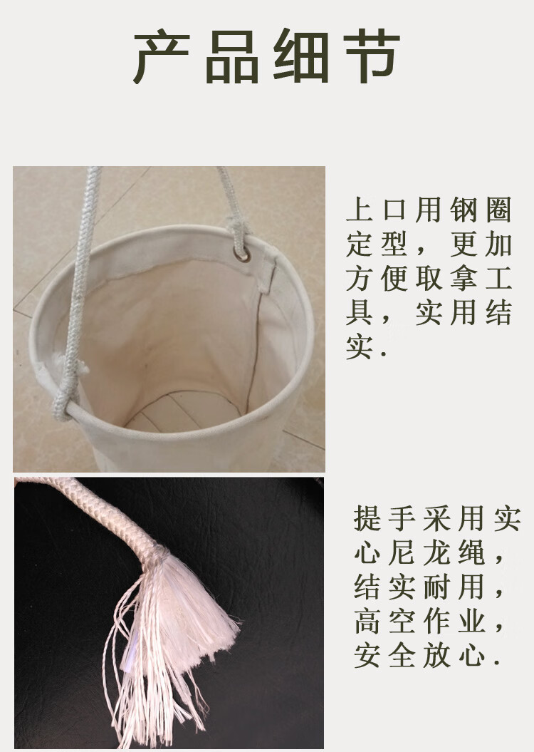 Shantou Lincun cylindrical power tool bag canvas round toilet bag electrician insulated bucket repairman working at height round rope small iron bottom (white)
