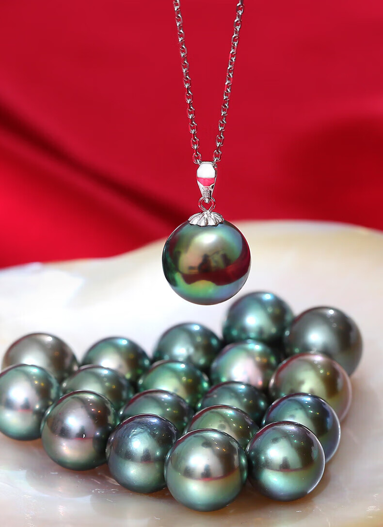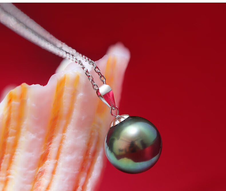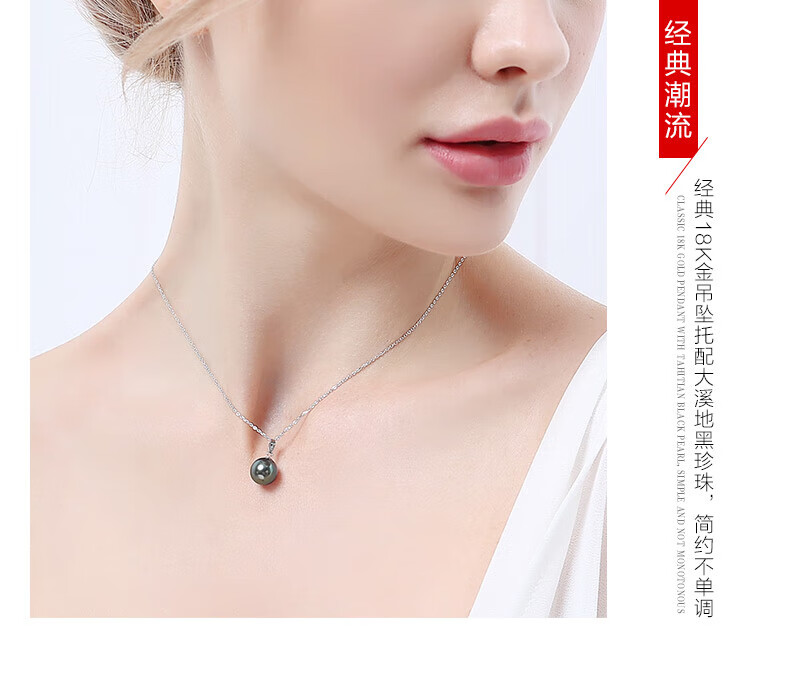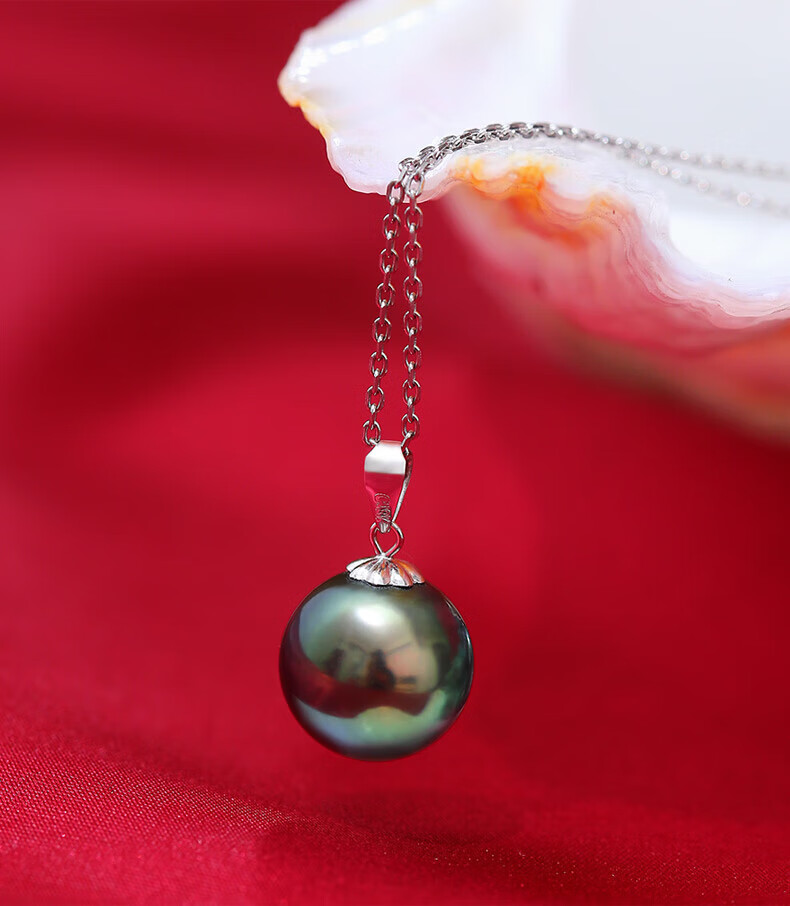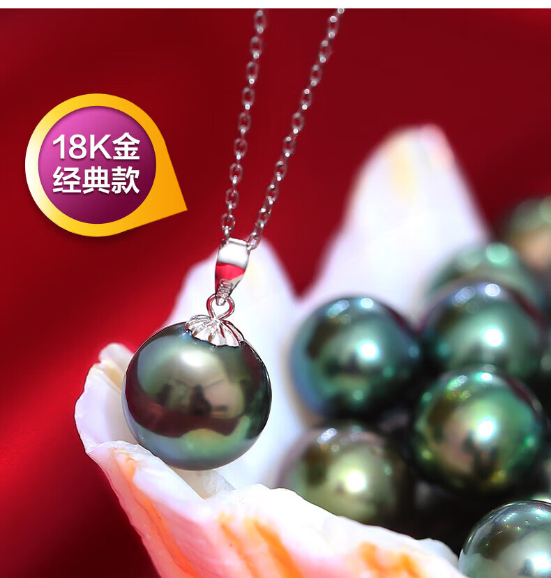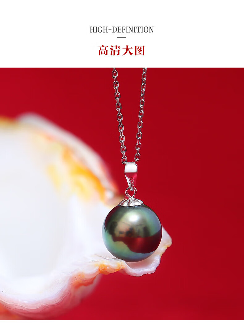 Everlasting Leaf G18K Gold Saltwater Tahitian Black Pearl Necklace Single Pendant Necklace Birthday Gift Minor Flaws 12-13mm