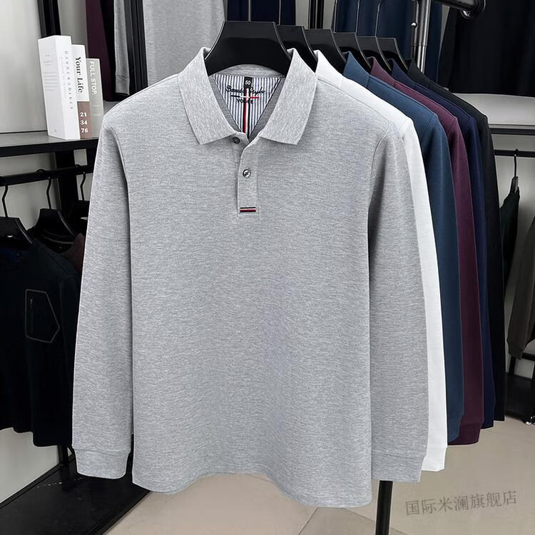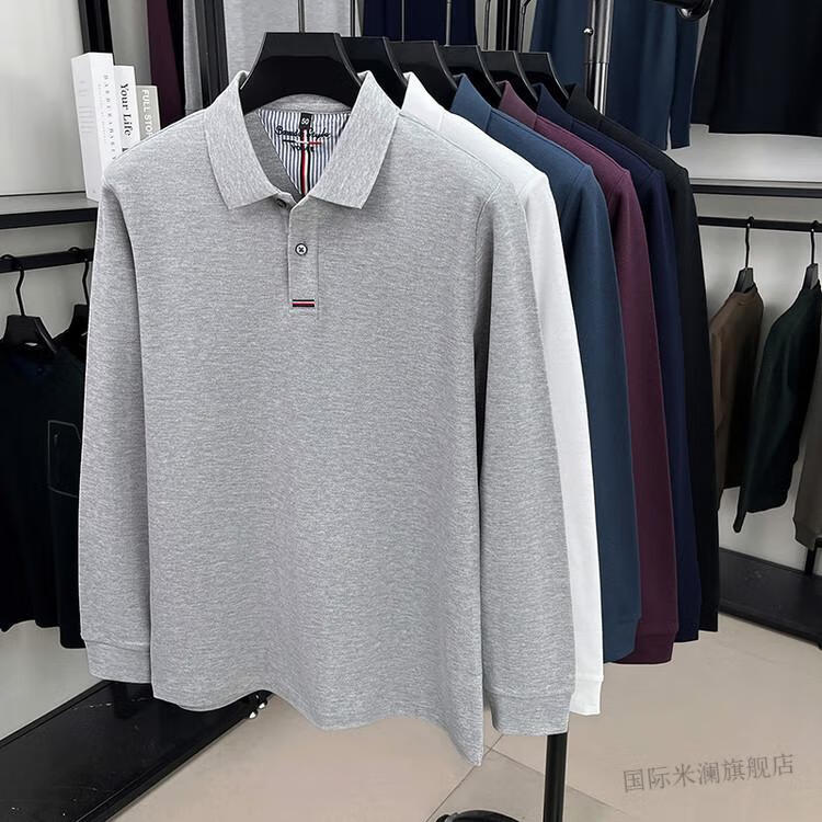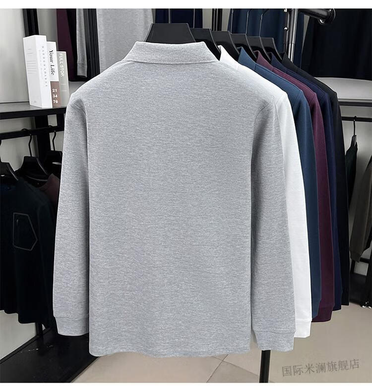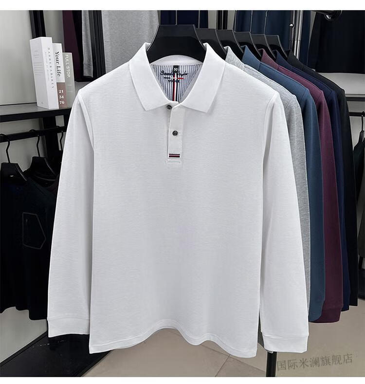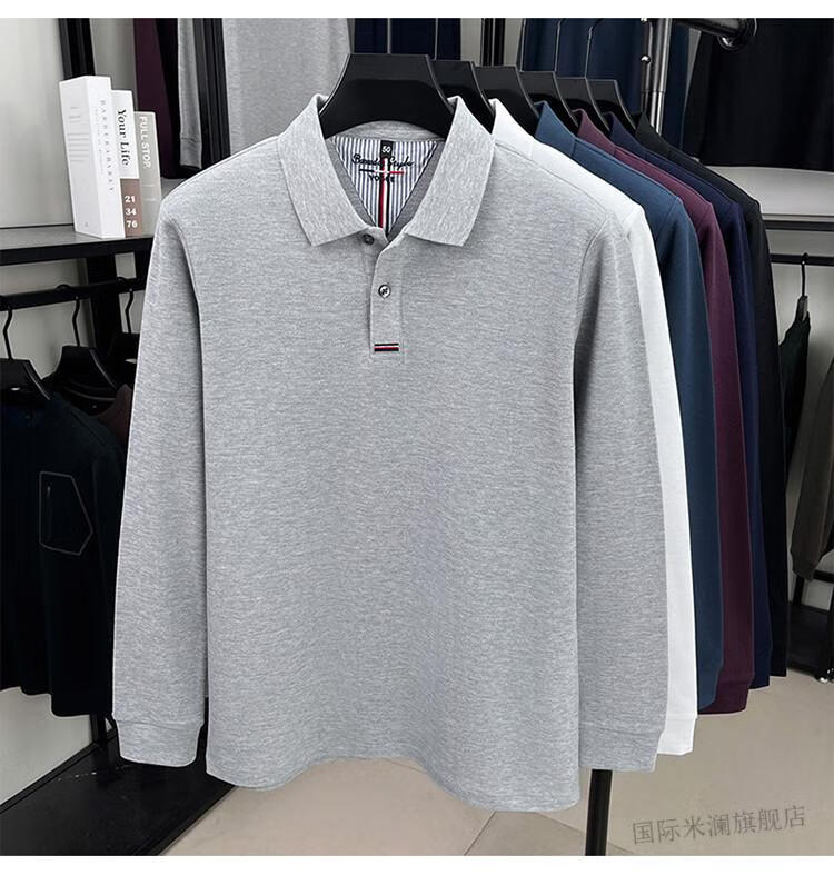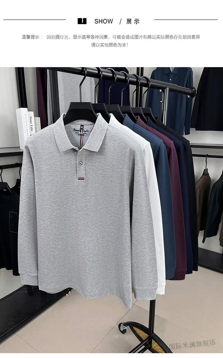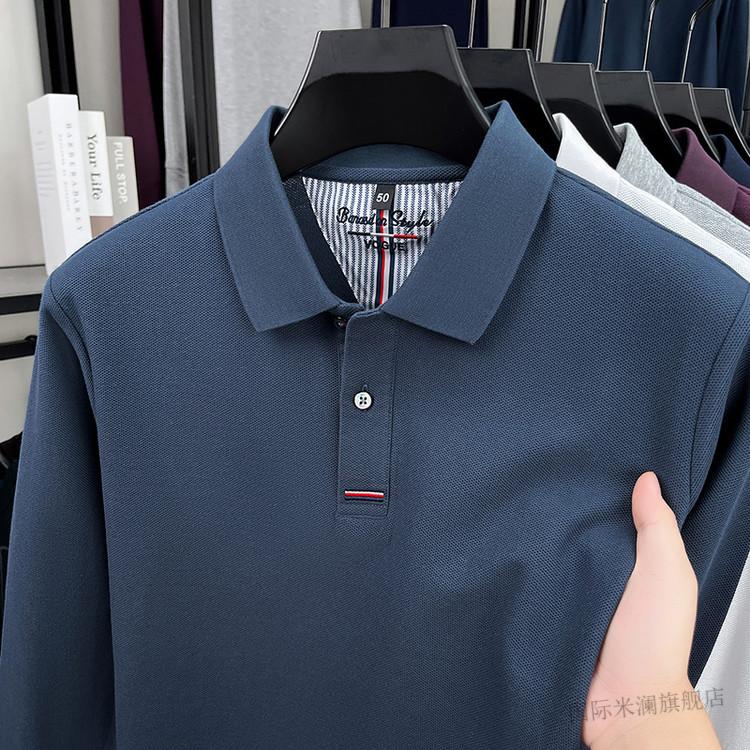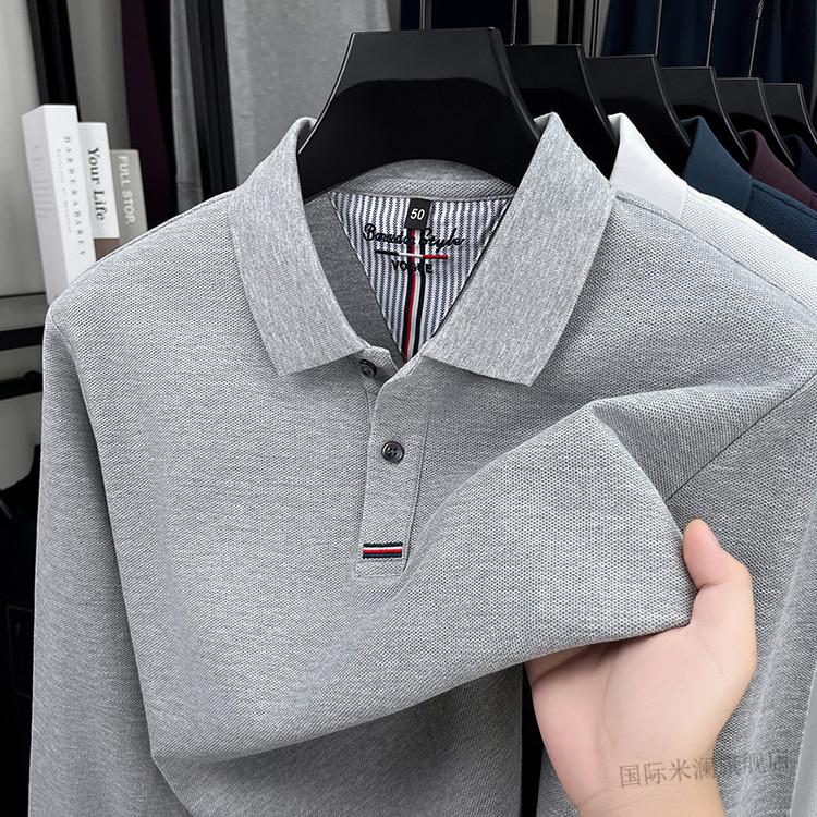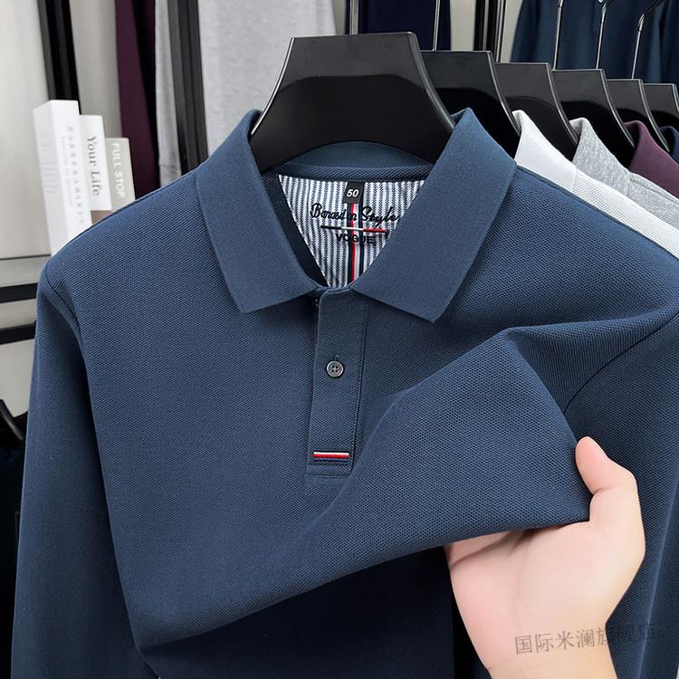 International Milan high-end brand pure cotton 100% long-sleeved T-shirt men's autumn new lapel POLO shirt business versatile tops for men Huashi XL recommended 130-155Jin Jin equals 0.5 kg