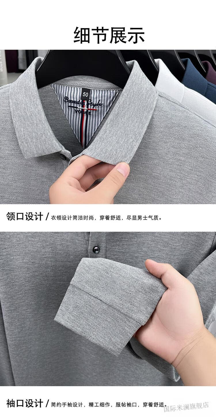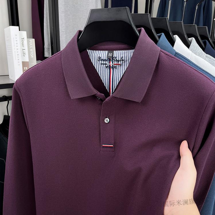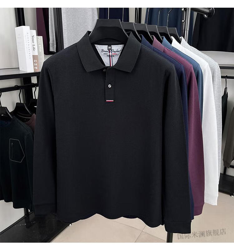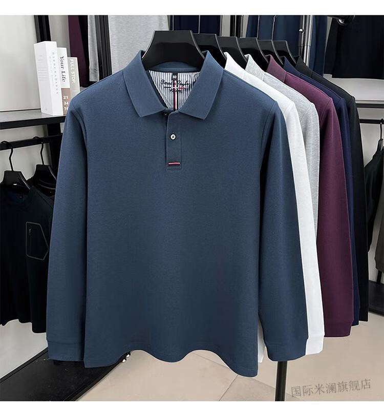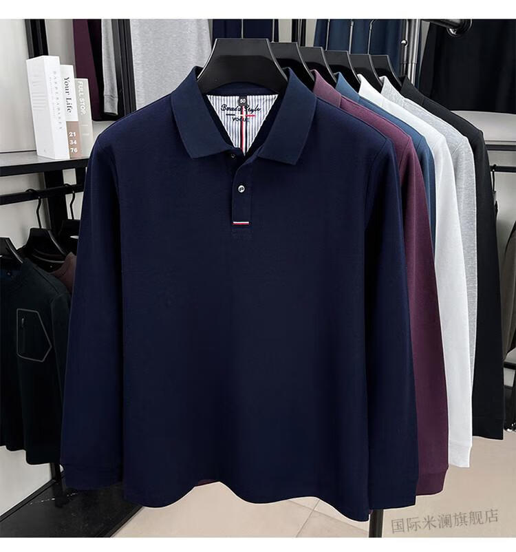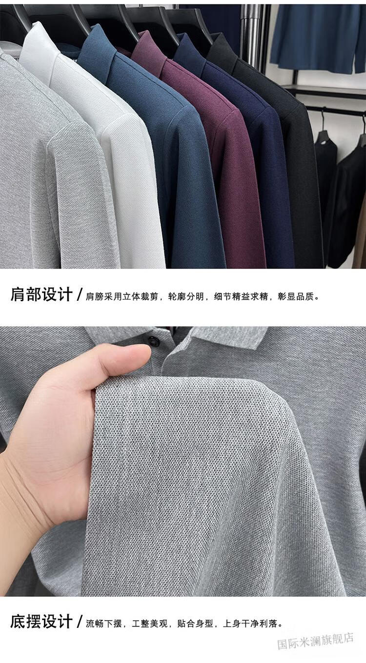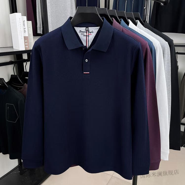 International Milan high-end brand pure cotton 100% long-sleeved T-shirt men's autumn new lapel POLO shirt business versatile tops for men Huashi XL recommended 130-155Jin Jin equals 0.5 kg