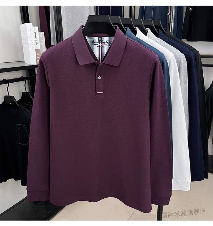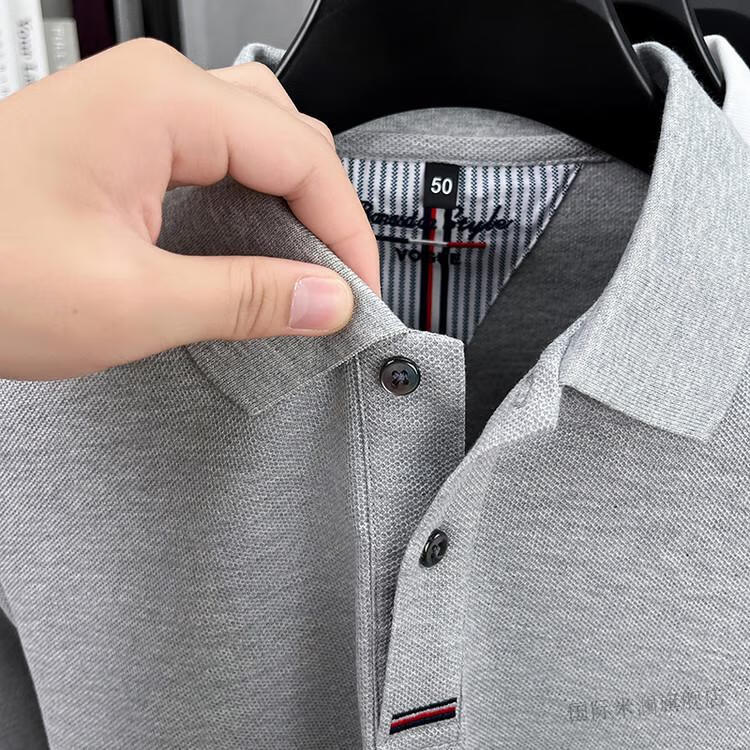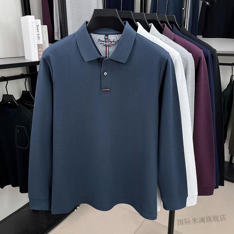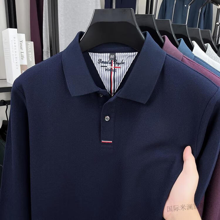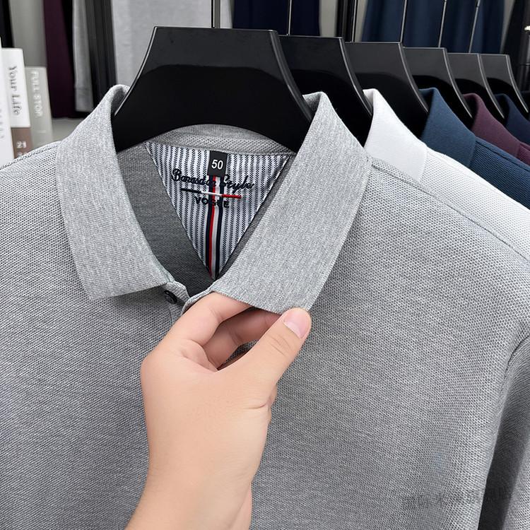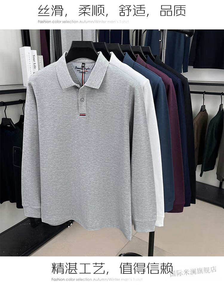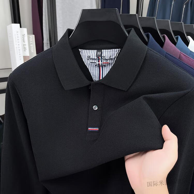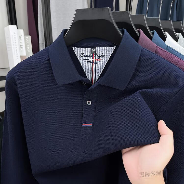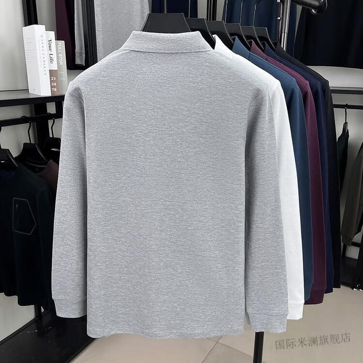 International Milan high-end brand pure cotton 100% long-sleeved T-shirt men's autumn new lapel POLO shirt business versatile tops for men Huashi XL recommended 130-155Jin Jin equals 0.5 kg