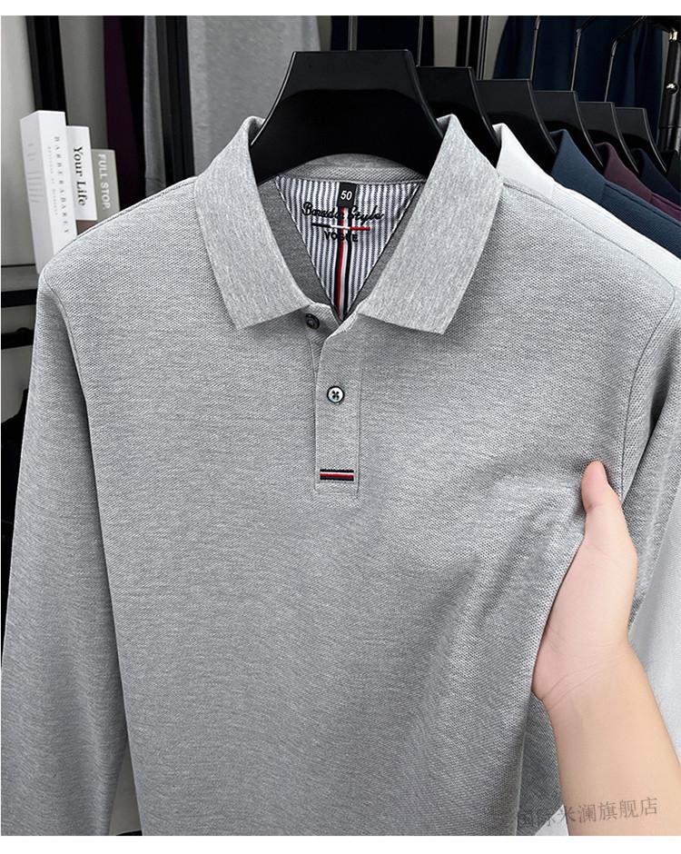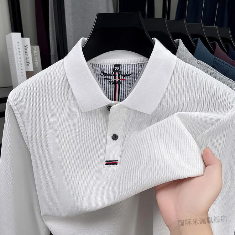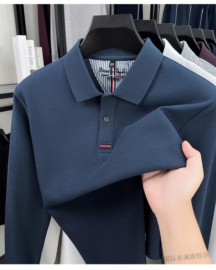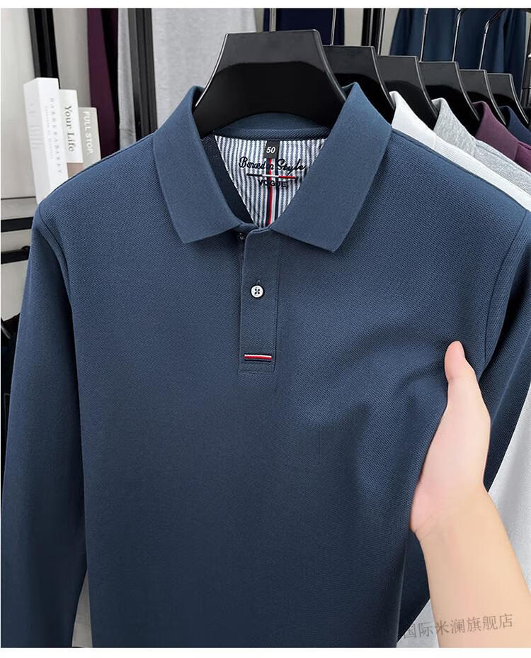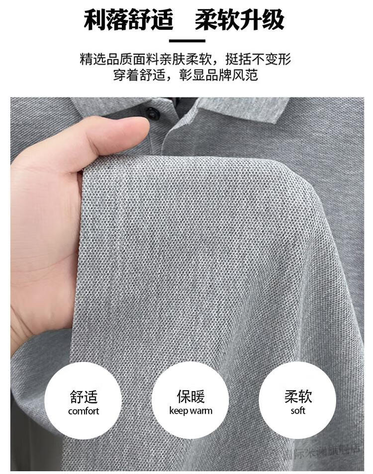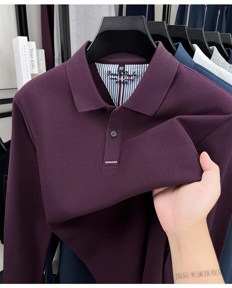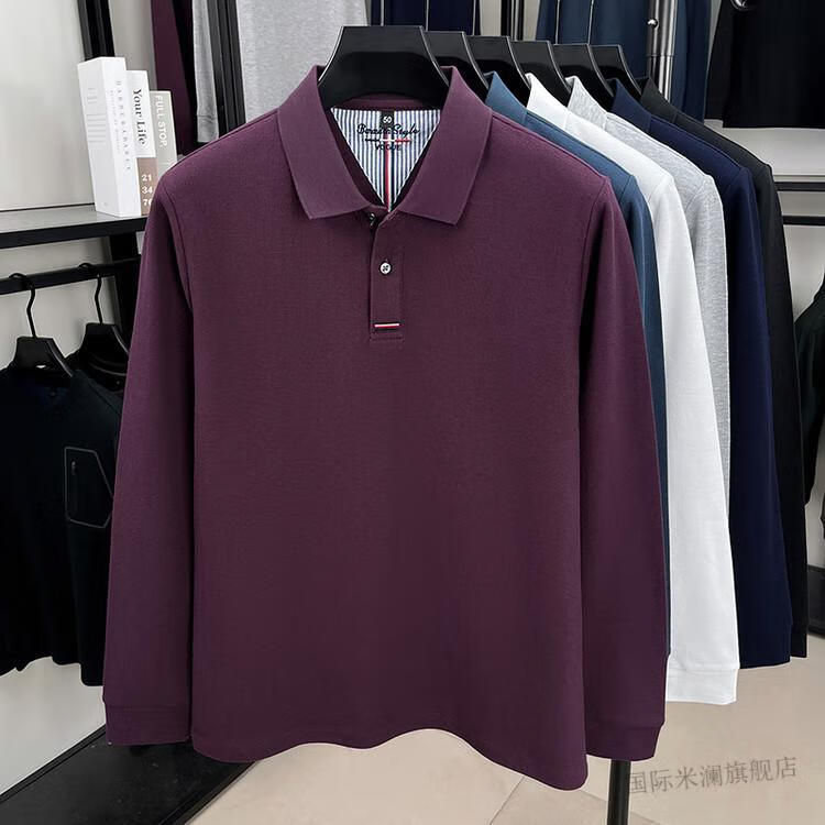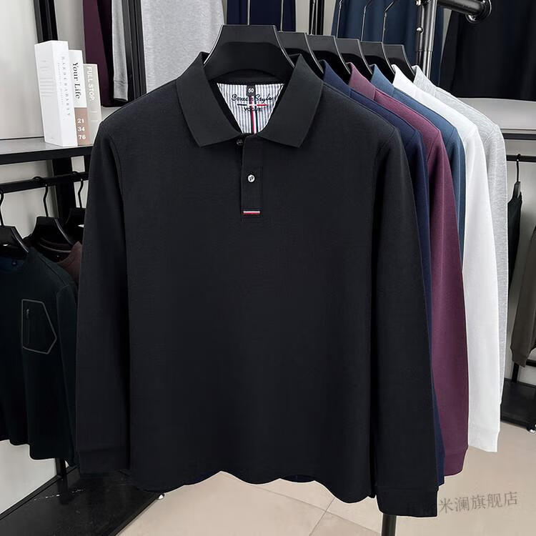 International Milan high-end brand pure cotton 100% long-sleeved T-shirt men's autumn new lapel POLO shirt business versatile tops for men Huashi XL recommended 130-155Jin Jin equals 0.5 kg