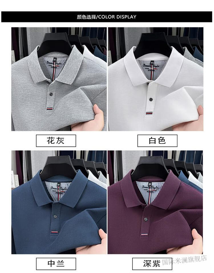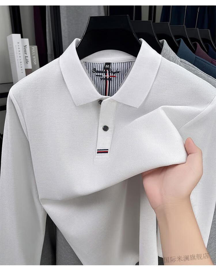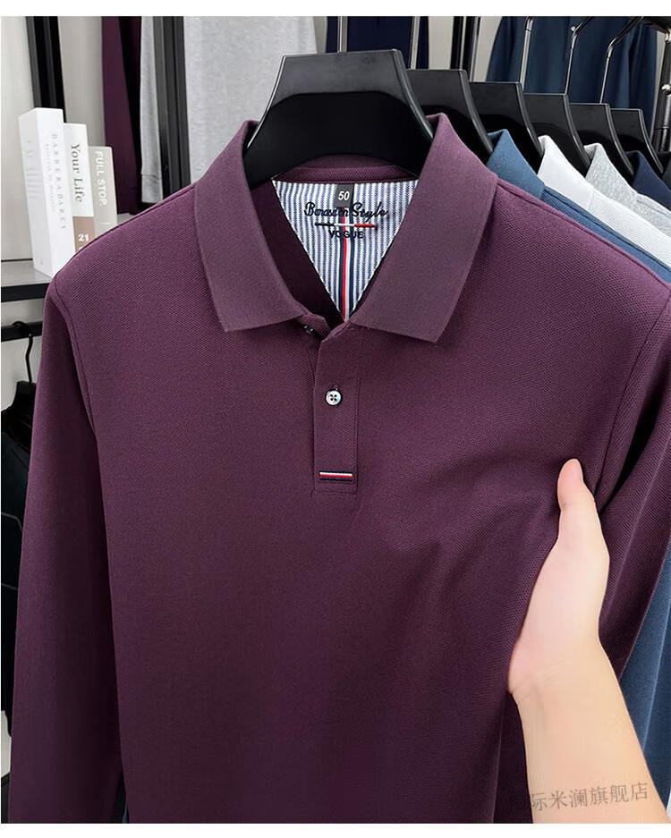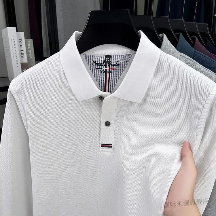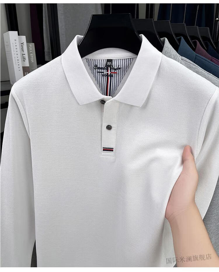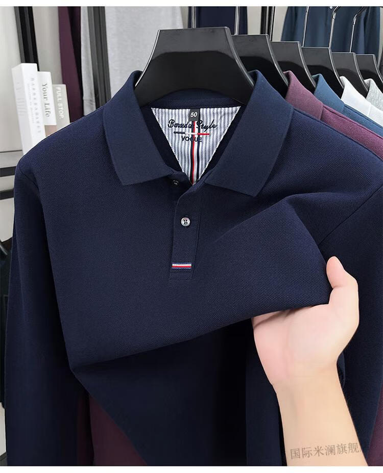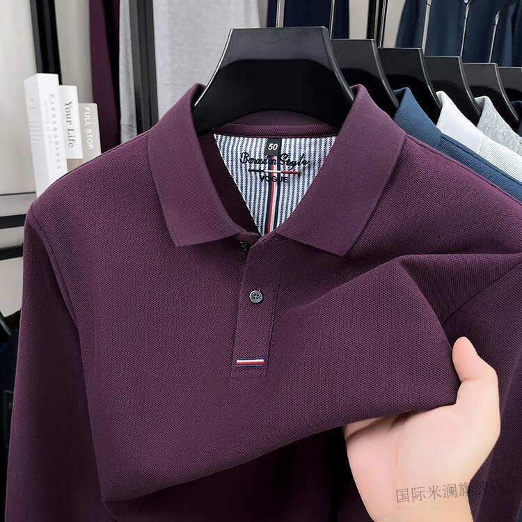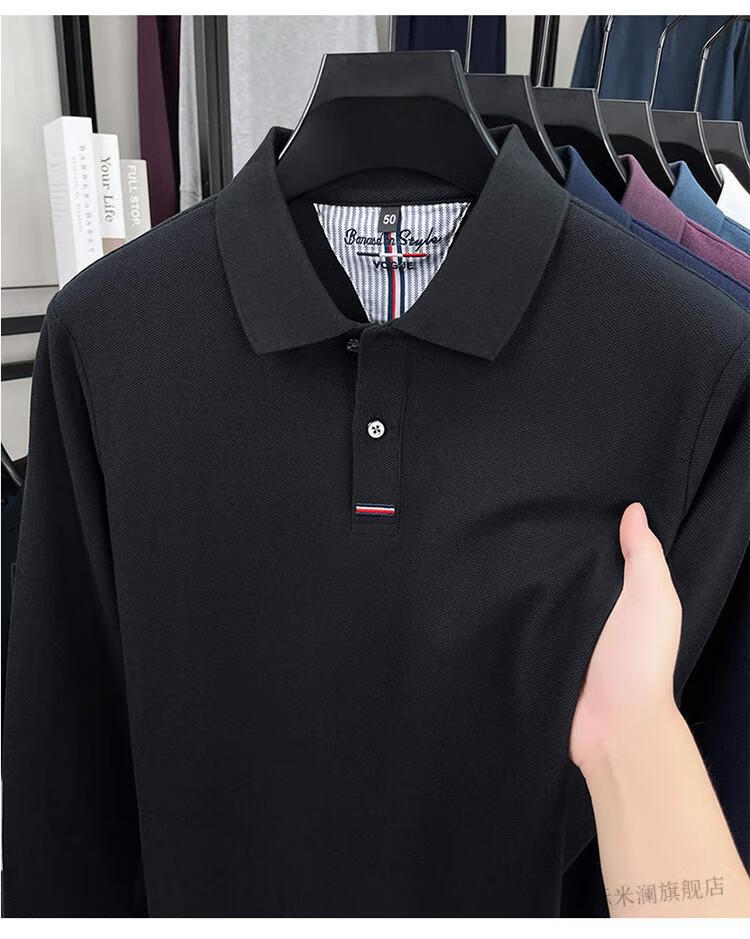 International Milan high-end brand pure cotton 100% long-sleeved T-shirt men's autumn new lapel POLO shirt business versatile tops for men Huashi XL recommended 130-155Jin Jin equals 0.5 kg
