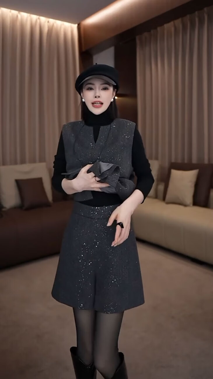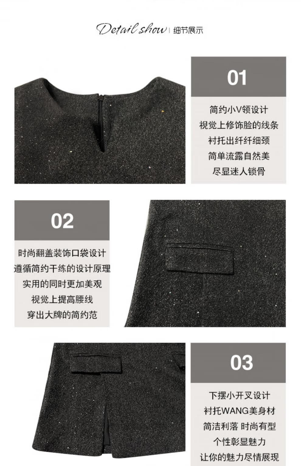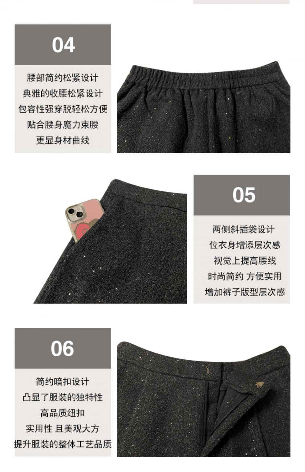 Pierre Cardin fashionable small fragrant vest set 2025 new women's autumn and winter mid-length sleeveless woolen jacket and shorts two-piece set gray vest + shorts S 85-95