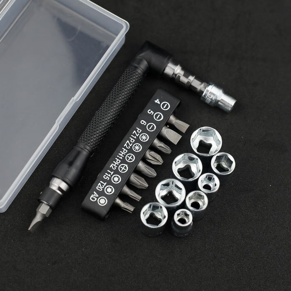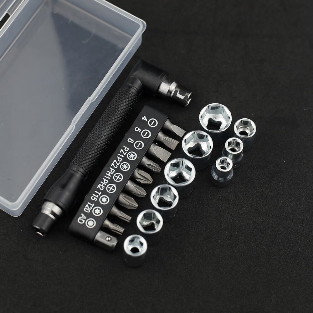 20-in-1 L-shaped double-head screwdriver bit socket set 7-shaped socket wrench suitable for household use in narrow spaces 36-tooth ratchet screwdriver extension set (comes with storage box)