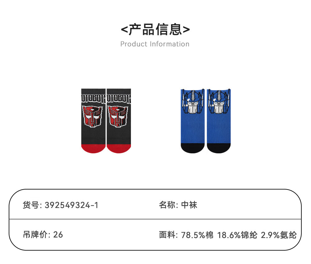 ANTA Sock Covers for Boys Transformers Autumn New Trendy Printed Lifestyle Antibacterial Socks 392549324 Blue-2 1 Pair 3-5 Years Old (M)