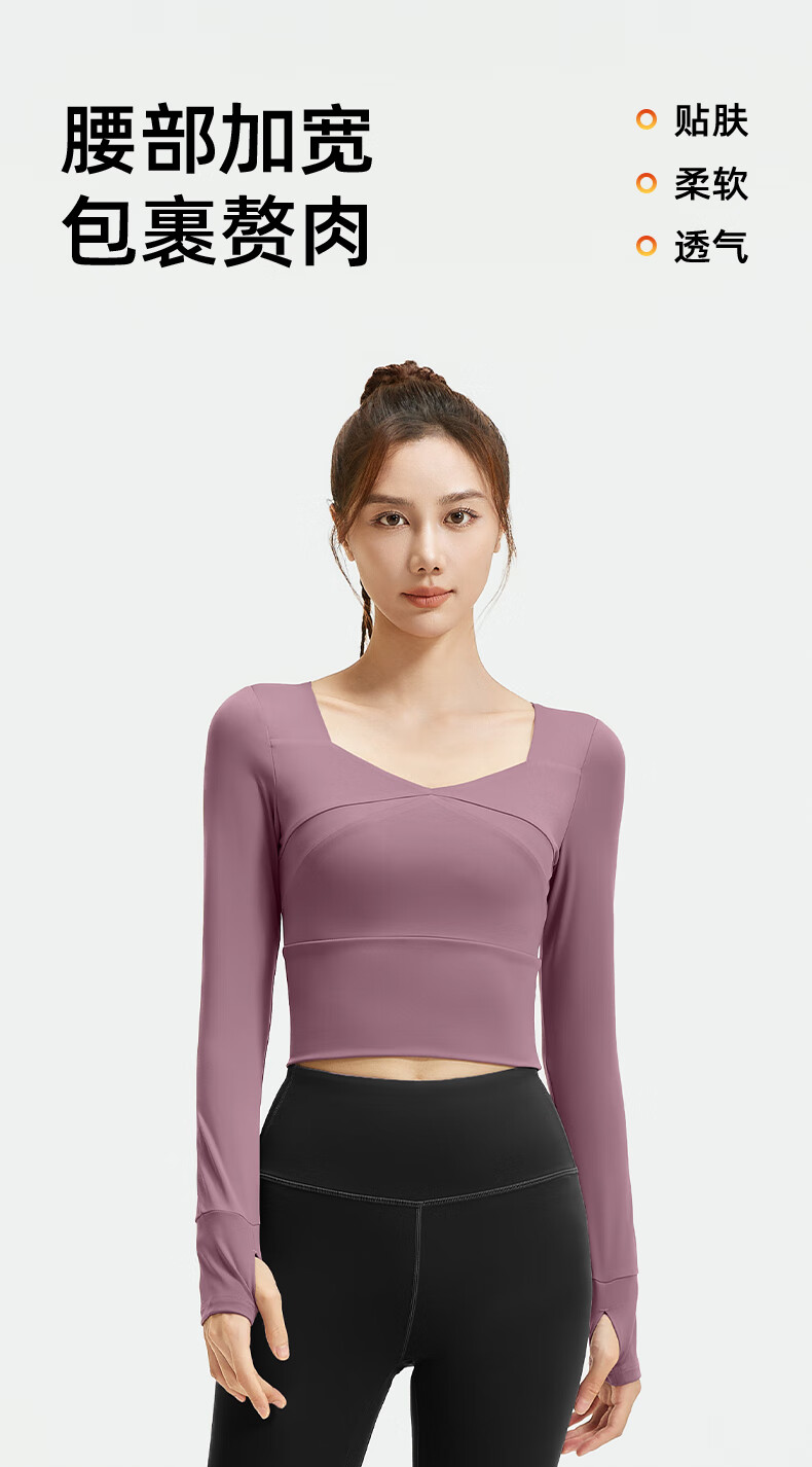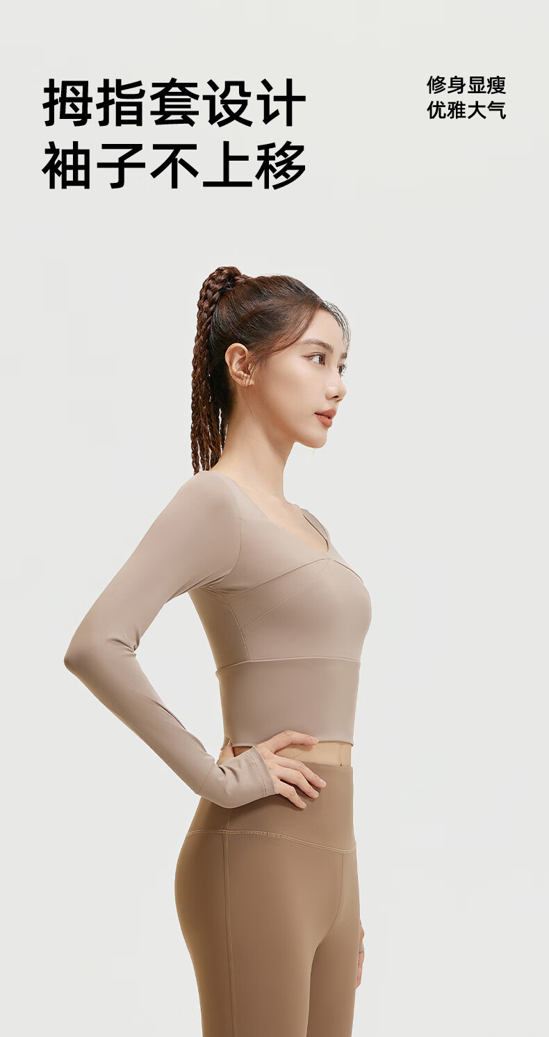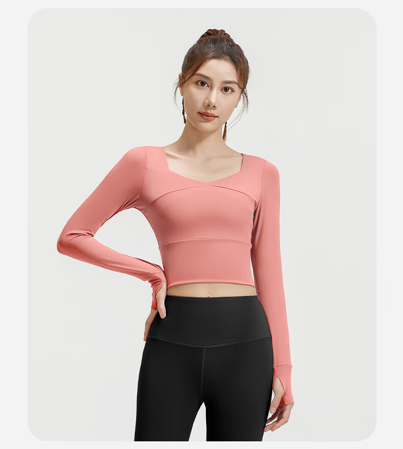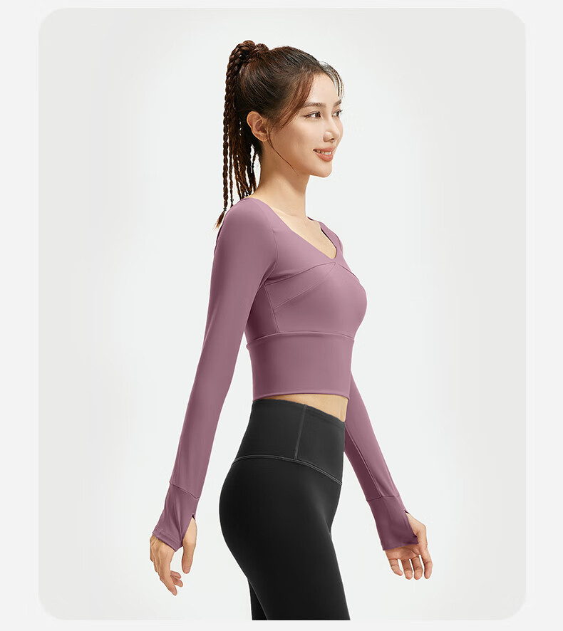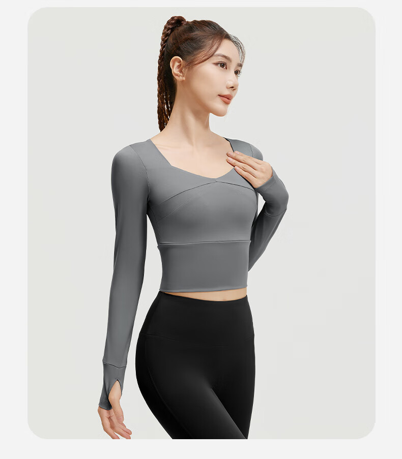 With chest pad yoga wear fitness wear women's autumn and winter Pilates training long-sleeved fitness morning running sports top Star Black L