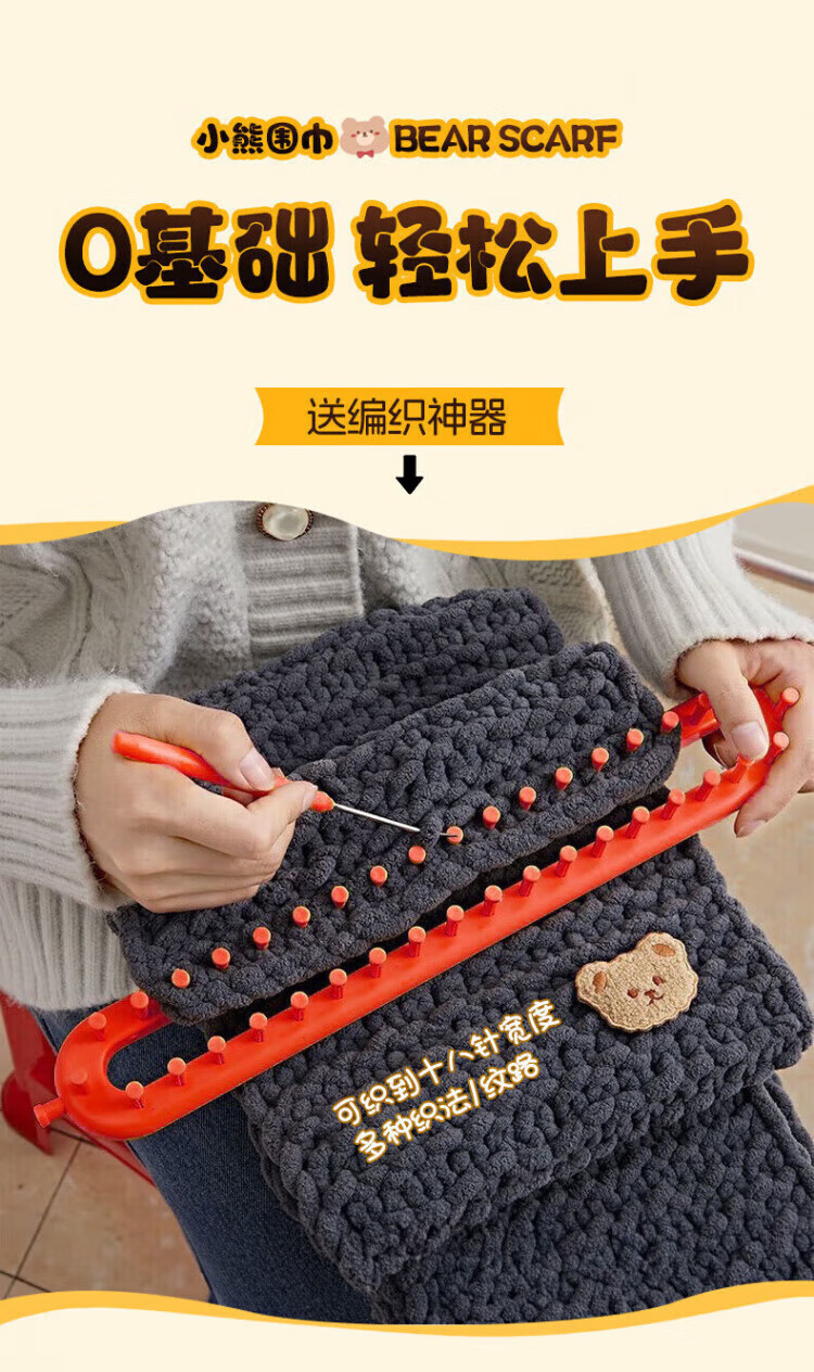 Bei Chuzhong scarf hand-knitted diy gift for girlfriend autumn and winter making hand-woven scarf wool homemade boyfriend material package milky white ice strips 4 groups gift bag + bear stickers + artifact
