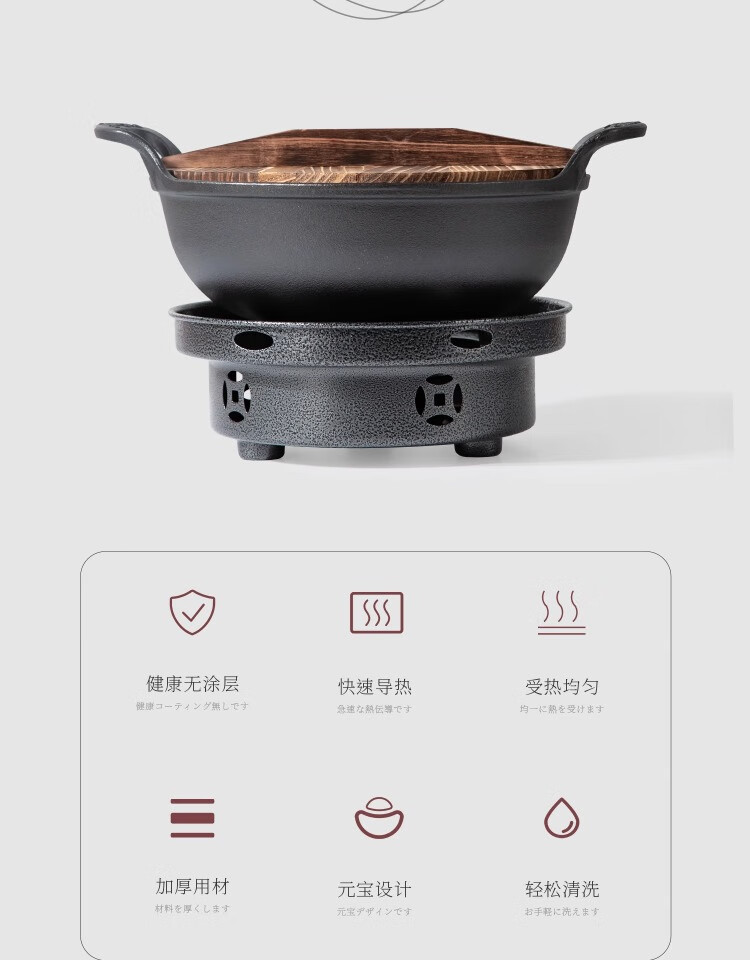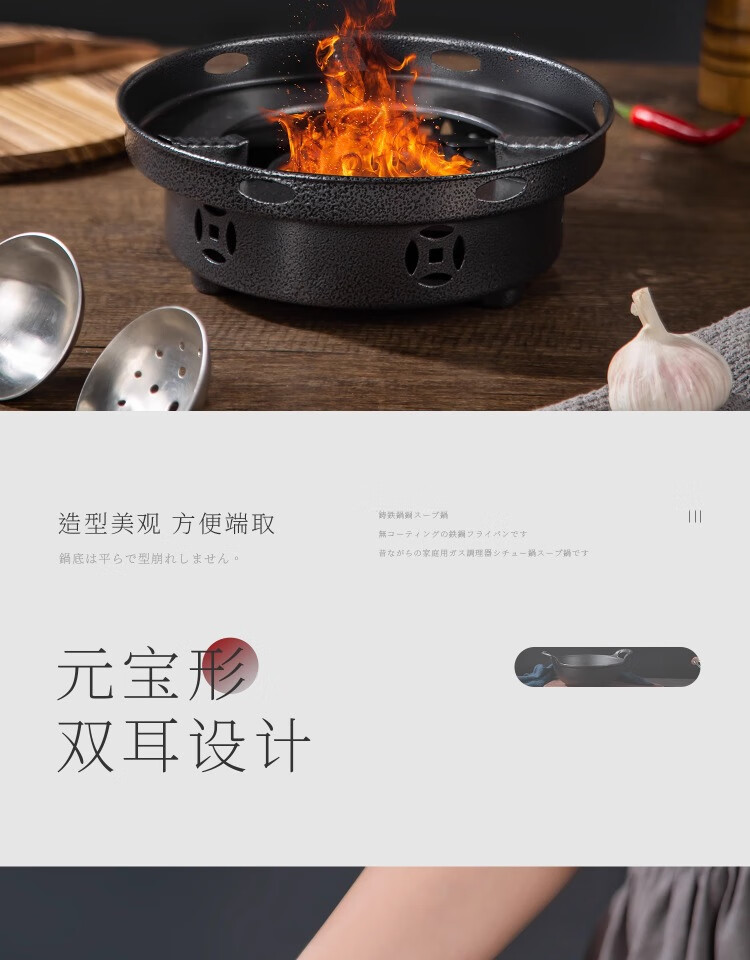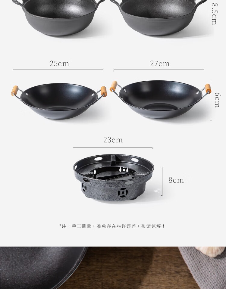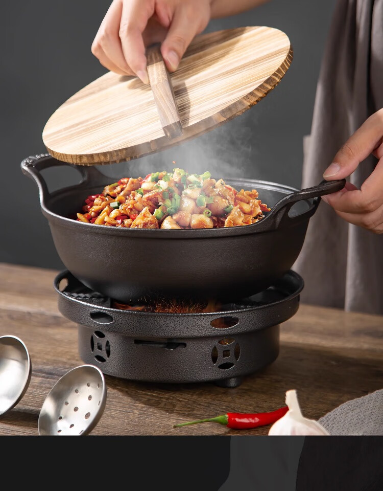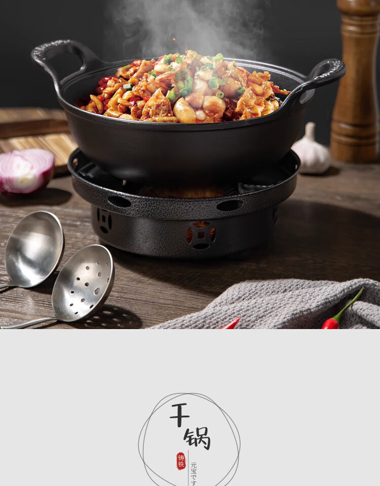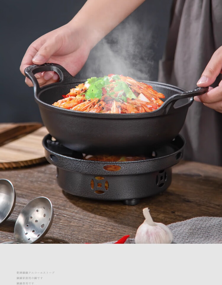 Newair household alcohol stove small hot pot double-ear dry pot outdoor portable stove commercial hotel dry boiler small pot alcohol stove uncoated fine iron pot + fir lid 27cm No Specifications