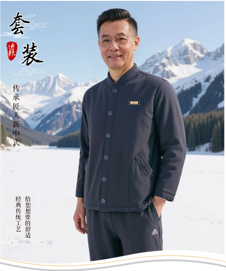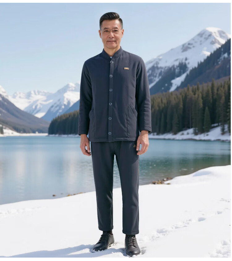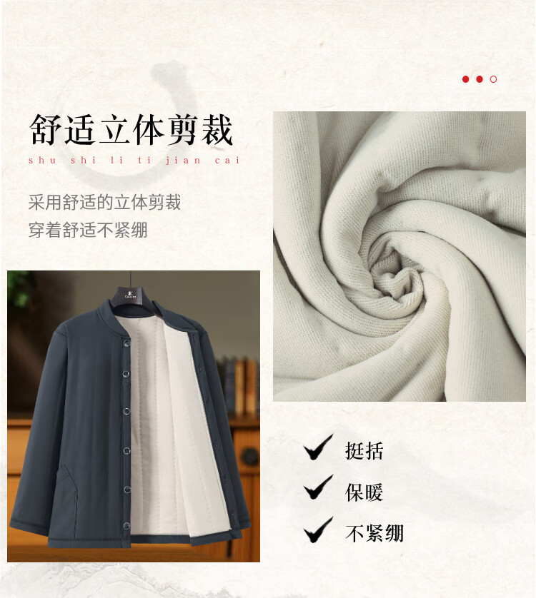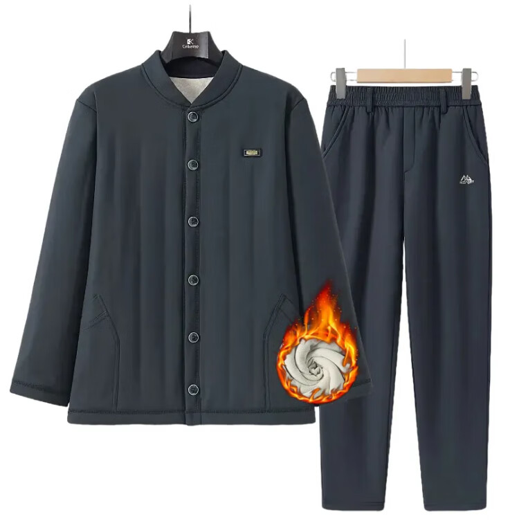 Middle-aged and elderly people plus velvet and thickened base warm cotton suit cardigan dad autumn and winter cold-proof underwear cotton jacket grandpa navy blue 308A 3XL recommended 145-170Jin Jin equals 0.5 kg