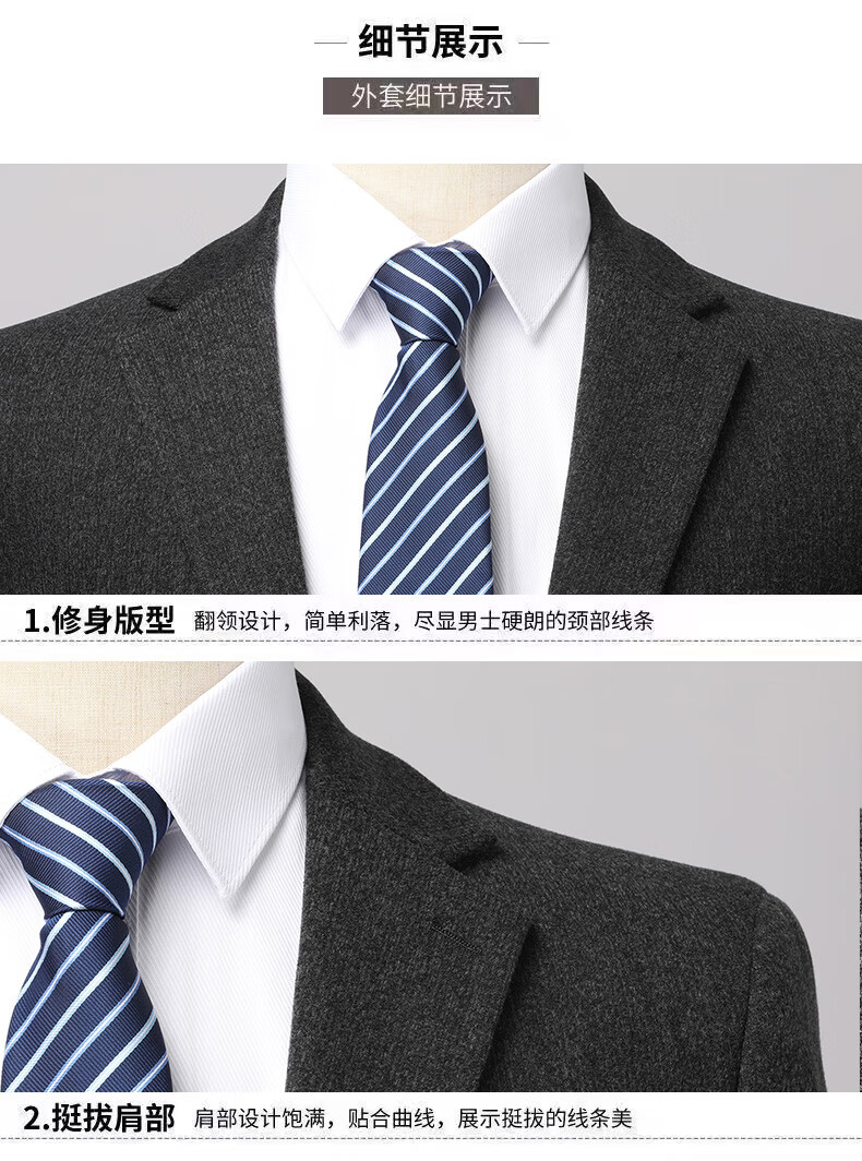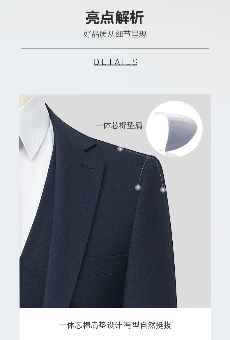 Pierre Cardin high-end 100% wool suit suit for men, no-iron business extension, groom's wedding dress, slim fit men's suit, men's 2391, no slit, two-piece jacket and trousers set 46 (165/84A)