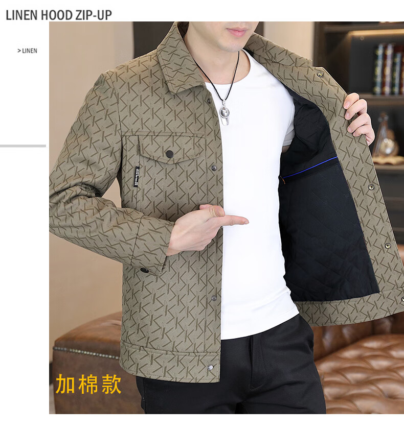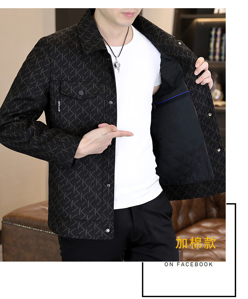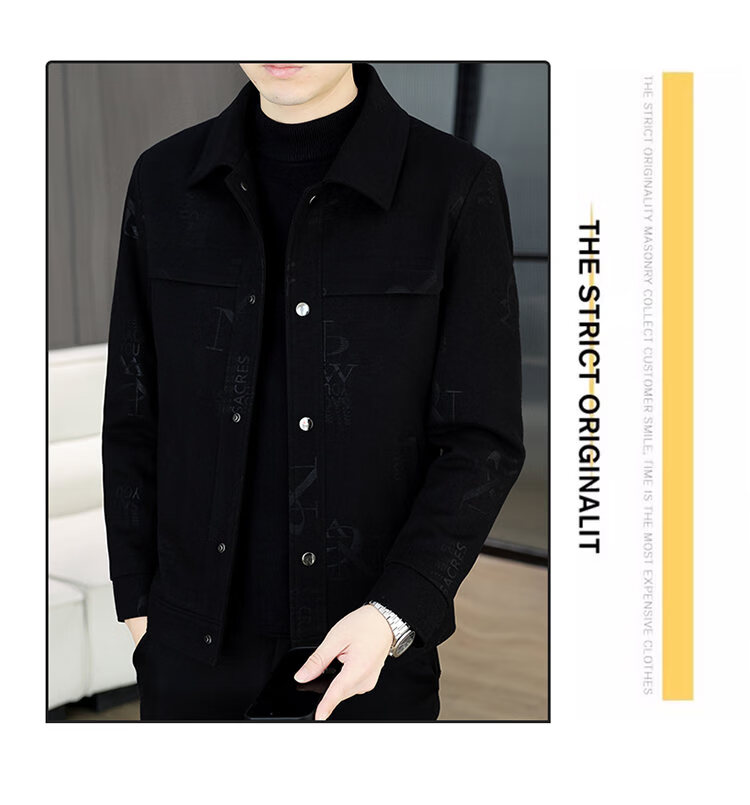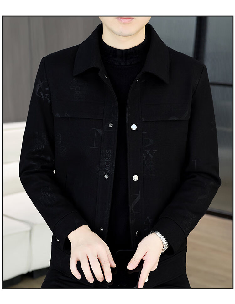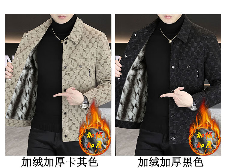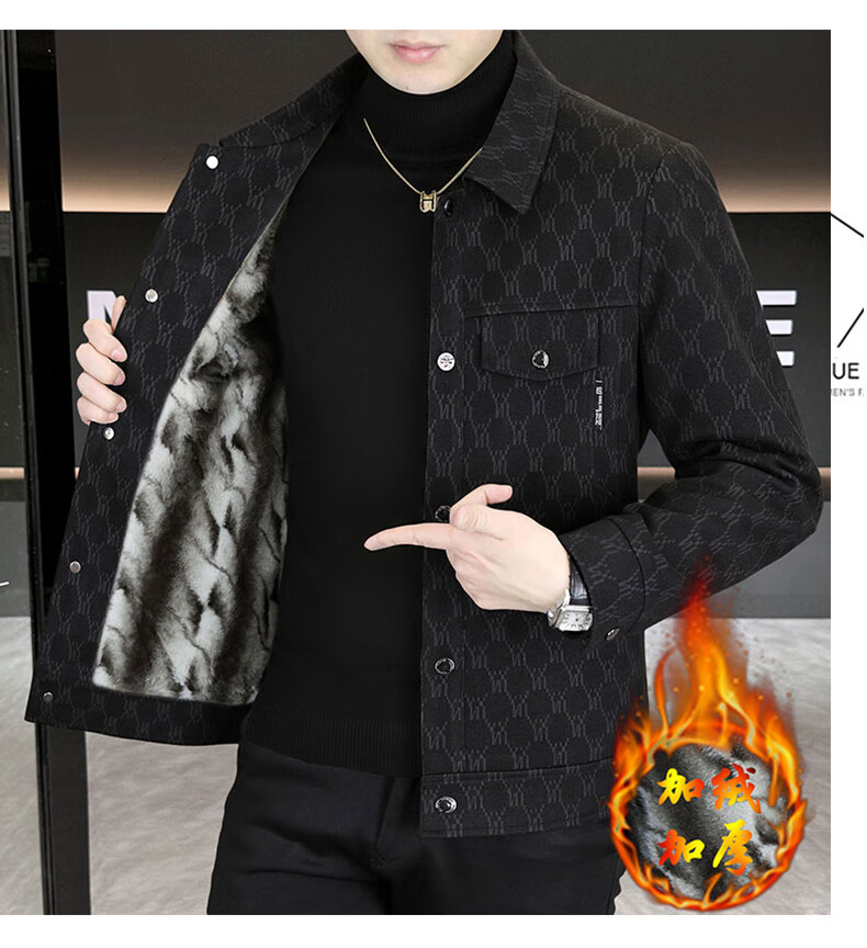 Куртка «Дятел», мужская утолщенная весенняя, осенняя и зимняя новая модная классическая хлопковая повседневная куртка, куртка большого размера, модный топ, черный бархатный стиль 2XL (135-150Jin Jin равен 0,5 кг)