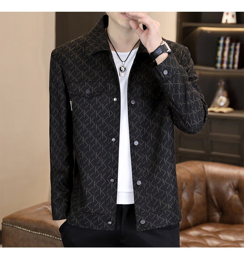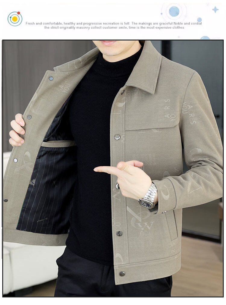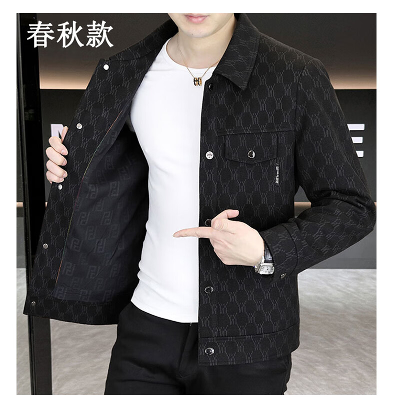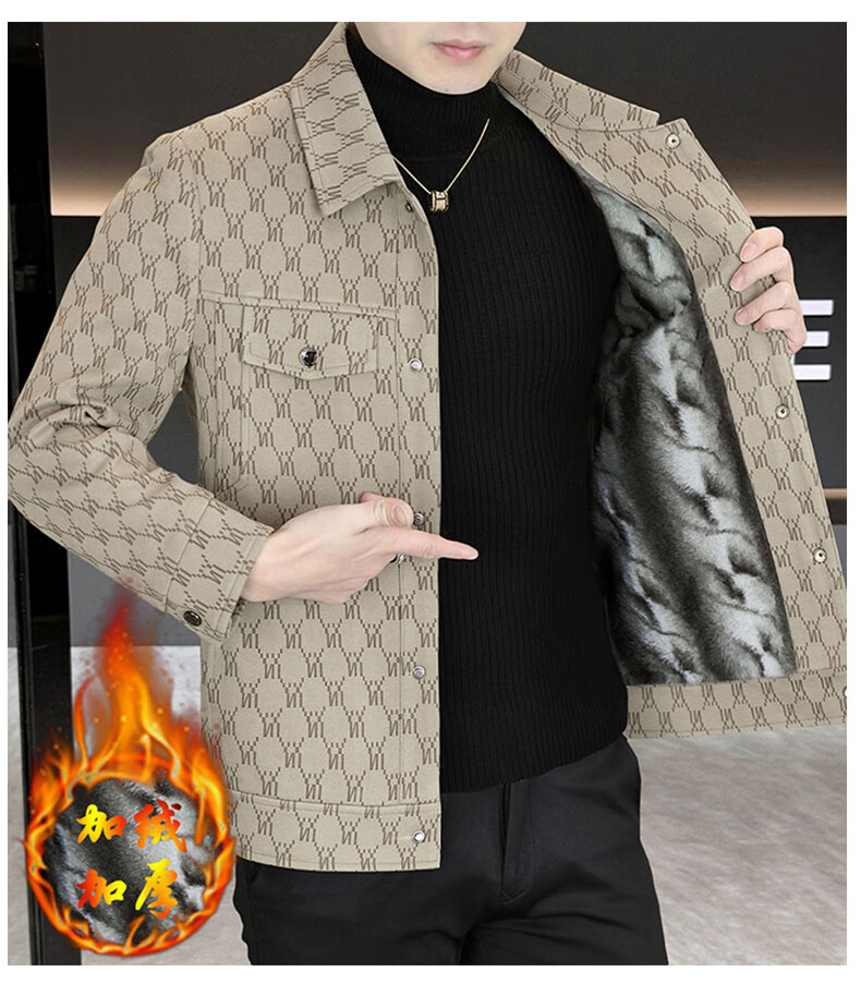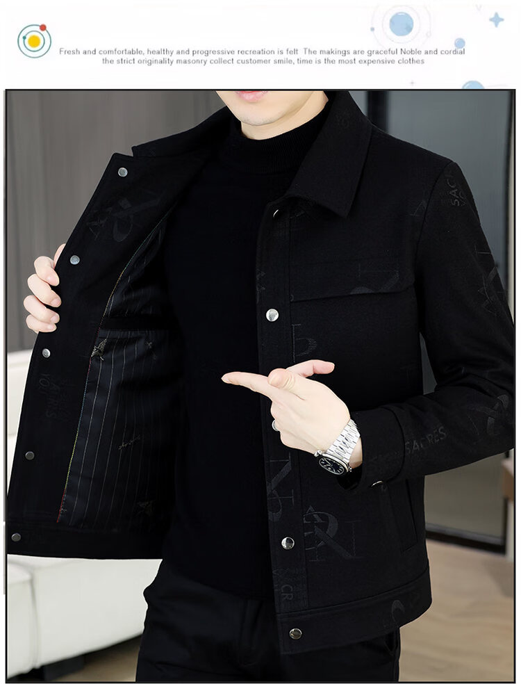 Куртка «Дятел», мужская утолщенная весенняя, осенняя и зимняя новая модная классическая хлопковая повседневная куртка, куртка большого размера, модный топ, черный бархатный стиль 2XL (135-150Jin Jin равен 0,5 кг)