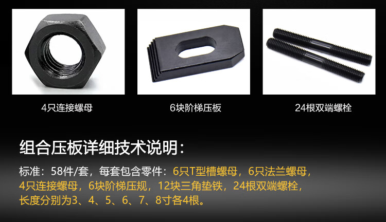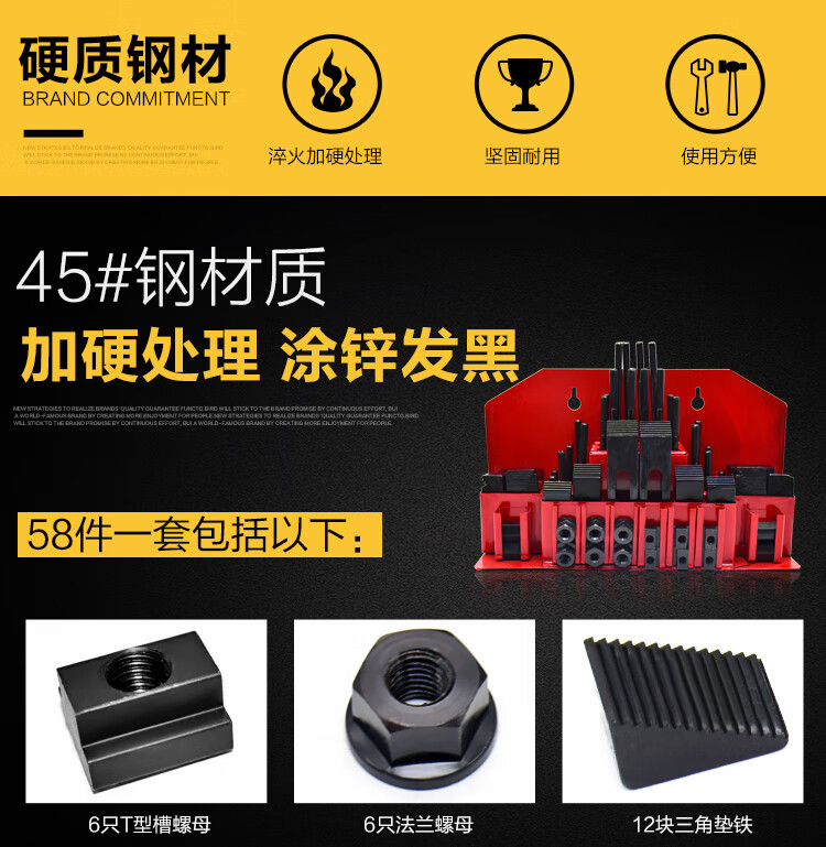 FHJQB hardened combination pressure plate 58-piece set CNC machining center milling machine accessories combination clamp M10 M12 M16 M12 set (carton) hardened 8.8 level