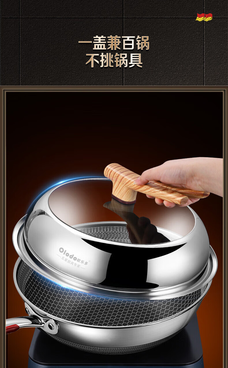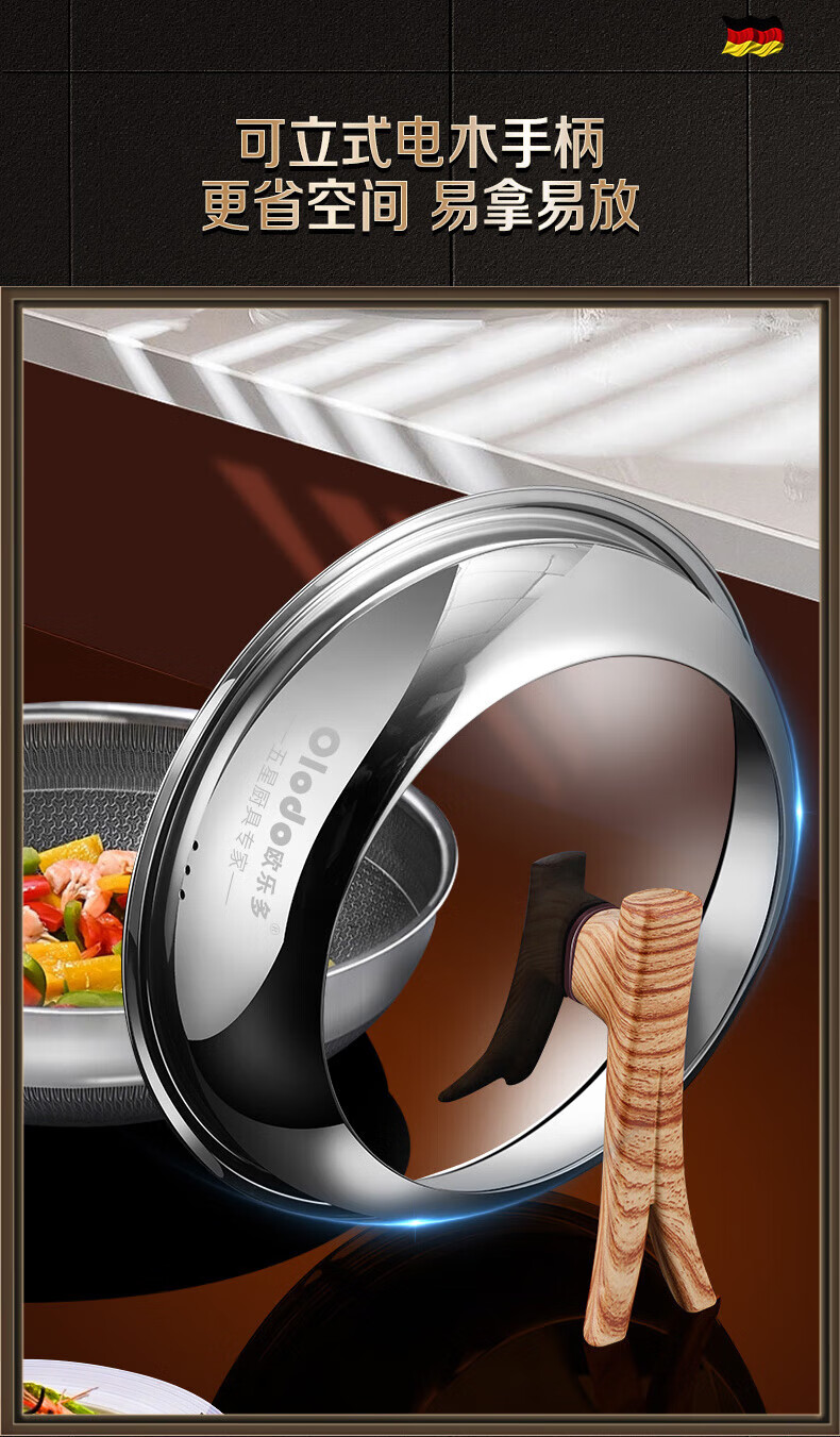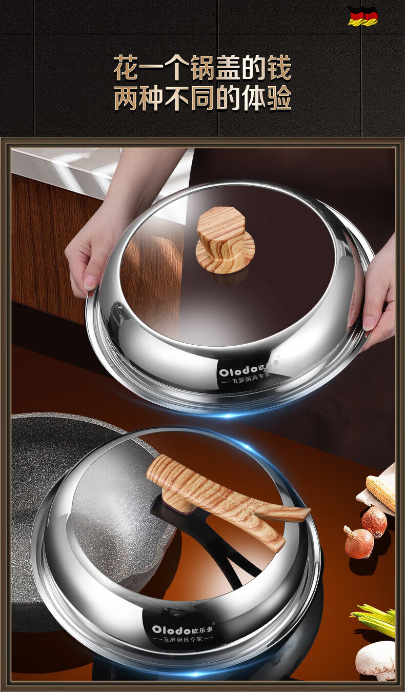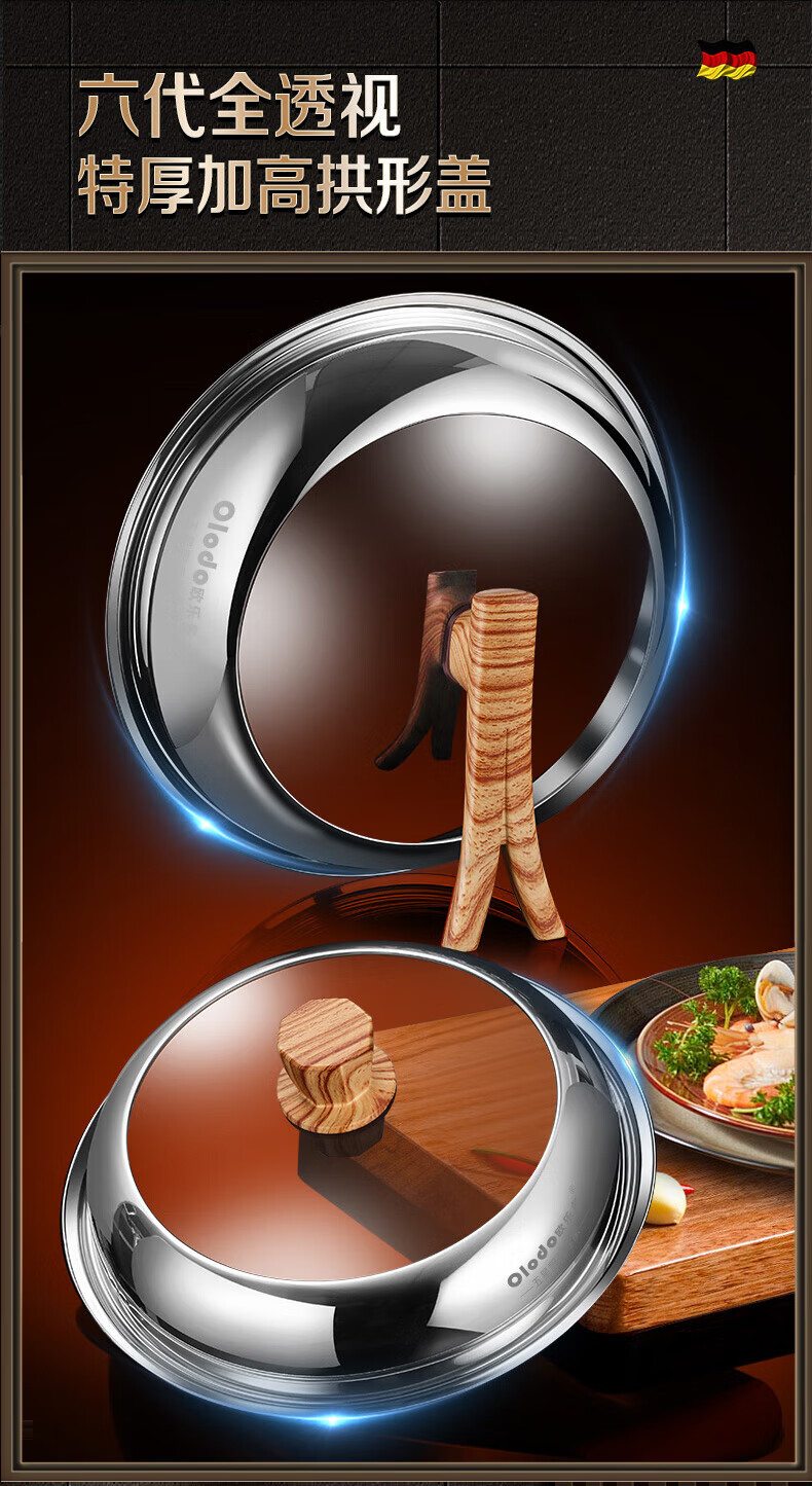 Olodo Germany's height-adjustable pot lid, universal large pot lid, thickened stainless steel wok lid, explosion-proof steamer lid, 30cm with 2 handles, adjustable lid