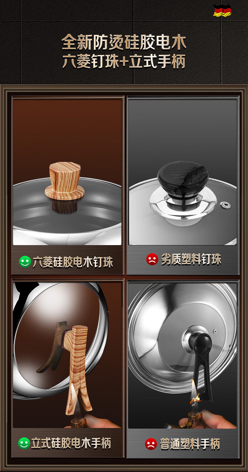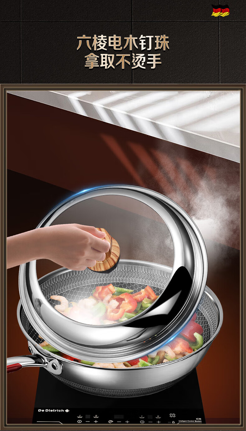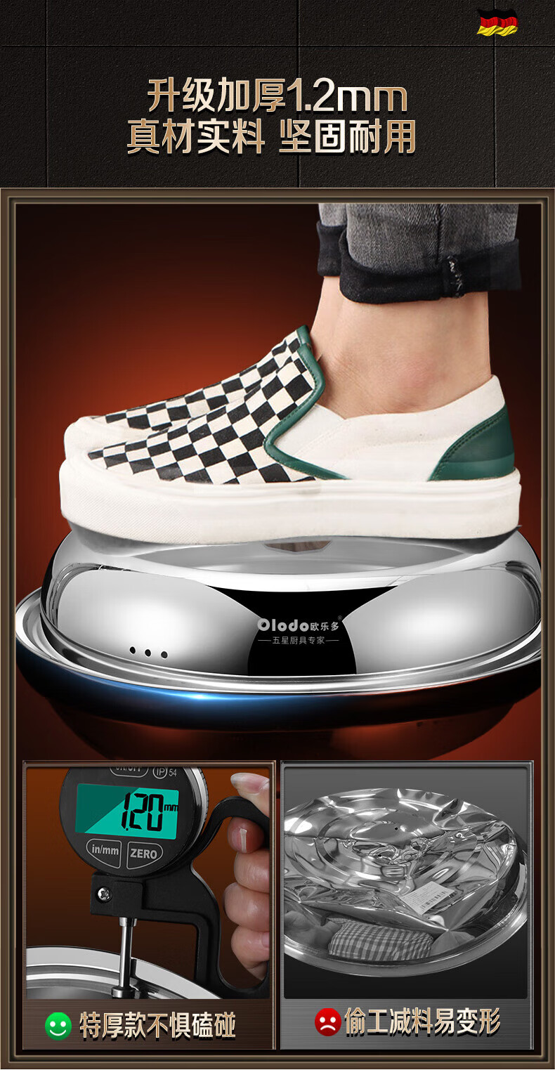 Olodo Germany's height-adjustable pot lid, universal large pot lid, thickened stainless steel wok lid, explosion-proof steamer lid, 30cm with 2 handles, adjustable lid