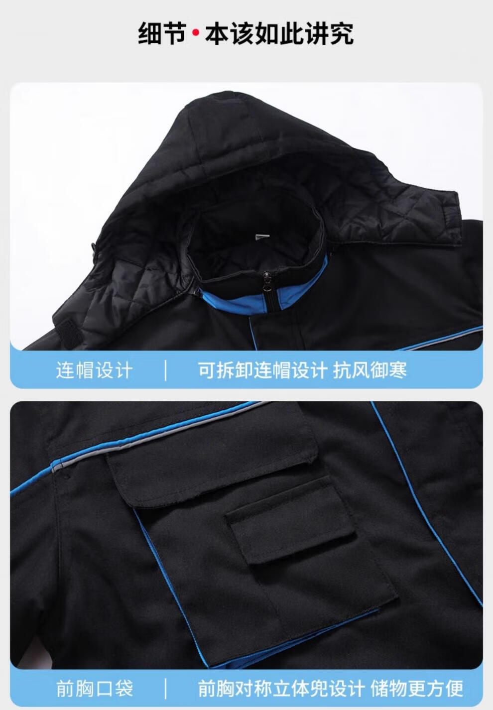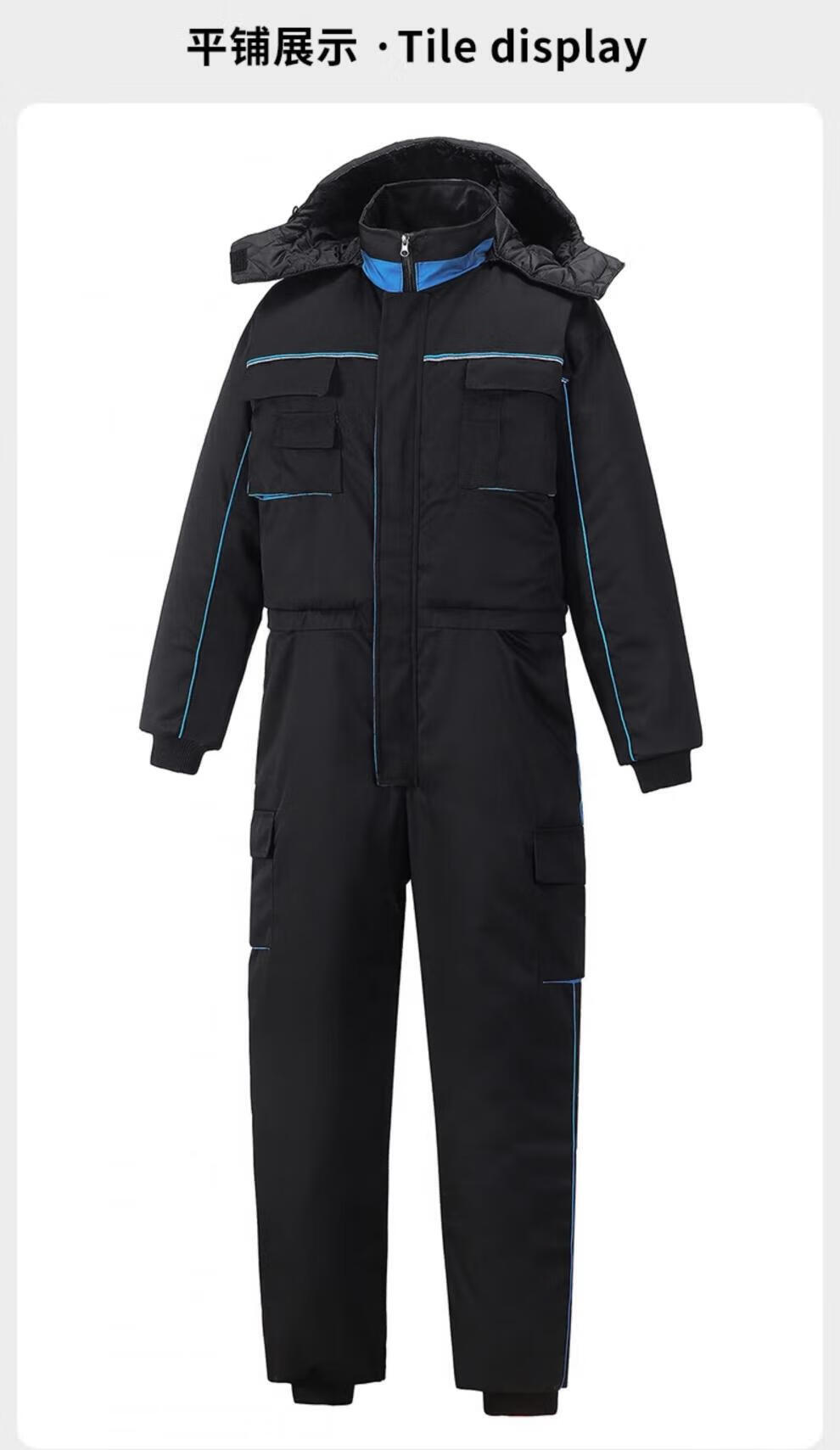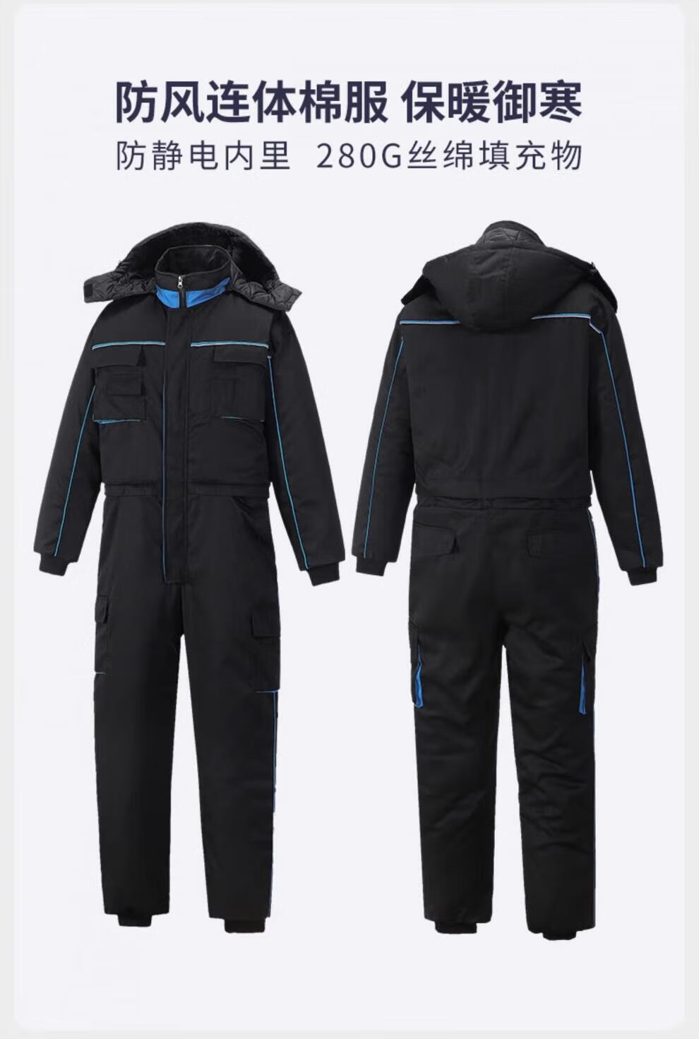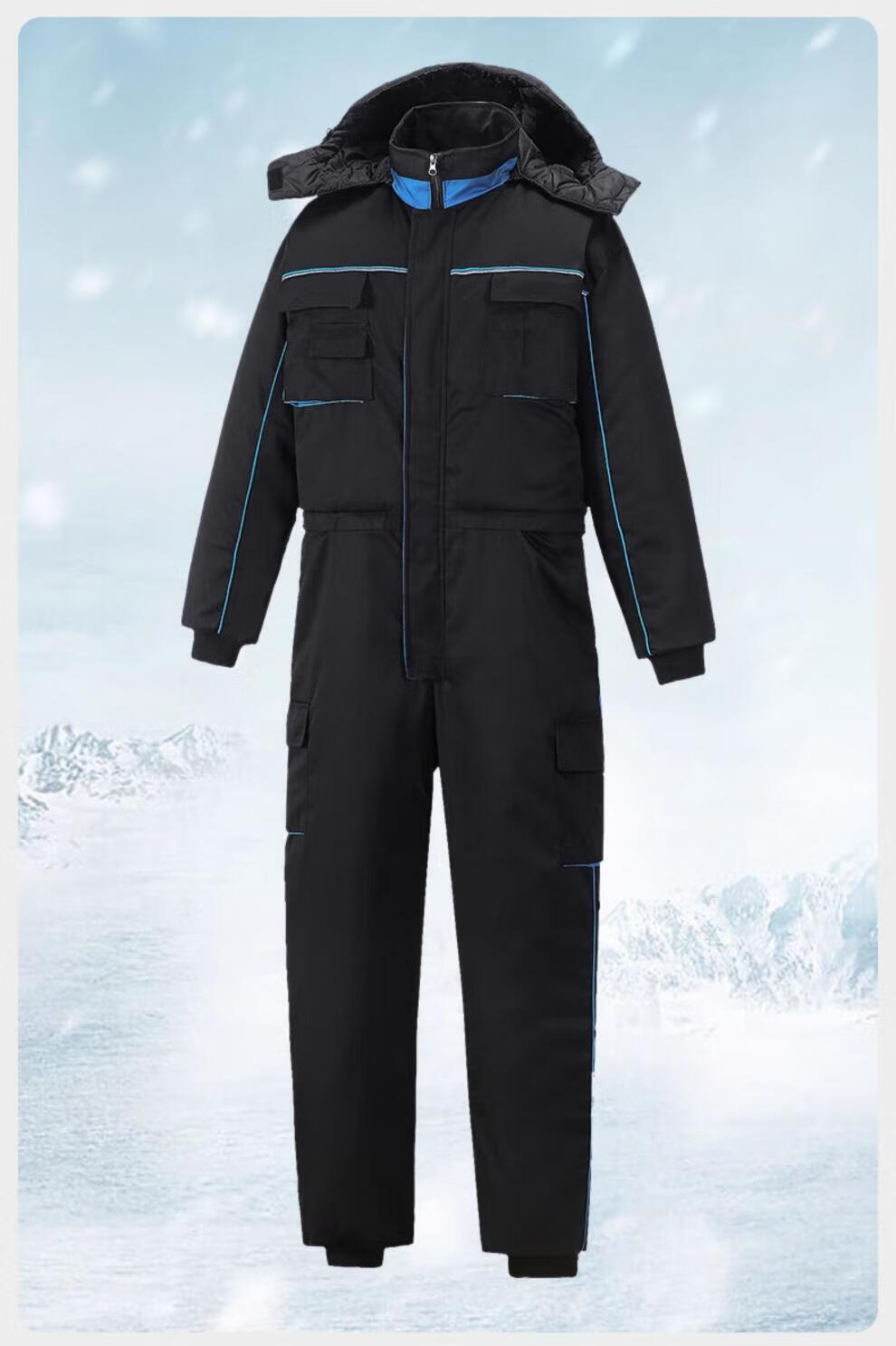 AETEL Cold Storage Workwear Suit Men's One-piece Cotton Clothes Winter Outdoor Night Fishing Cold-proof Cotton Clothes Thickened Fishing Cotton Jacket Workwear Black Jumpsuit XL 175