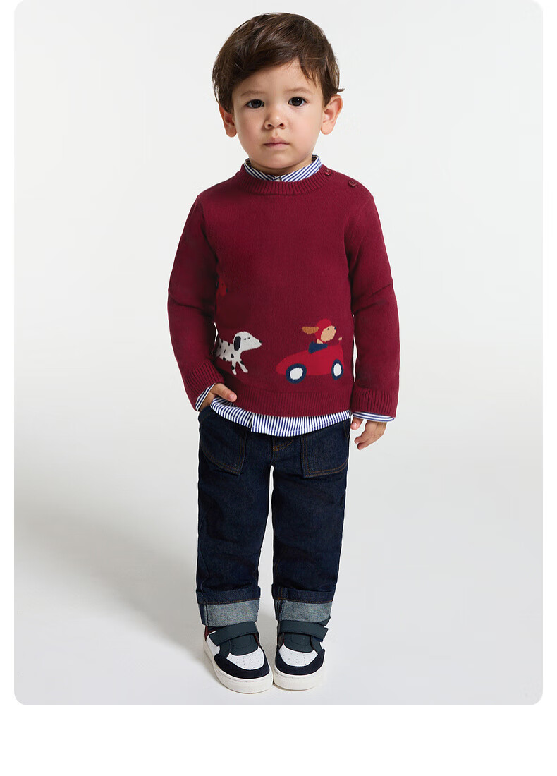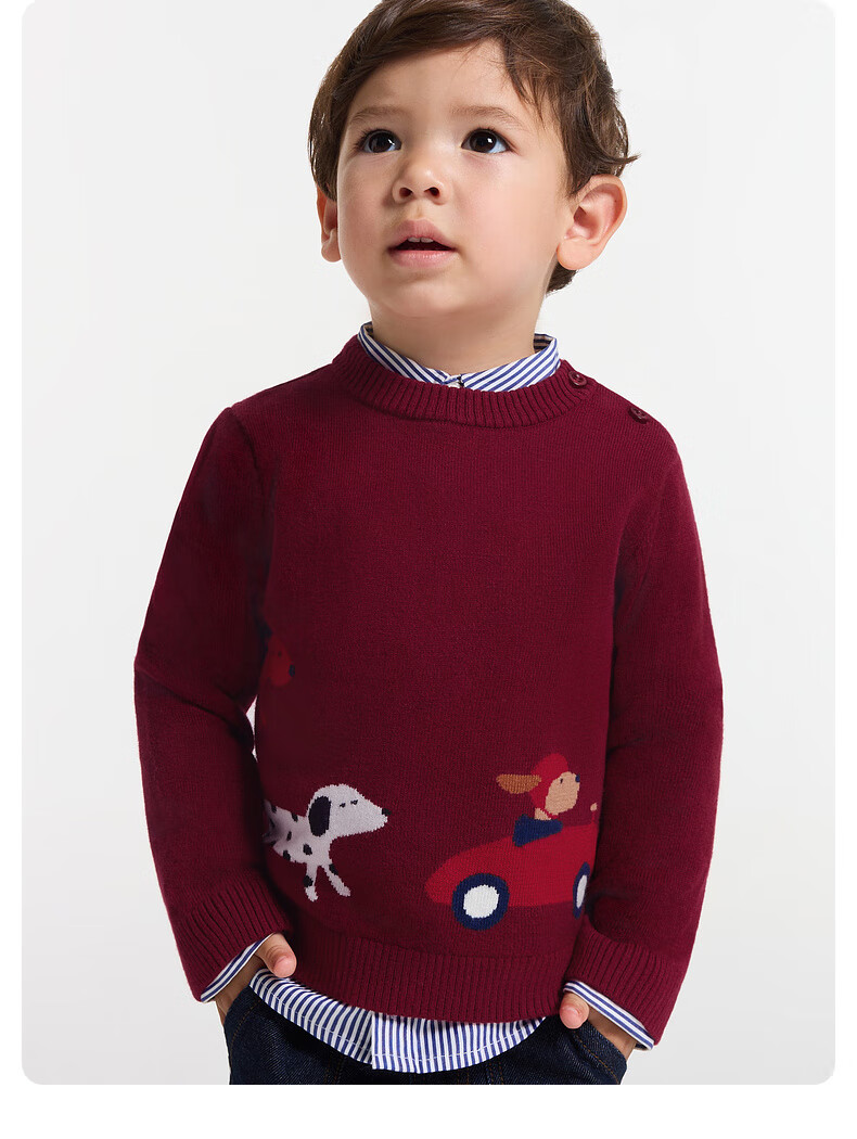 JACADI boys' sweater contains 20% wool 2025 winter new product warm base versatile 2044354 red 573 73 /12M