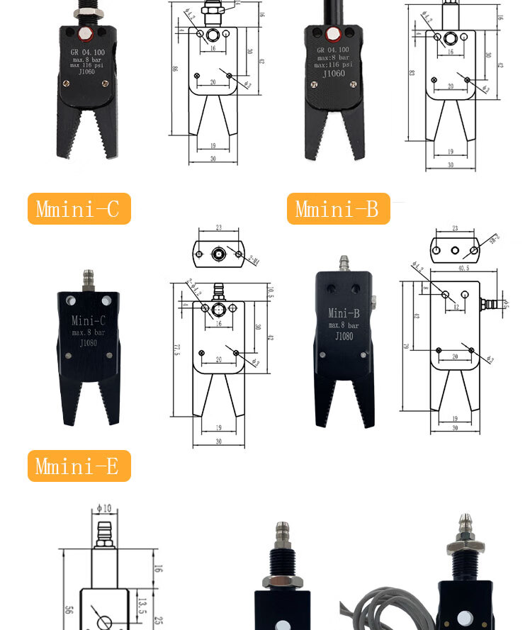 Robot clamp accessories MINI external tooth clamp injection molding machine mini ABCE pneumatic nozzle clamp J10601080 clamp silicone sleeve A/B/C style