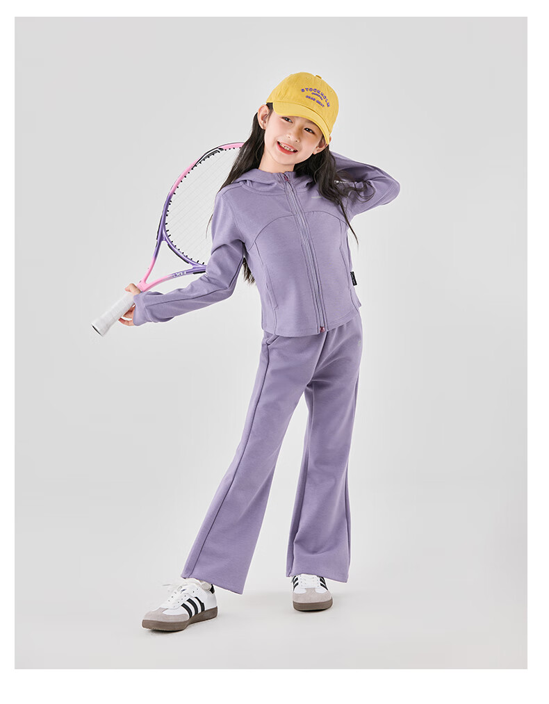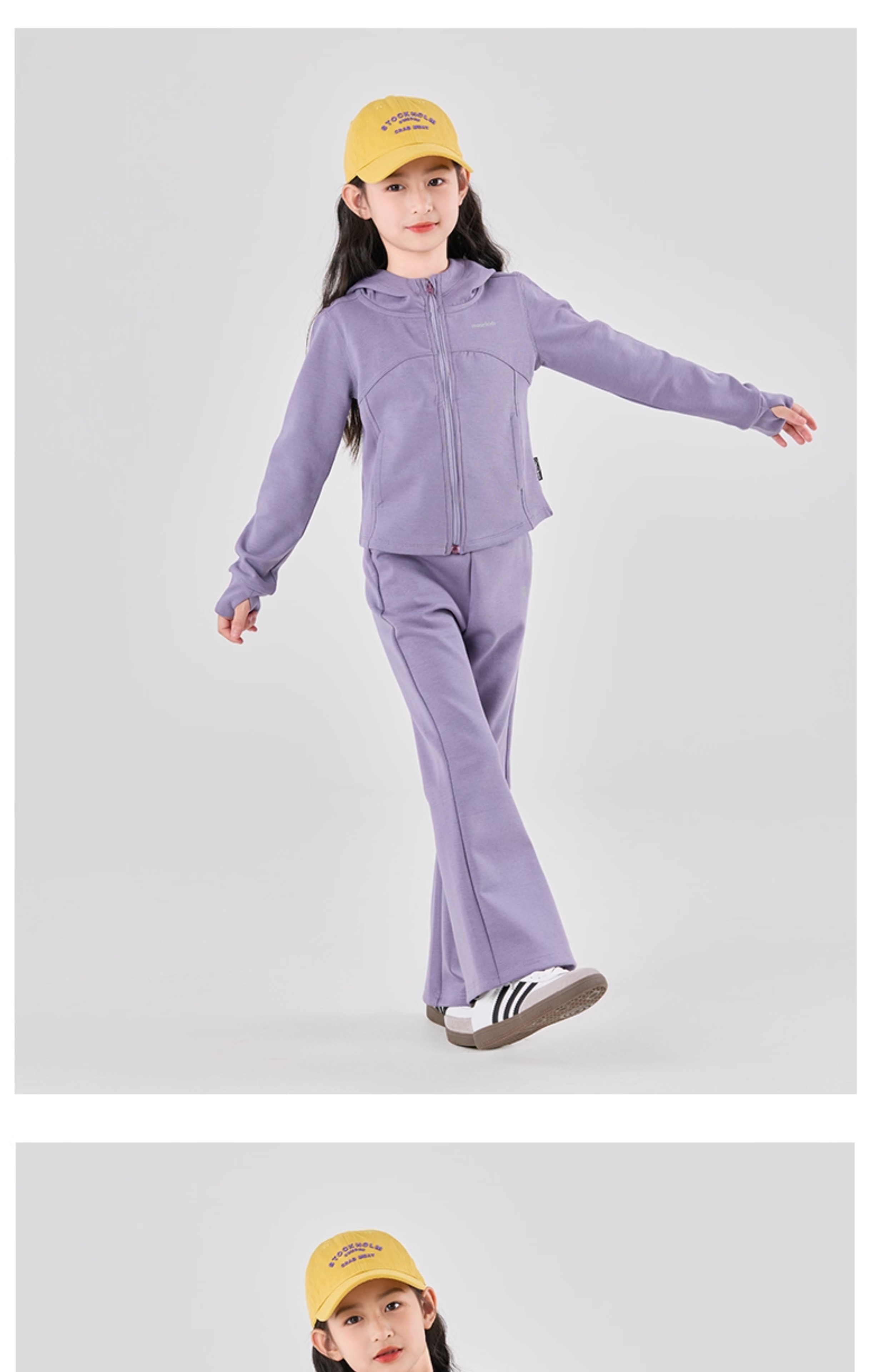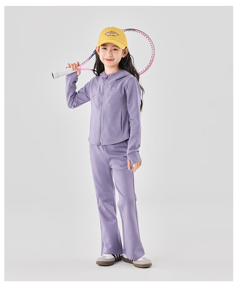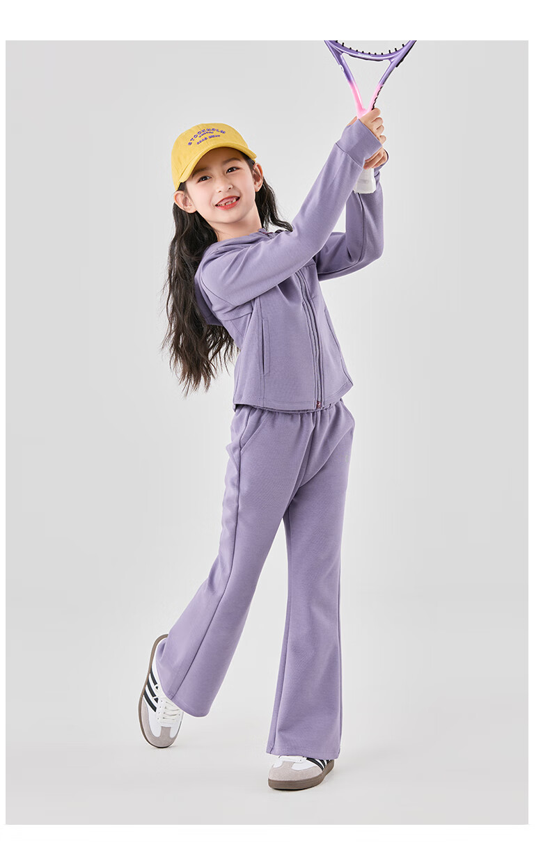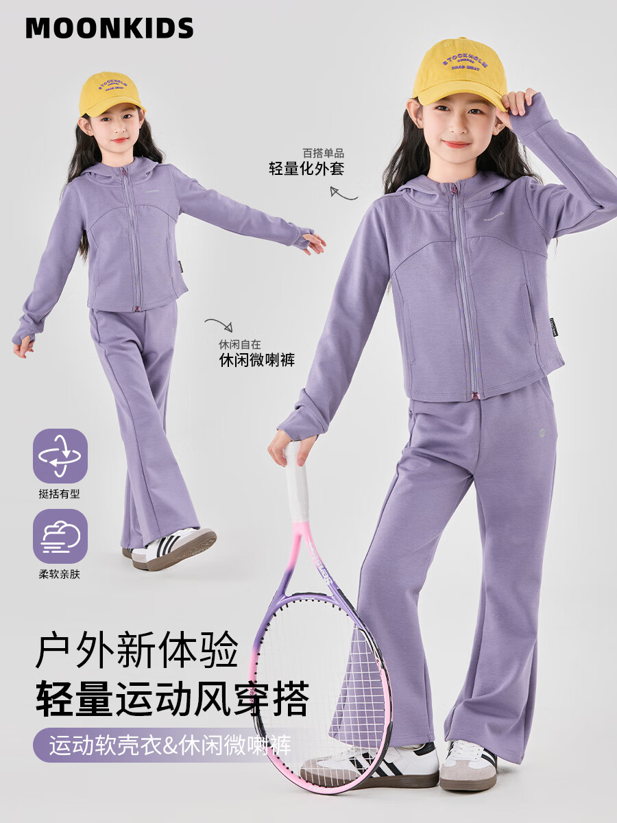 Moonkids children's clothing girls' sportswear set 2025 early autumn new children's soft shell sweatshirt jacket pants casual two-piece set plus fleece two-piece set 10153 purple sportswear + 27003 purple bell-bottom pants 170 cm