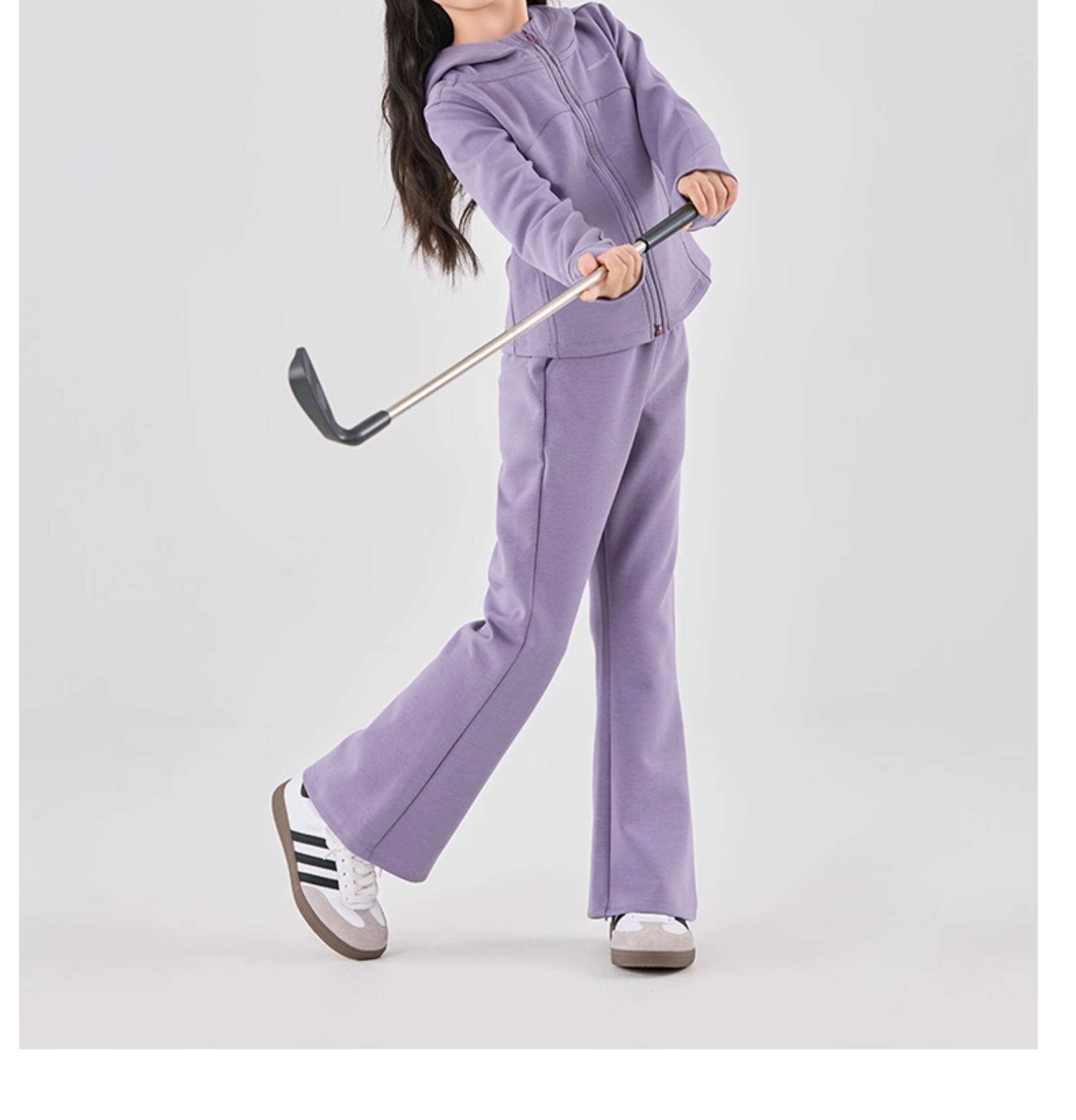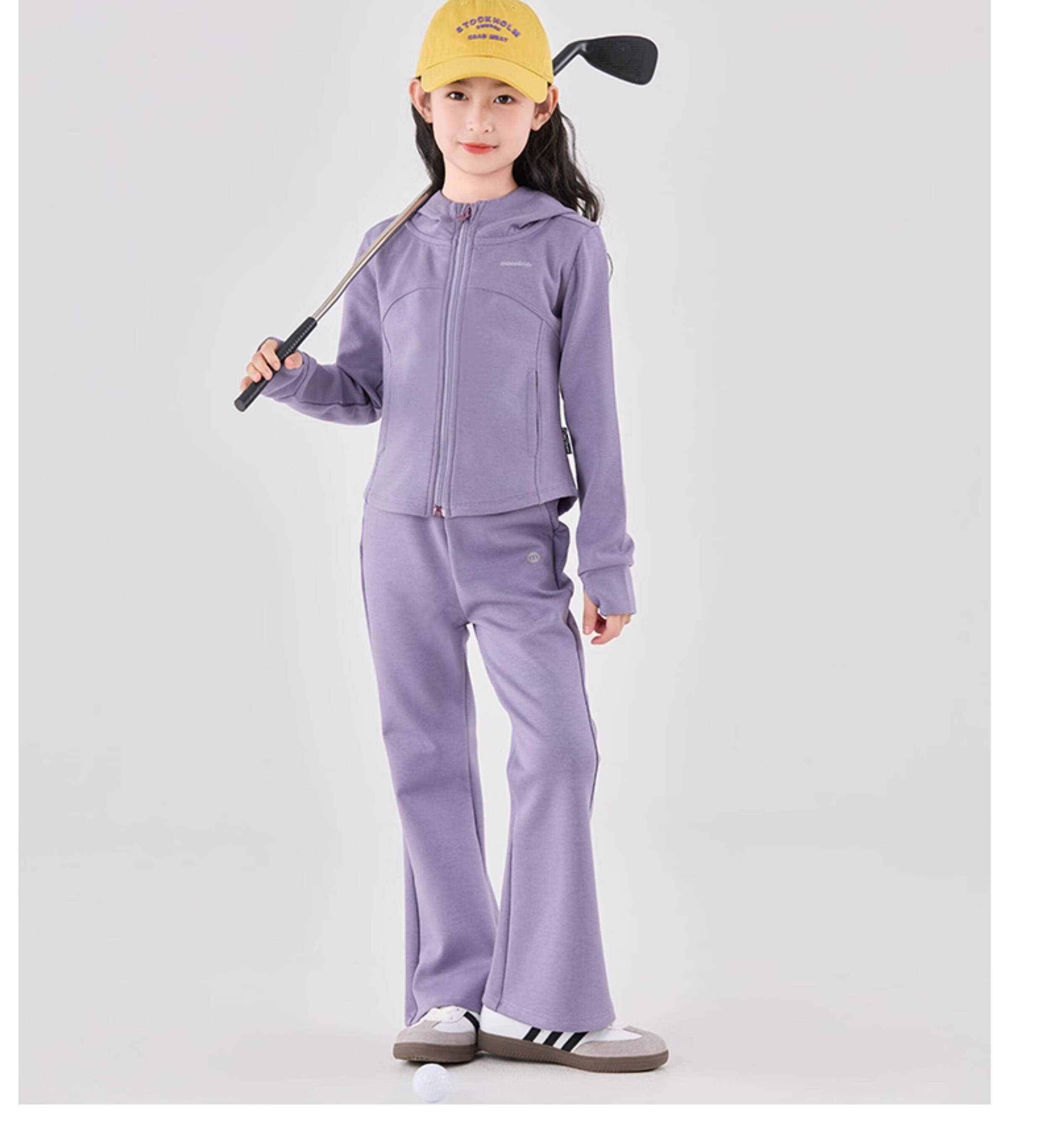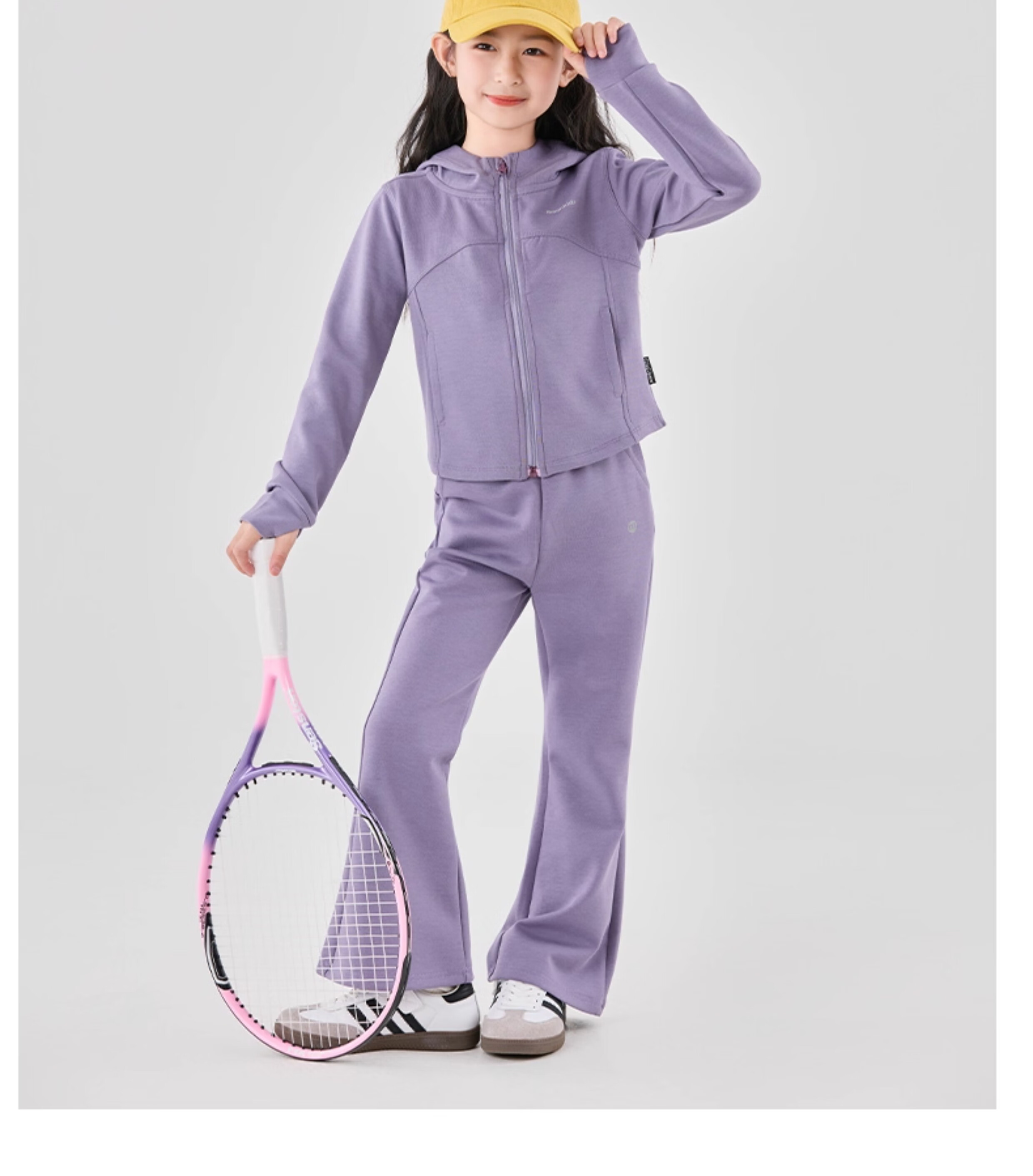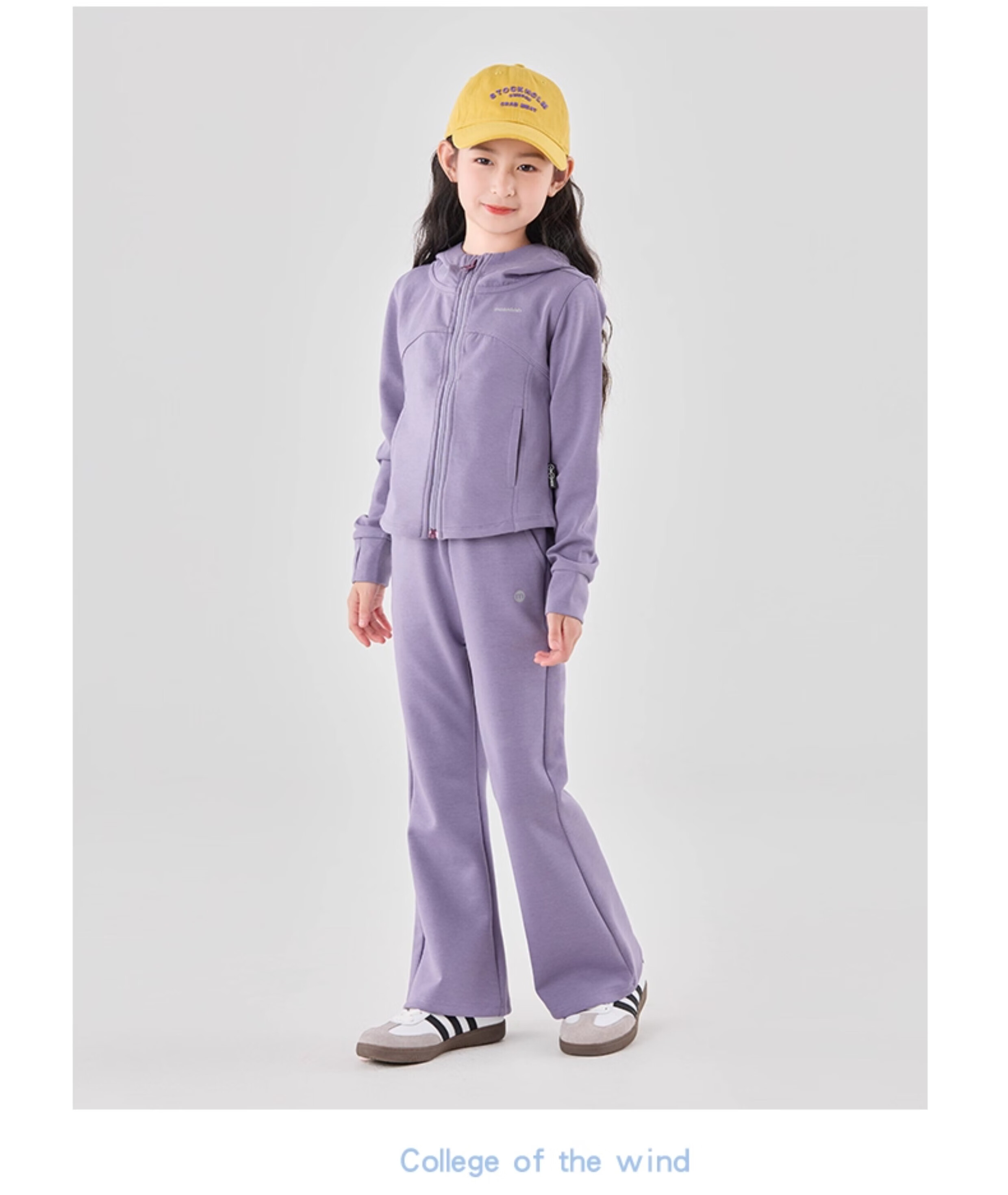 Moonkids children's clothing girls' sportswear set 2025 early autumn new children's soft shell sweatshirt jacket pants casual two-piece set plus fleece two-piece set 10153 purple sportswear + 27003 purple bell-bottom pants 170 cm