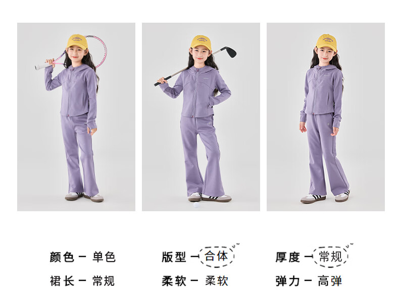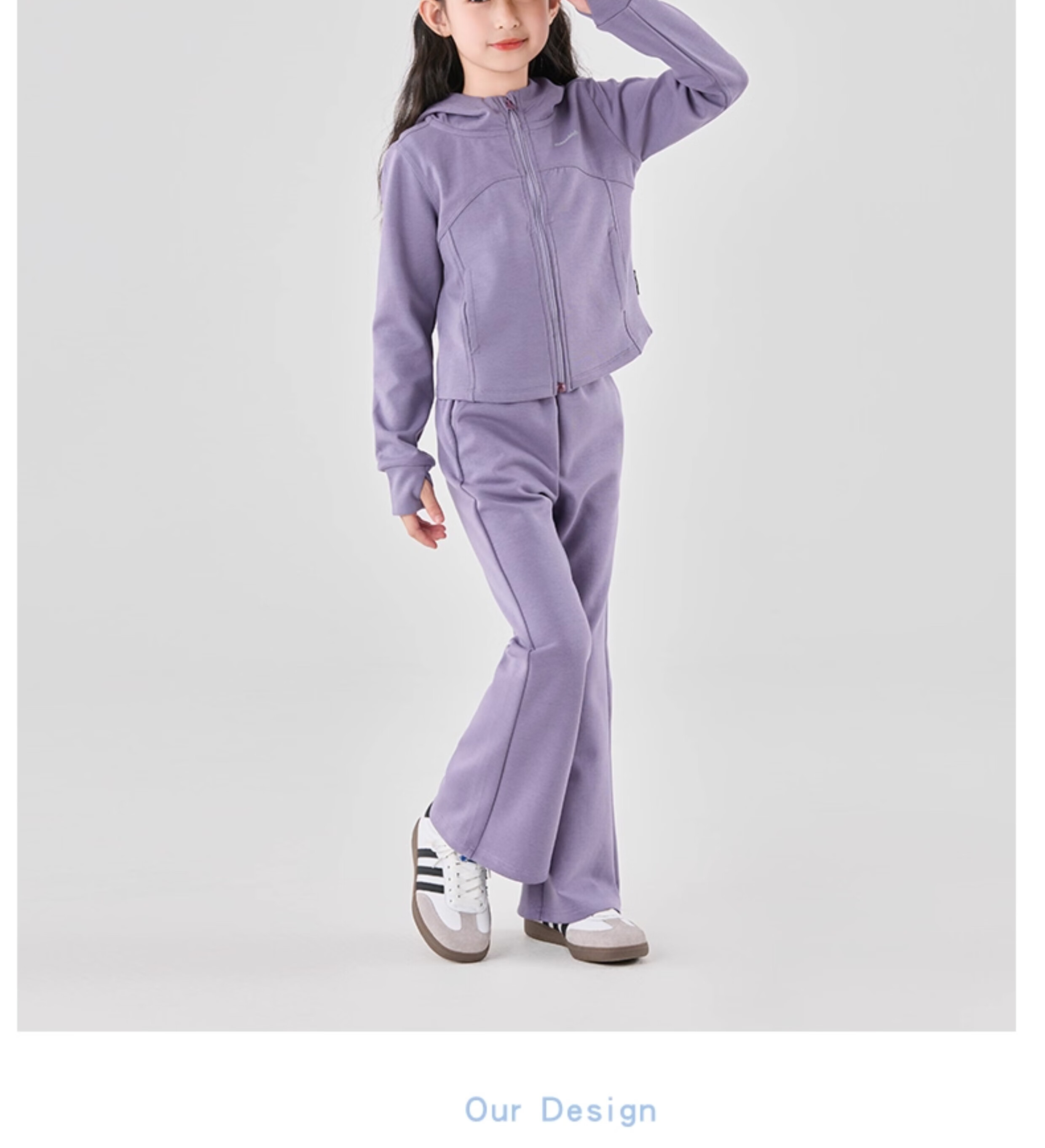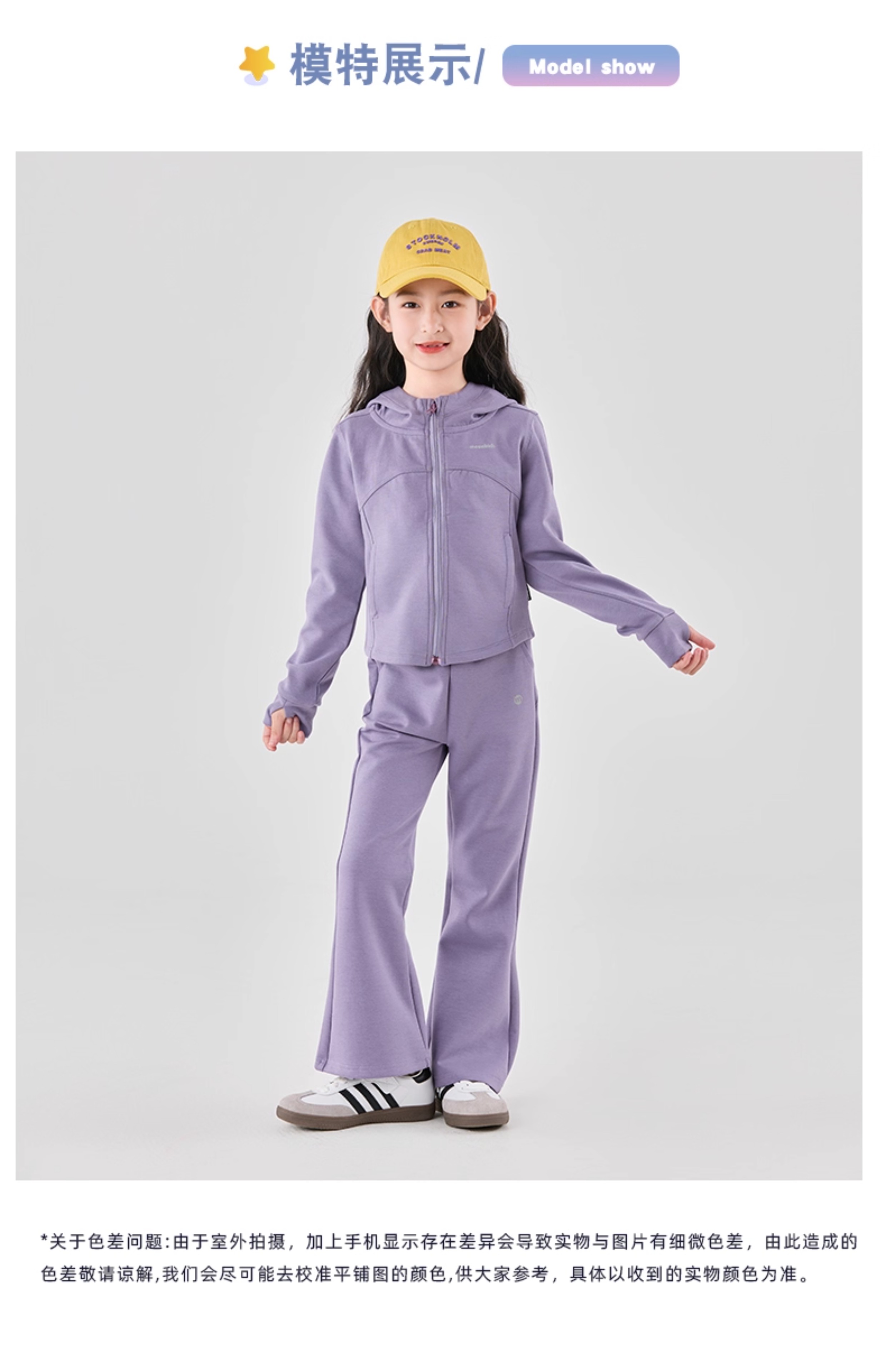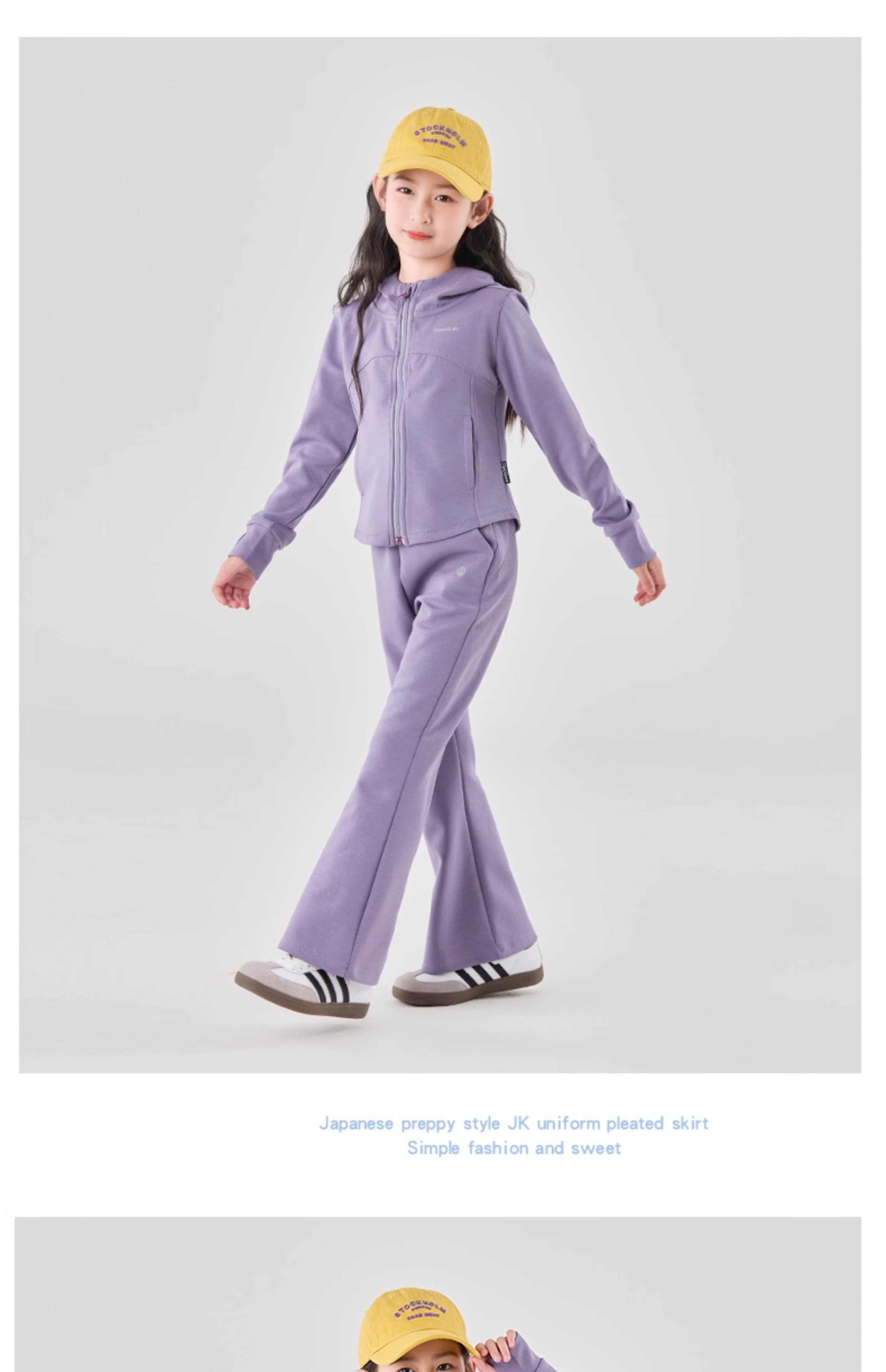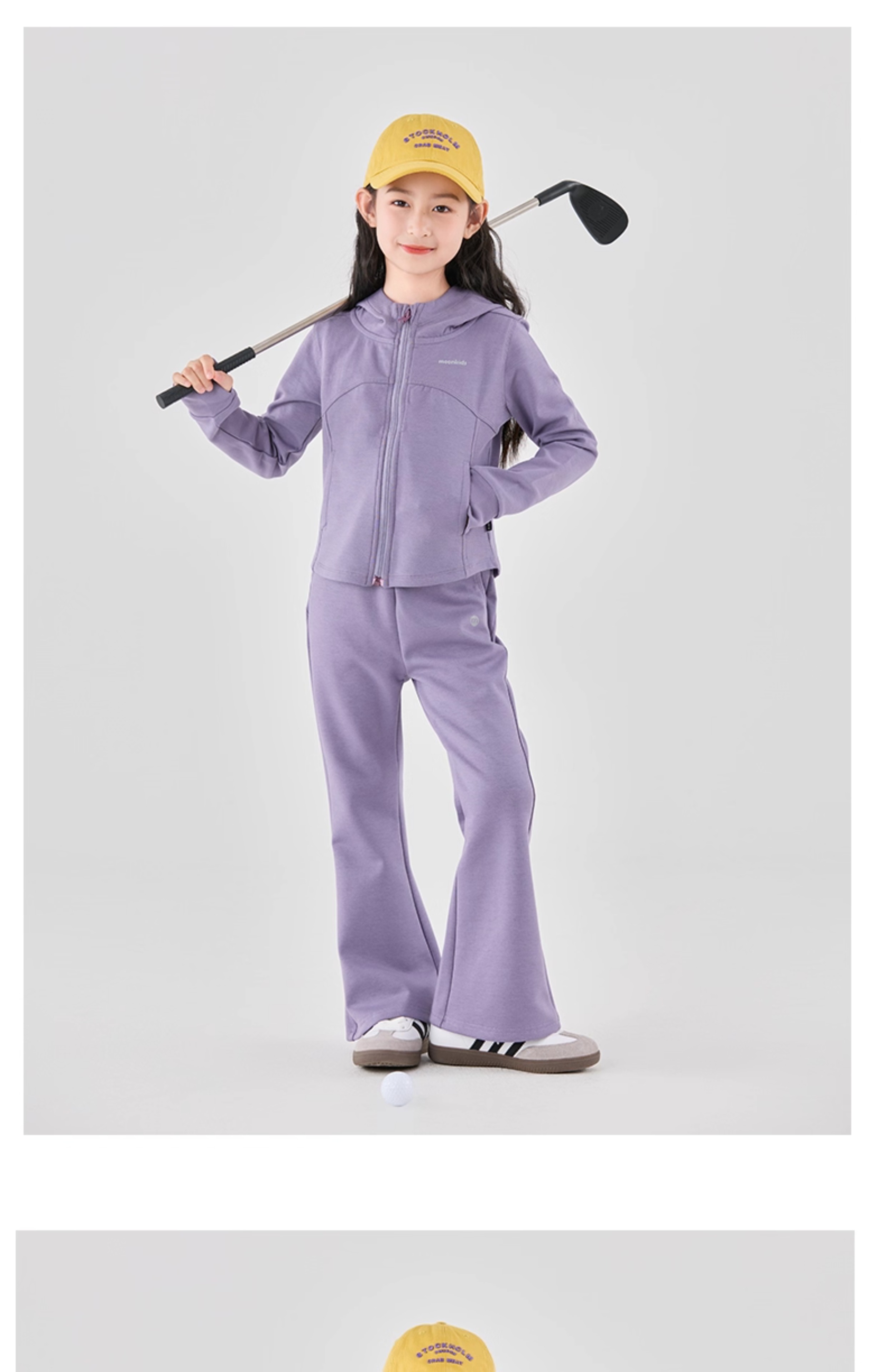 Moonkids children's clothing girls' sportswear set 2025 early autumn new children's soft shell sweatshirt jacket pants casual two-piece set plus fleece two-piece set 10153 purple sportswear + 27003 purple bell-bottom pants 170 cm