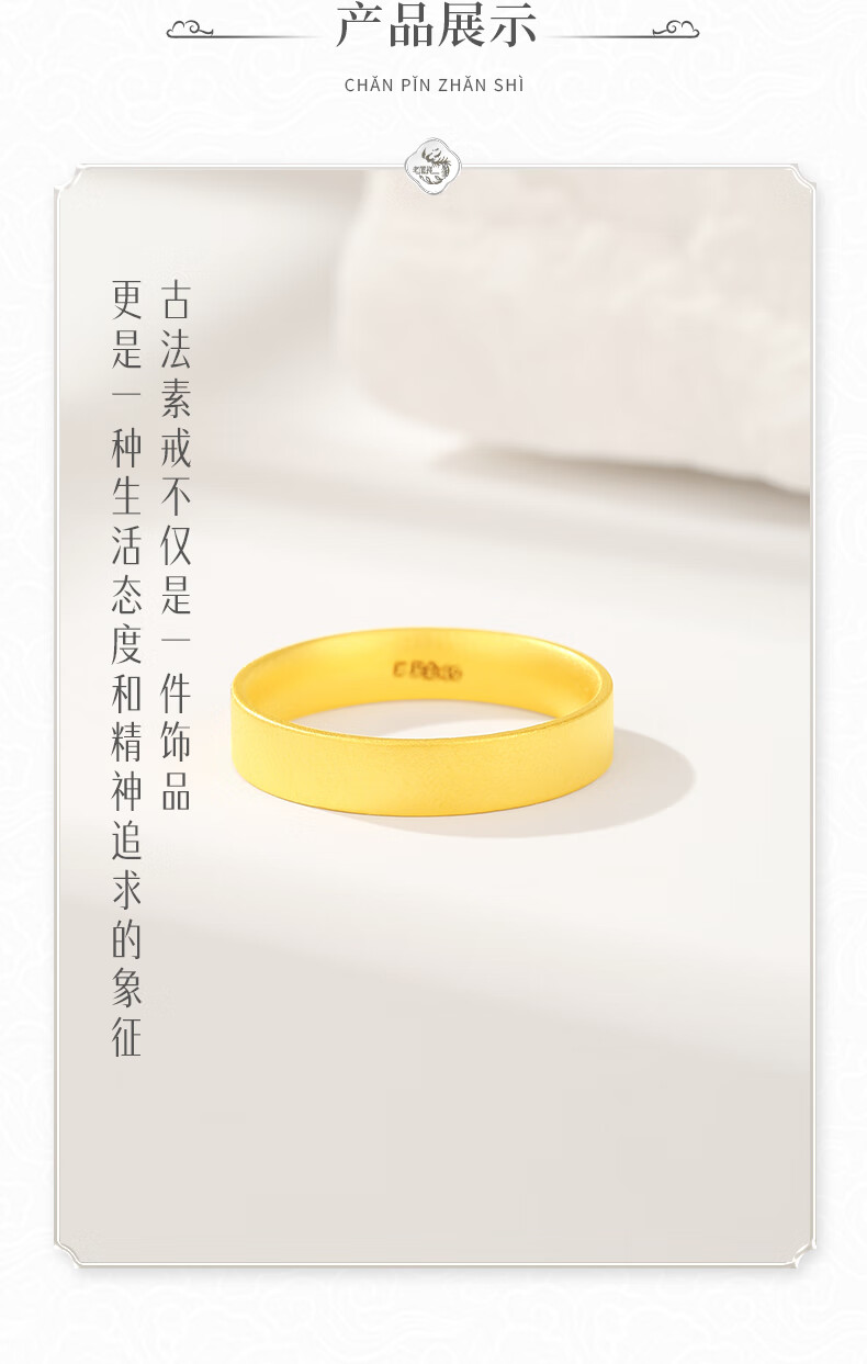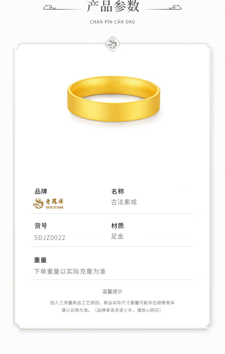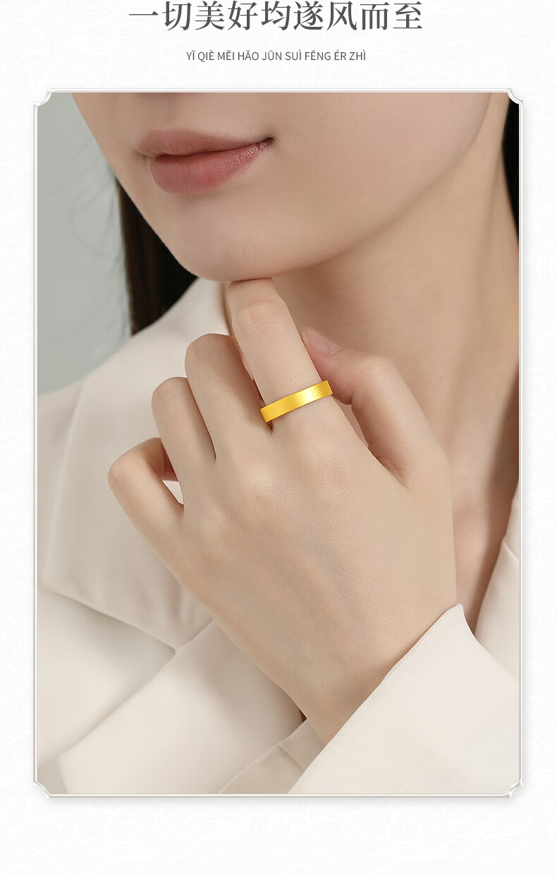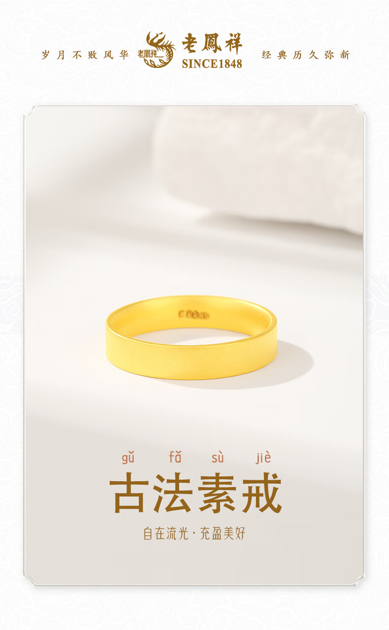 Lao Fengxiang gold ring, solid gold ancient method plain ring ring for women, pure gold hand jewelry, birthday and anniversary gift for wife and girlfriend, pure gold ancient method plain ring ring, gold weight is about 1.4g, collection gift box, ring mouth * 12