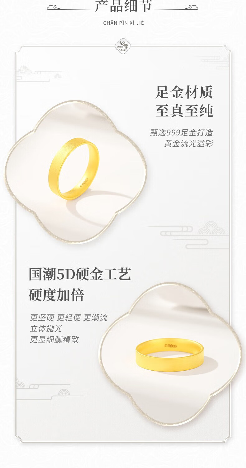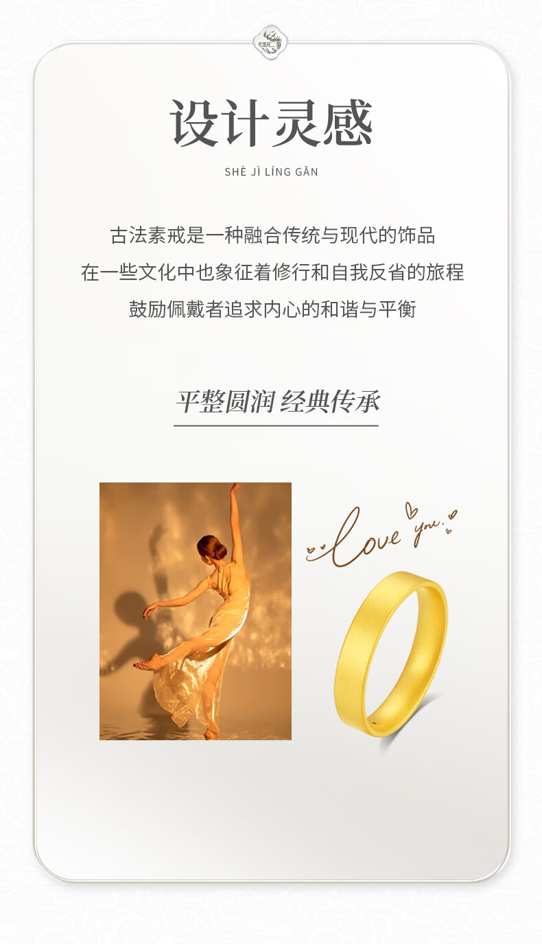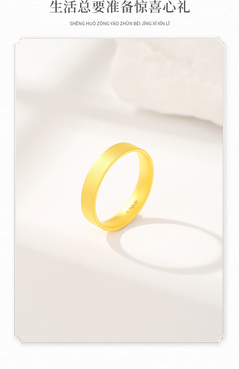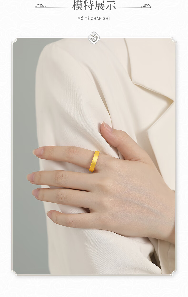 Lao Fengxiang gold ring, solid gold ancient method plain ring ring for women, pure gold hand jewelry, birthday and anniversary gift for wife and girlfriend, pure gold ancient method plain ring ring, gold weight is about 1.4g, collection gift box, ring mouth * 12