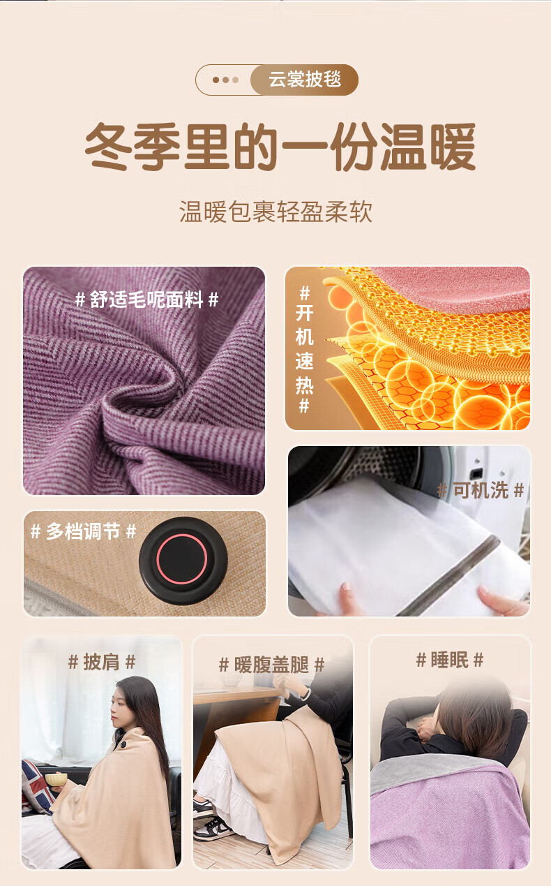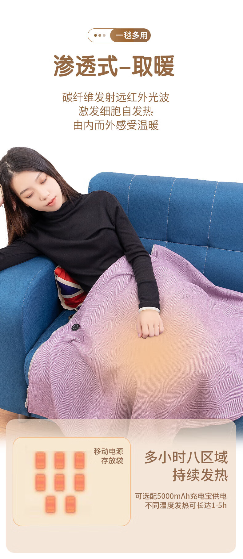 That thing graphene electric heating shawl blanket heating warm-up blanket USB powered heating blanket leg warmer hand warmer artifact washable outdoor household artifact single office nap blanket eight-zone heating anti-leakage electricity skin-friendly cloud velvet without power bank