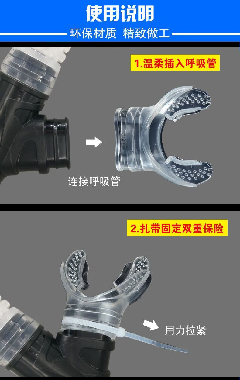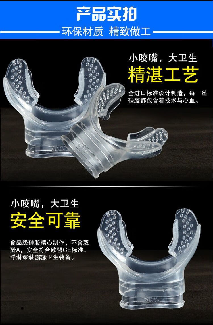 Gu Jianmu swimming mouthpiece, snorkeling and deep diving universal connection breathing tube silicone mouthpiece diving earplugs and nose clip set diving disposable mouthpiece-5 pieces transparent