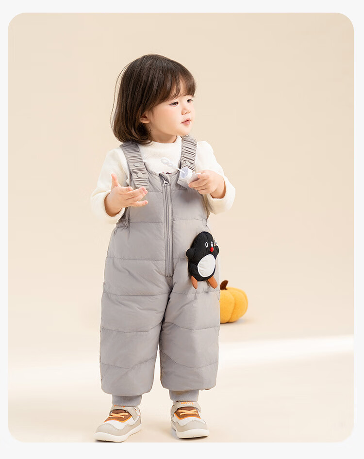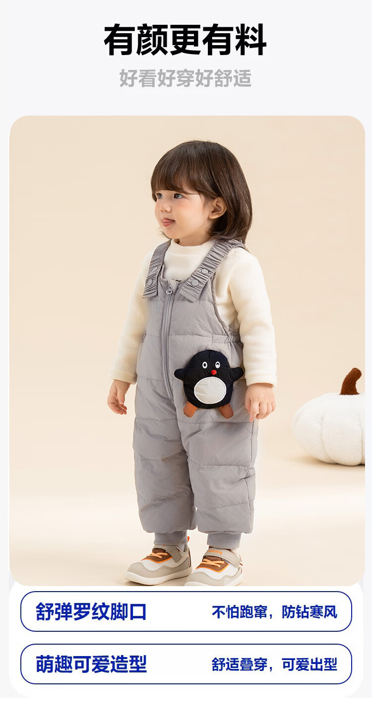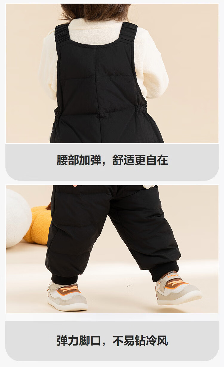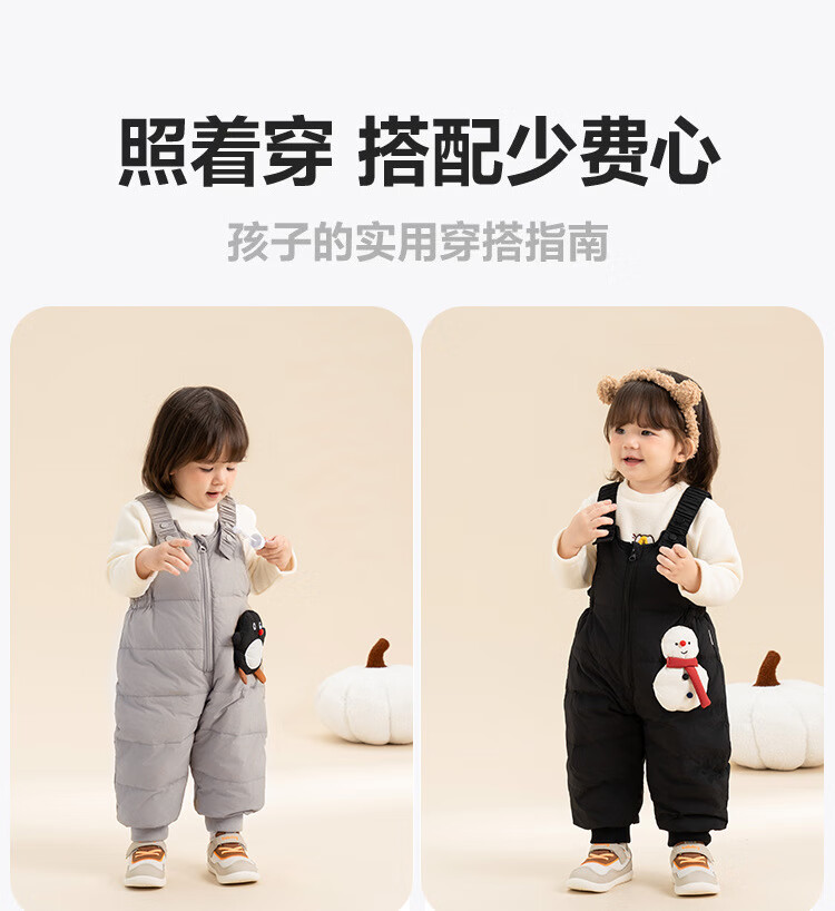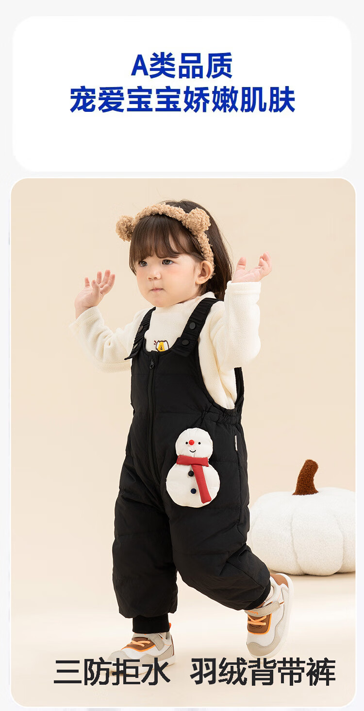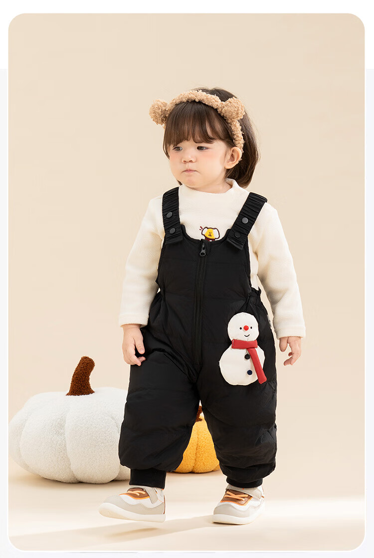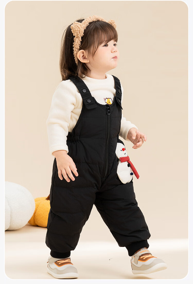 G.duck baby down overalls for boys and girls in winter, stylish outer ski pants, children's belly protection, thickened warm long pants, snowman black 100, recommended height 96-105cm, age 2-3 years old