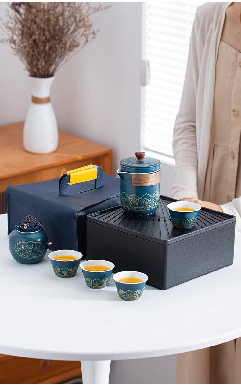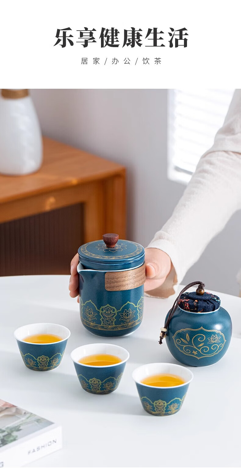 Outdoor travel tea set household one pot three cups portable storage bag ceramic quick cup teapot teacup Yabai one household three cups with bag No Specifications