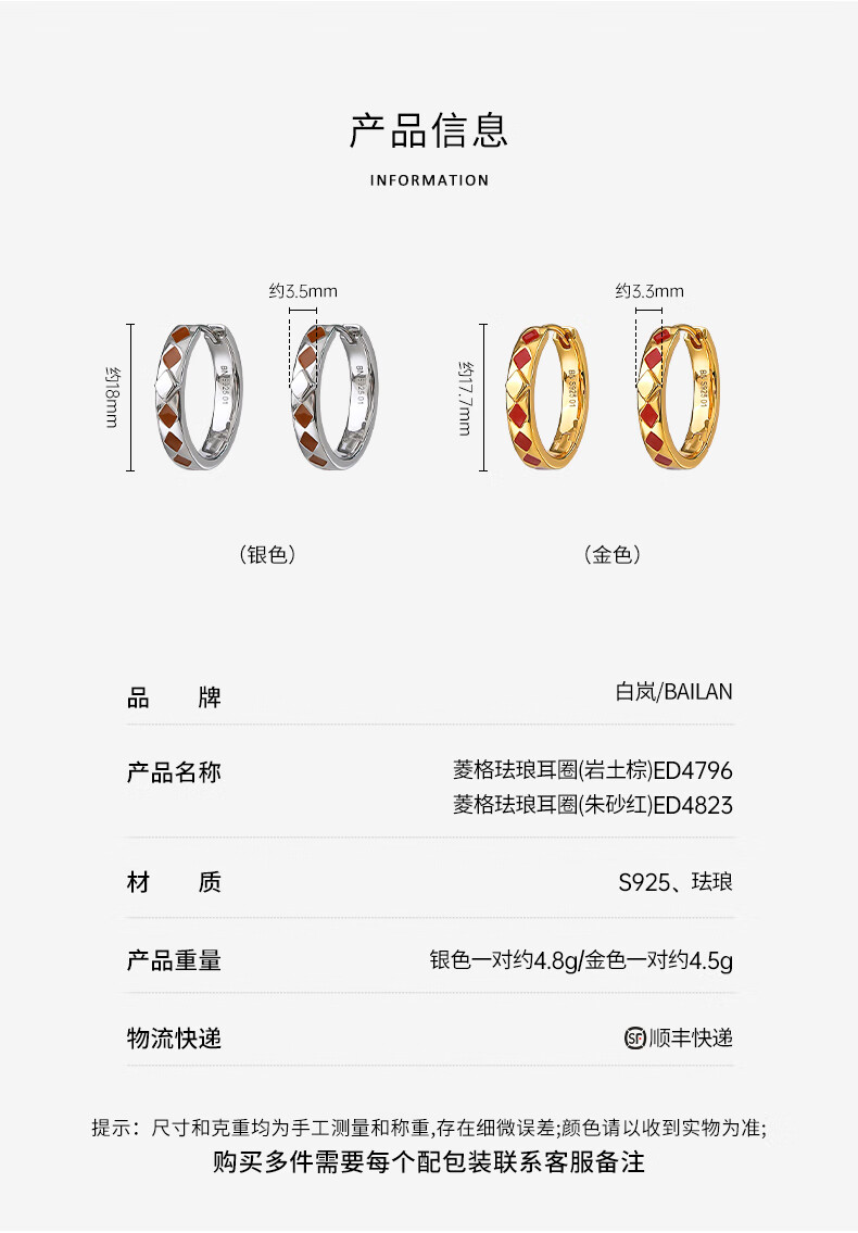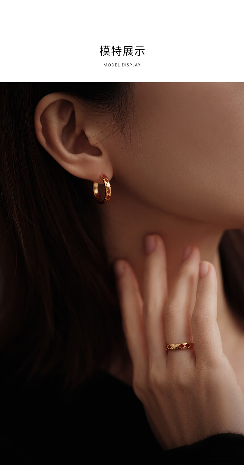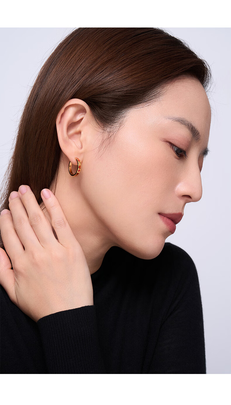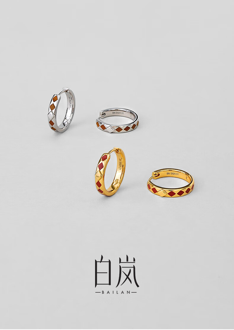 Bai Lan New on Double 11 Diamond Enamel Earrings 925 Silver Earrings Feminine Birthday Gift for Wife Diamond Enamel Earrings (Cinnabar Red)
