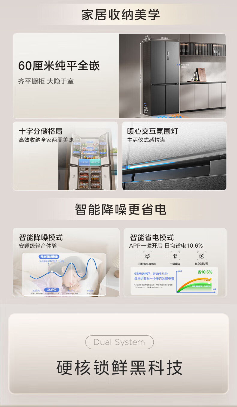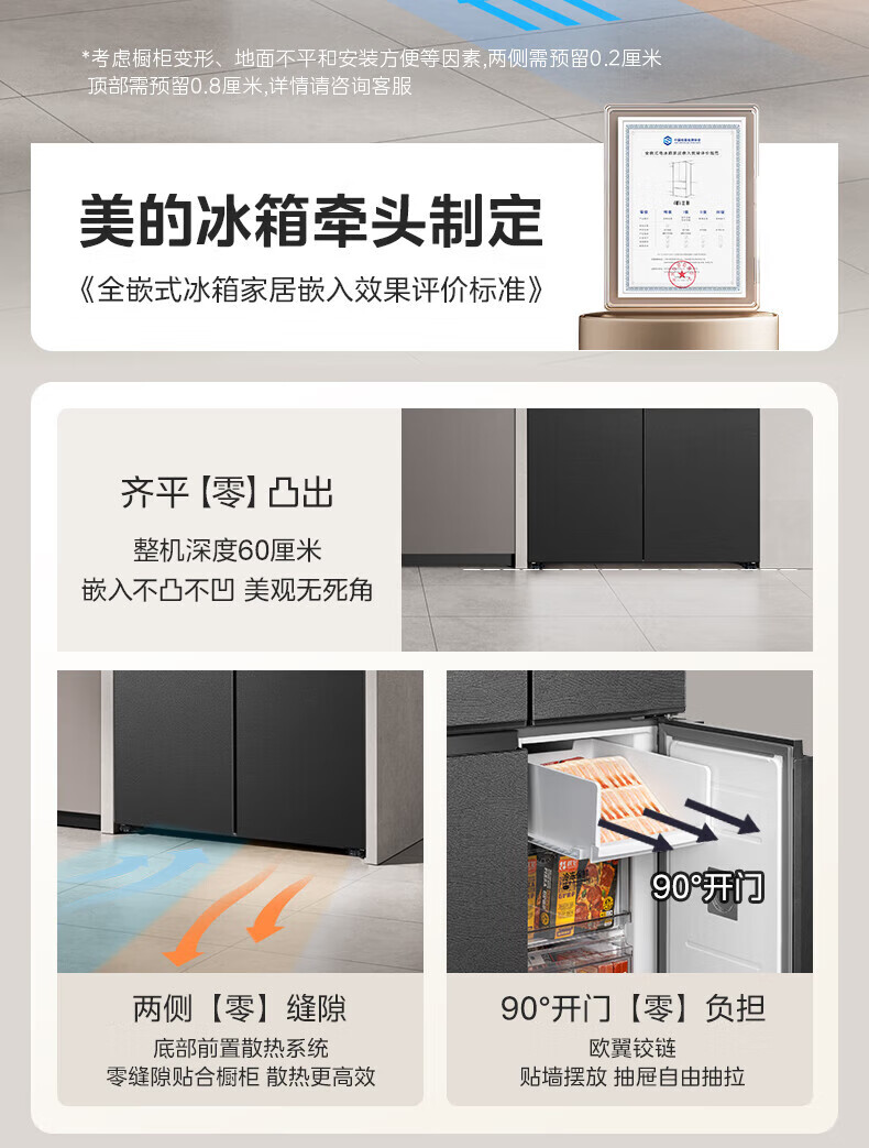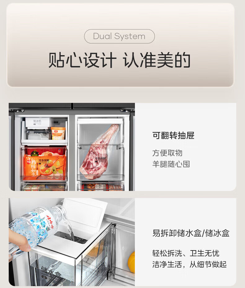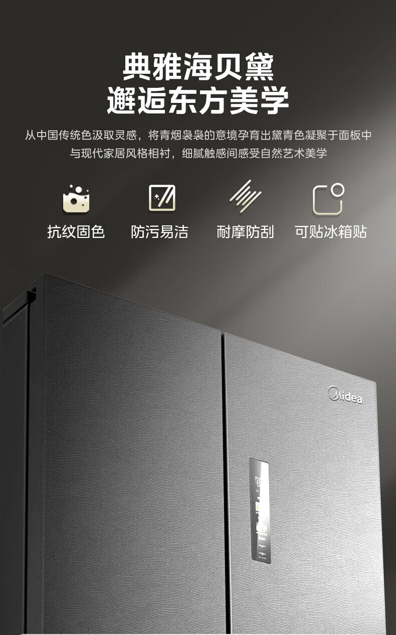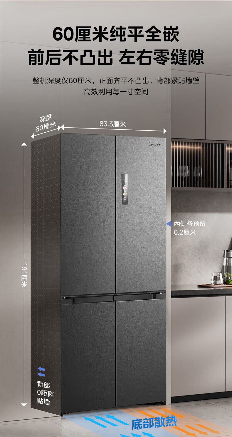 Midea Refrigerator 539/559 cross-door four-door dual-system ultra-thin automatic ice-making bottom cooling zero-embedded first-class energy efficiency dual-frequency air-cooled frost-free refrigerator Midea 559 bottom cooling automatic ice-making refrigerator